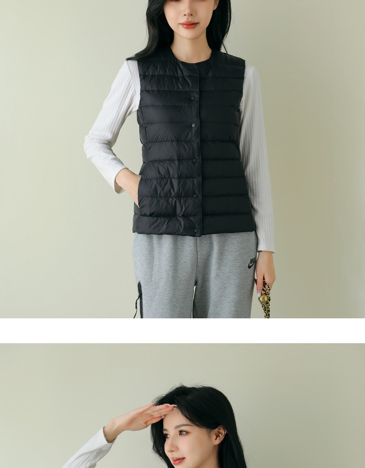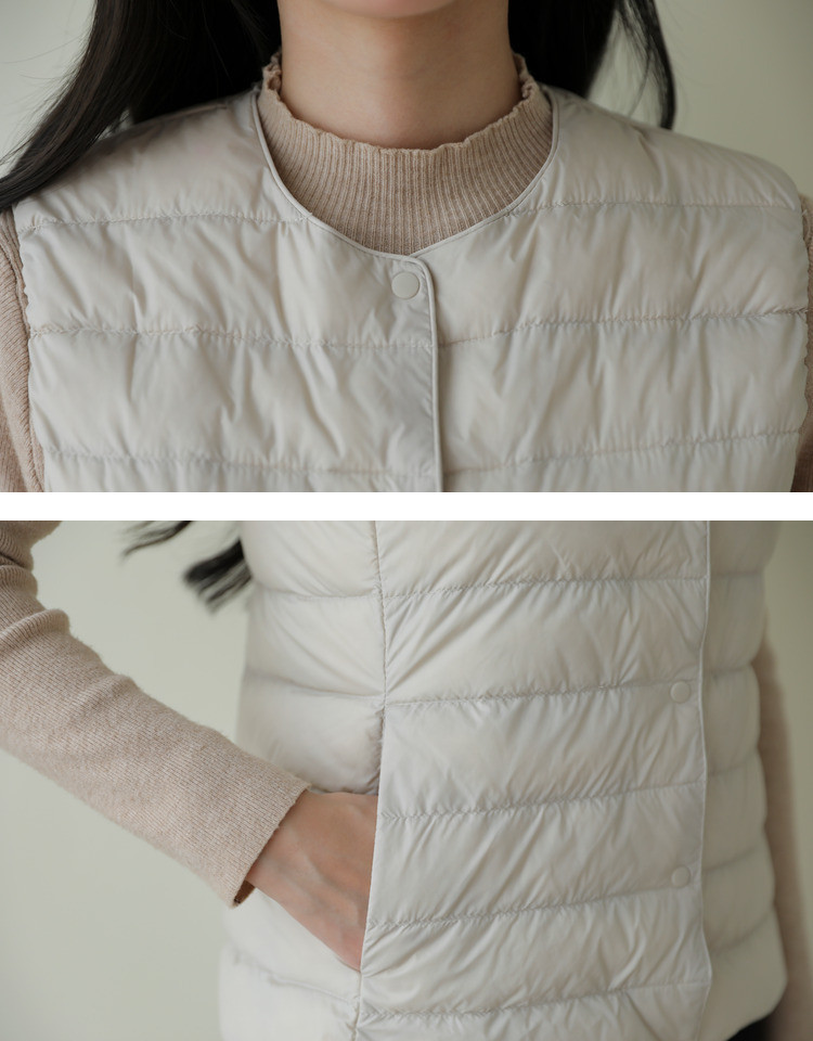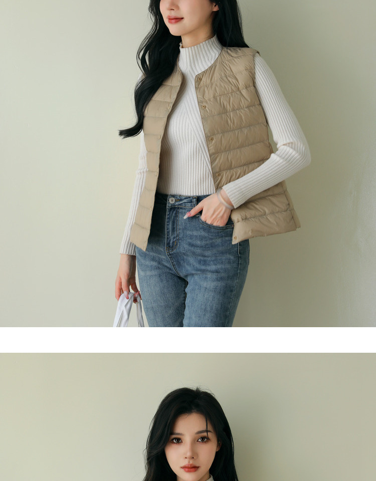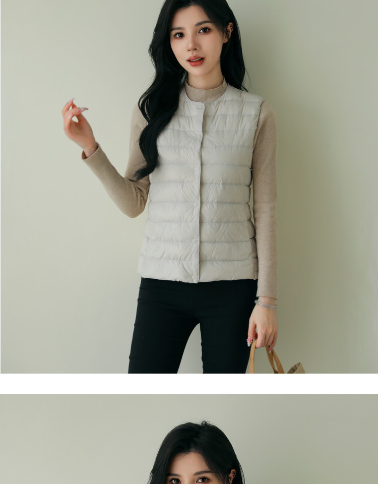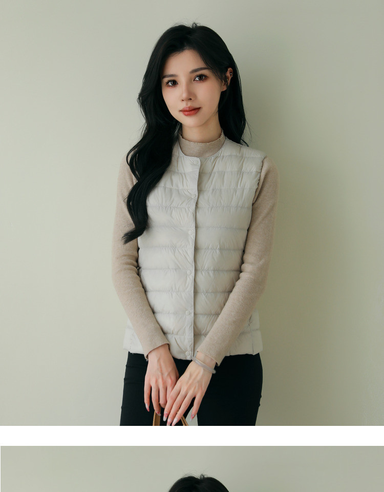 핑후 가을과 겨울 여성의 경량 라운드 넥 다운 라이너 조끼 따뜻한 화이트 오리 다운 조끼 솔리드 컬러 슬림 핏 웨이스트 코트스토어 가기
