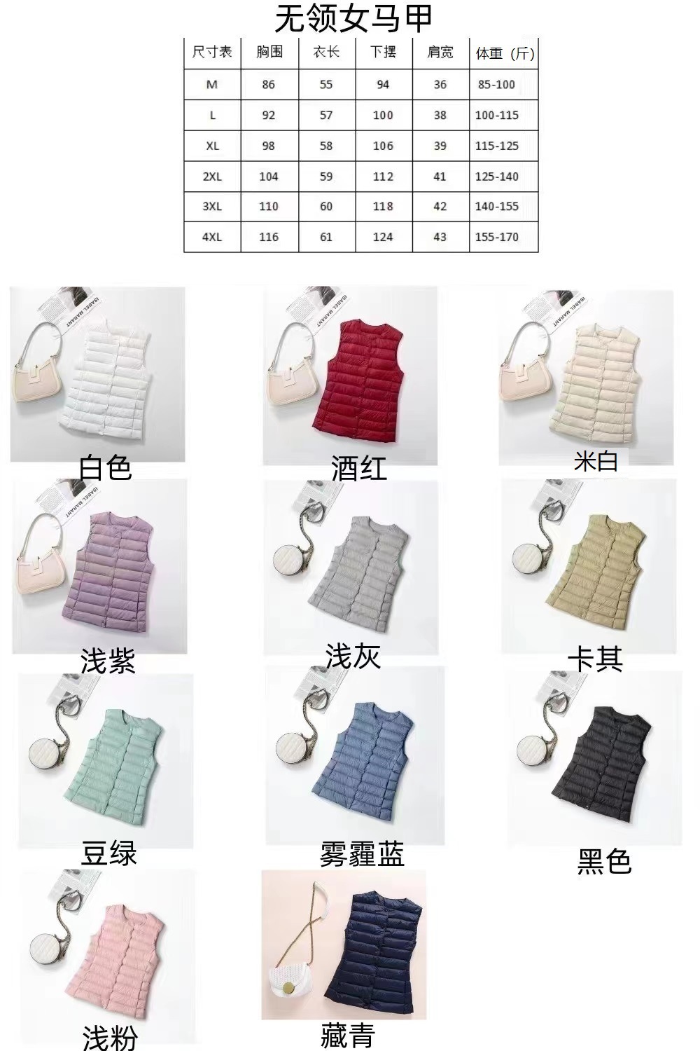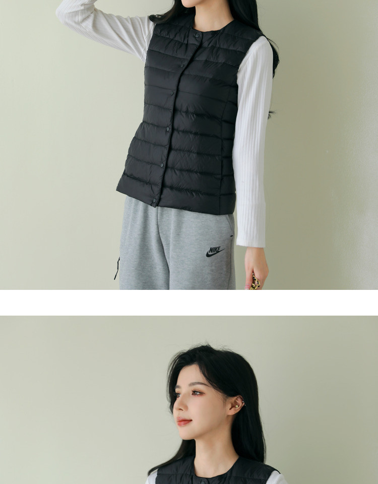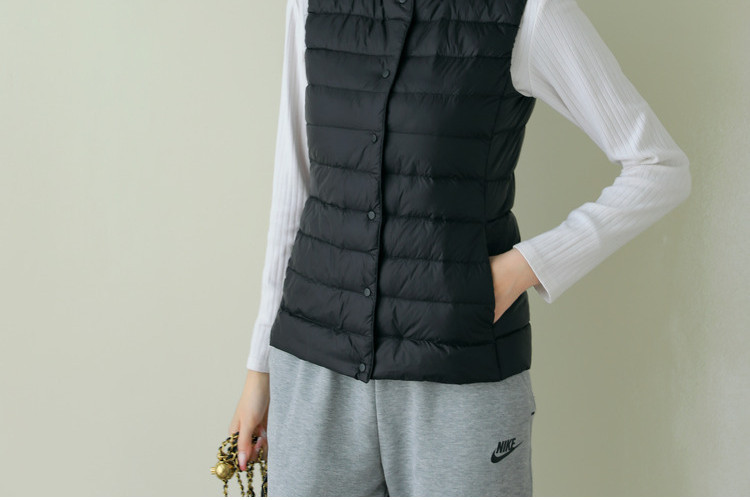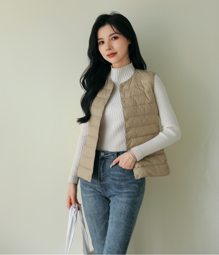 핑후 가을과 겨울 여성의 경량 라운드 넥 다운 라이너 조끼 따뜻한 화이트 오리 다운 조끼 솔리드 컬러 슬림 핏 웨이스트 코트스토어 가기