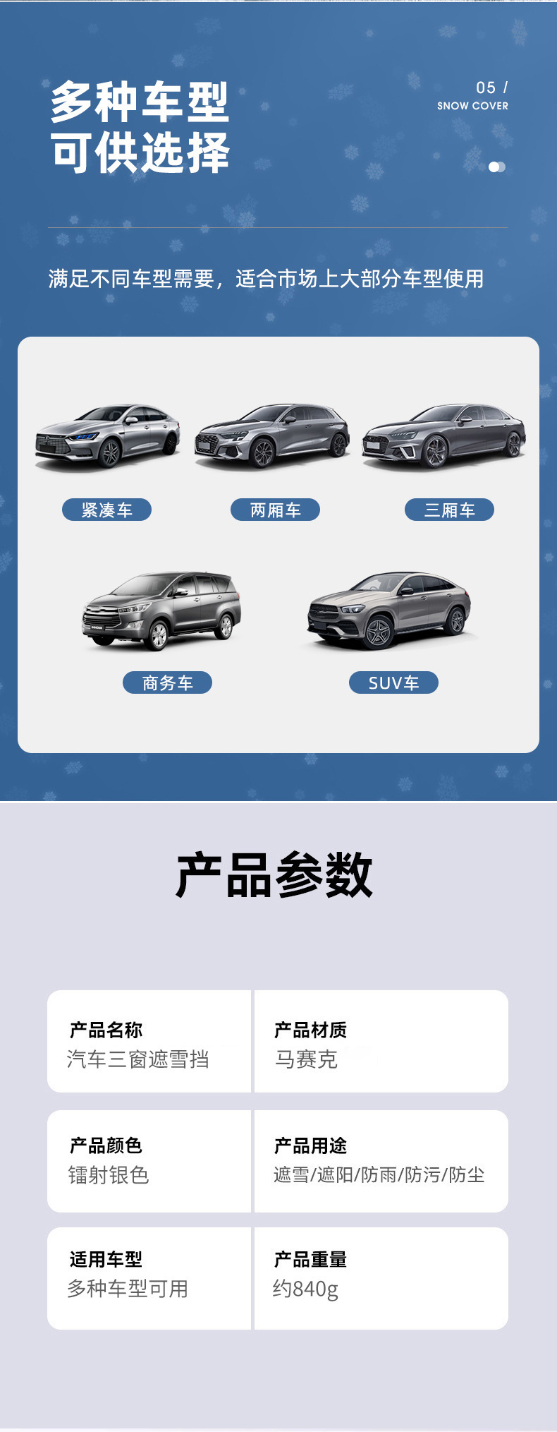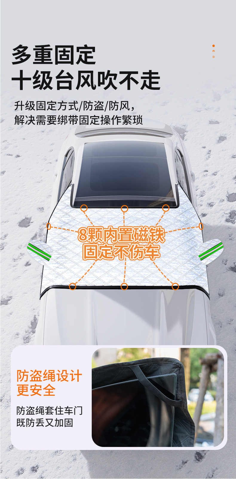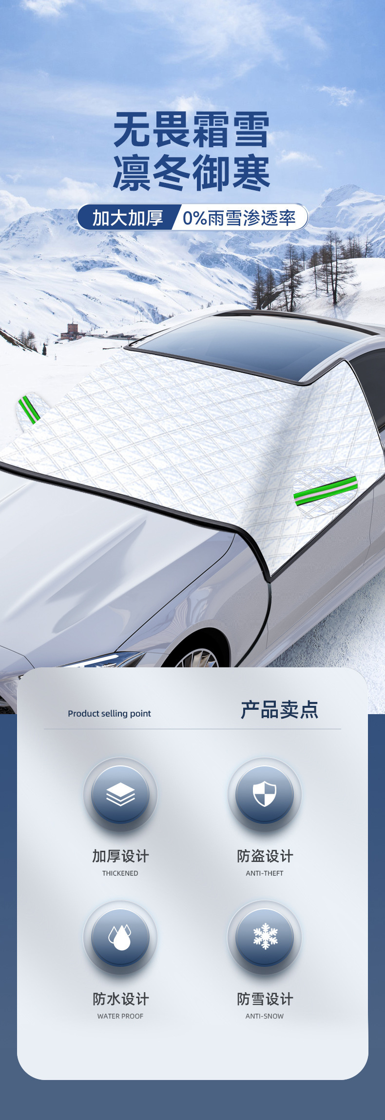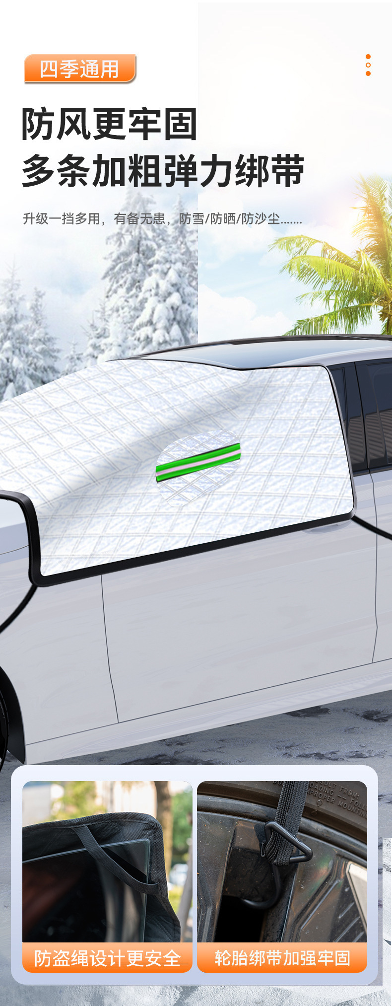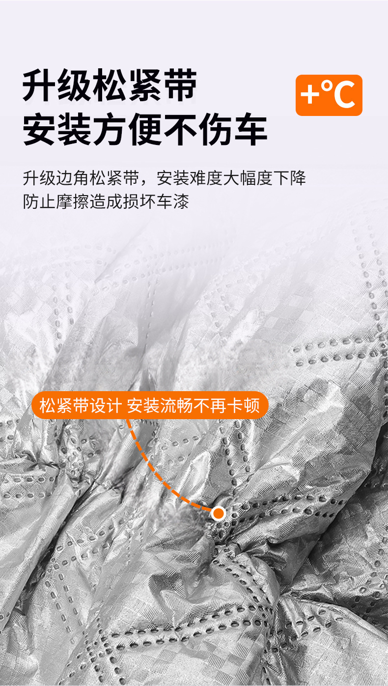 1、牛津布材质,不伤车漆,防晒、隔热、防雨雪、防风尘、防划痕、抗拉力强。