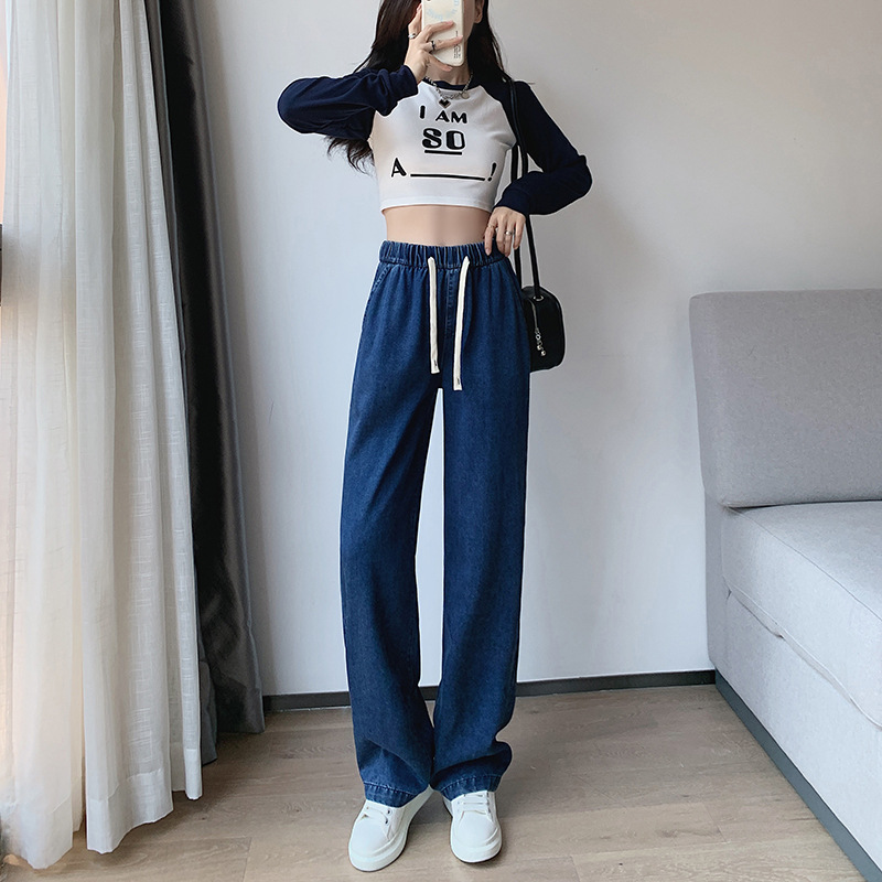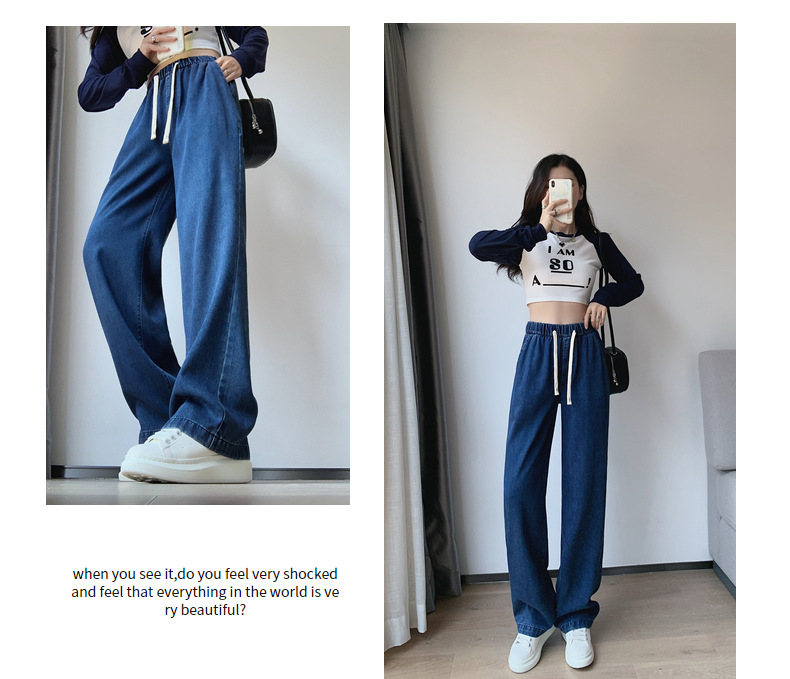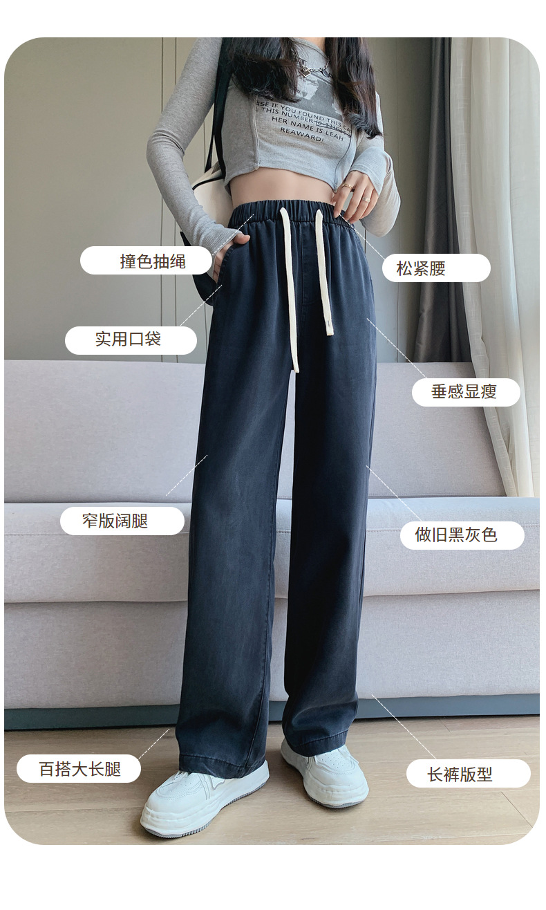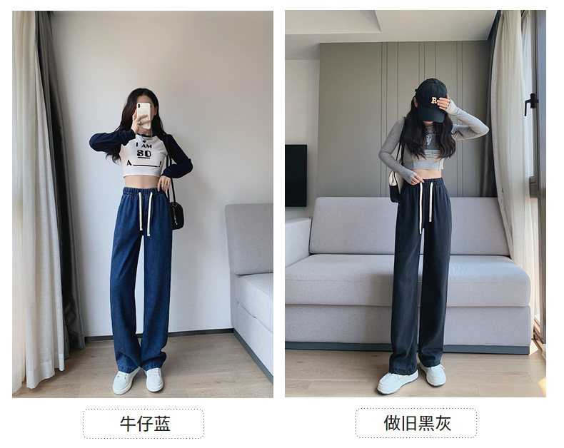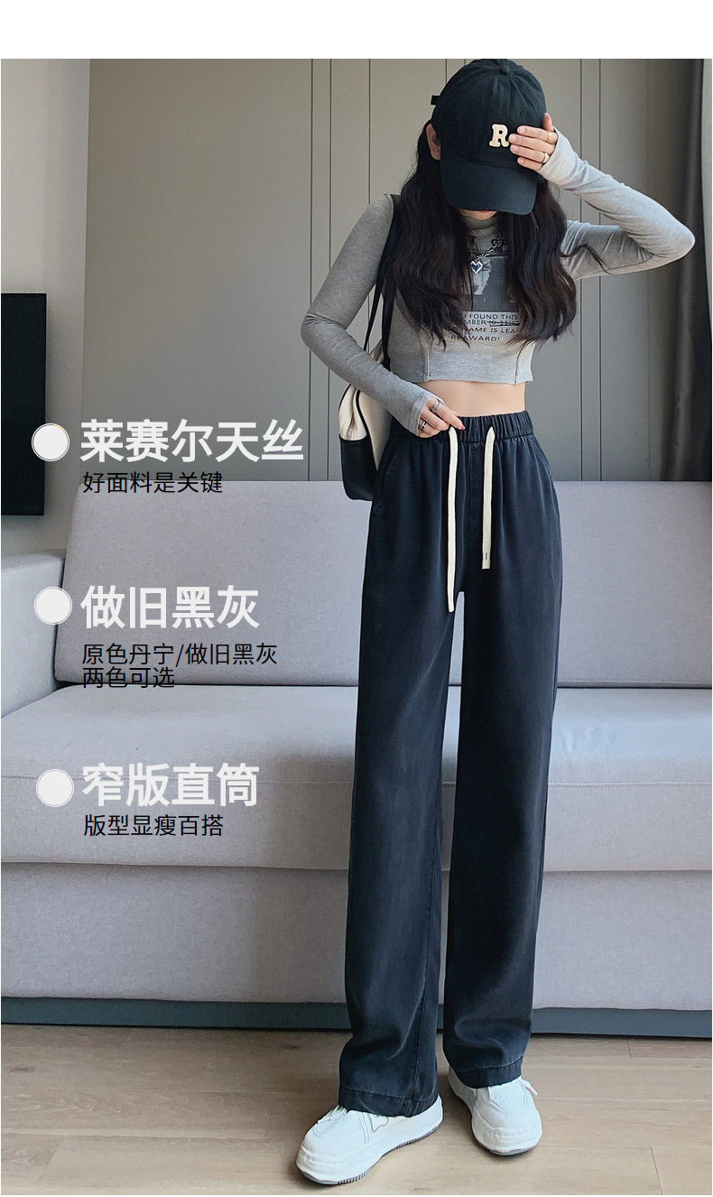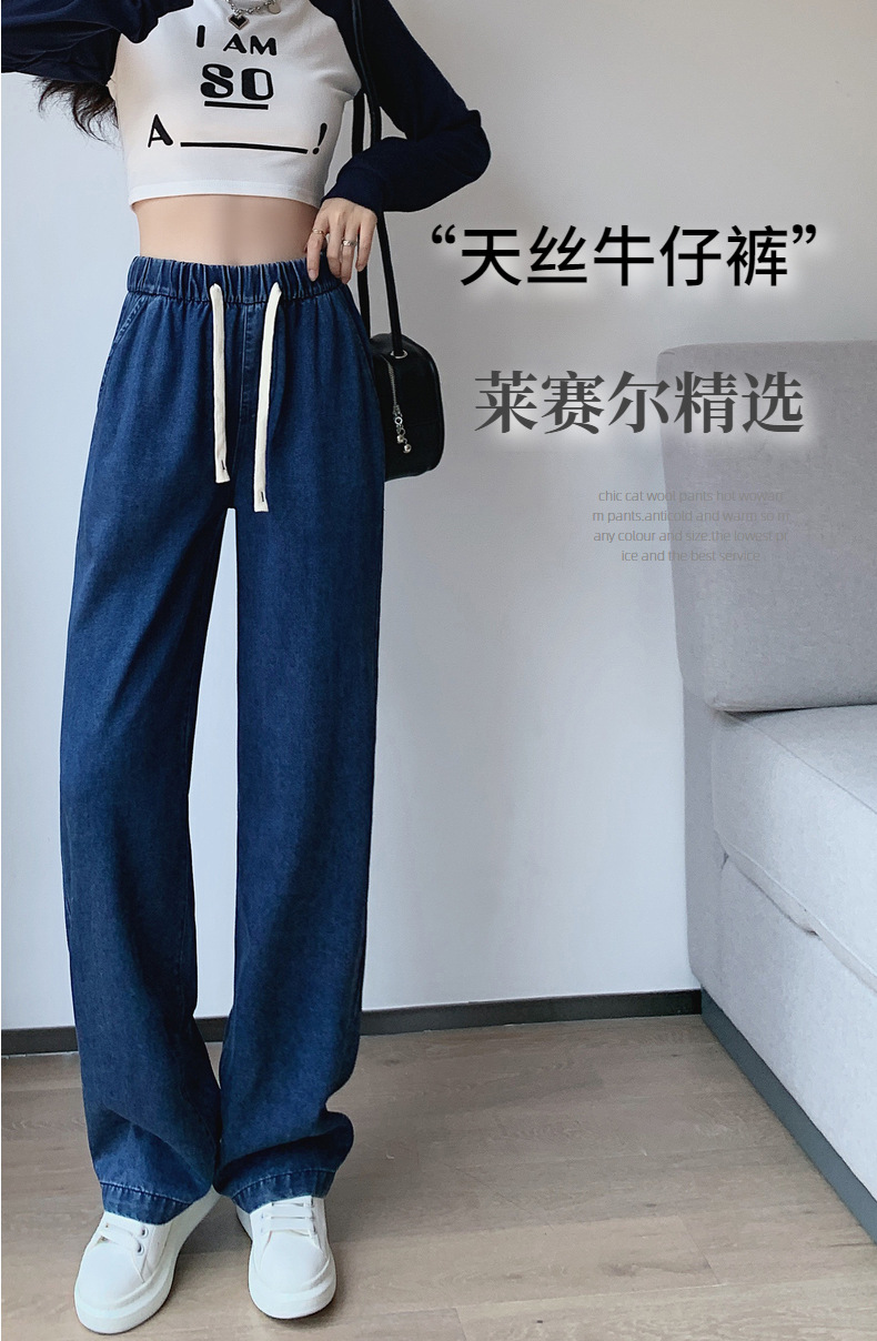 [Lyocell 청바지] 2024 가을 새 Lyocell 코튼 데님 스트레이트 레그 와이드 레그 캐주얼 여성용 바지스토어 가기