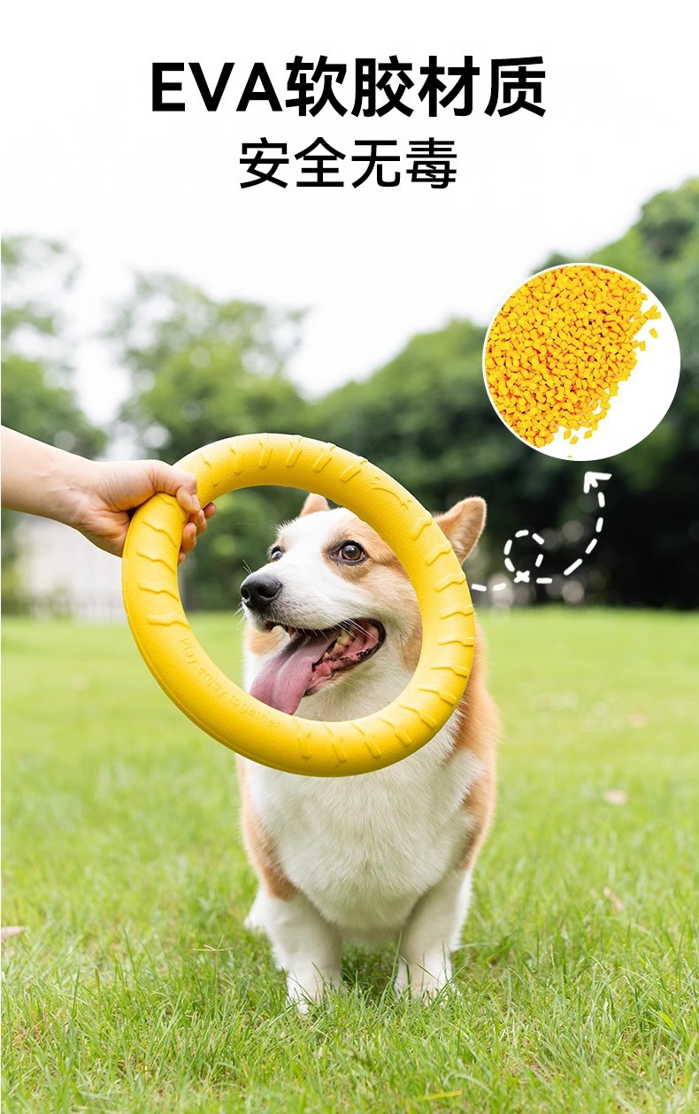 국경 간 개 장난감 야외 훈련 애완 동물 인터랙티브 풀 링 소비 물리적 강도 EVA 부드러운 고무 물린 방지 애완 동물 프리스비