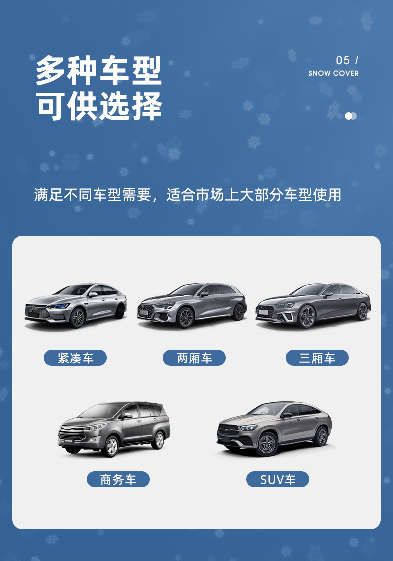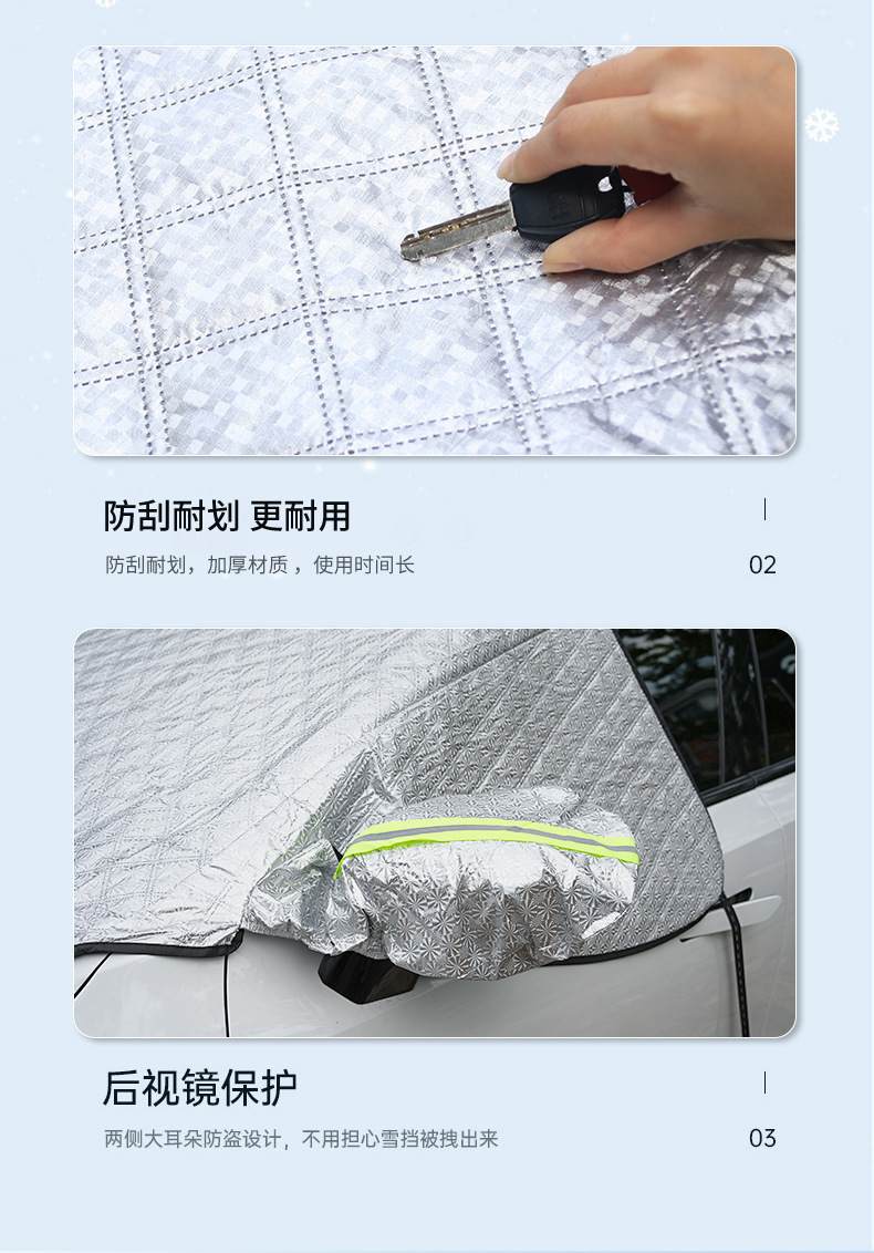 1、牛津布材质,不伤车漆,防晒、隔热、防雨雪、防风尘、防划痕、抗拉力强。