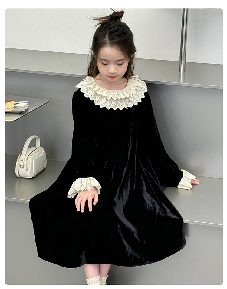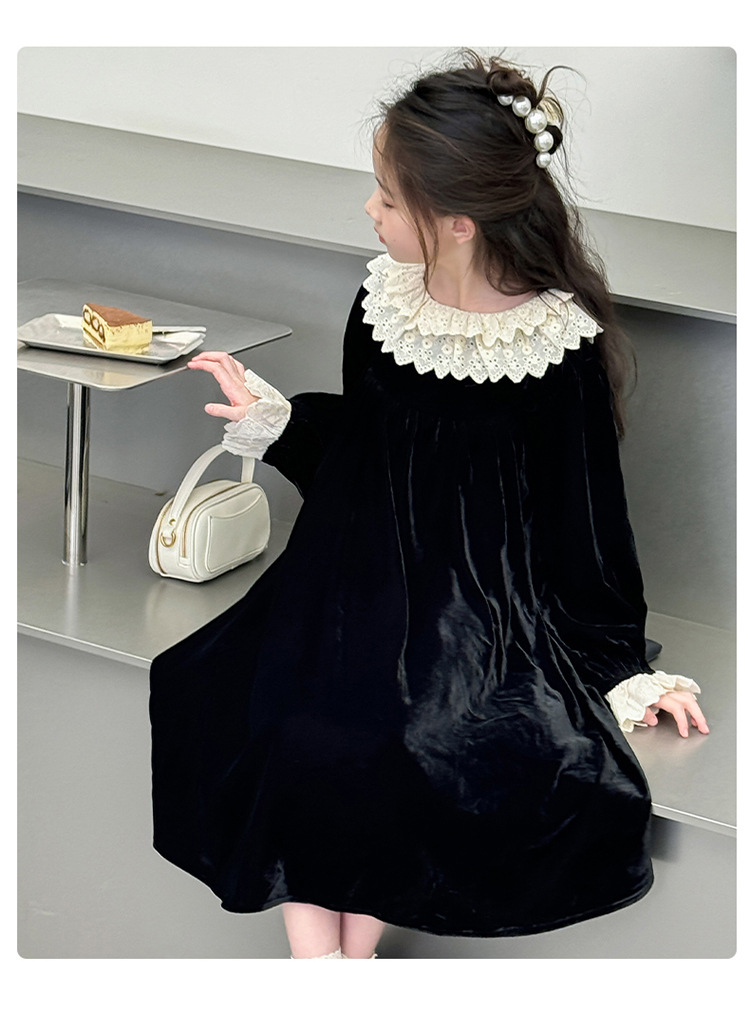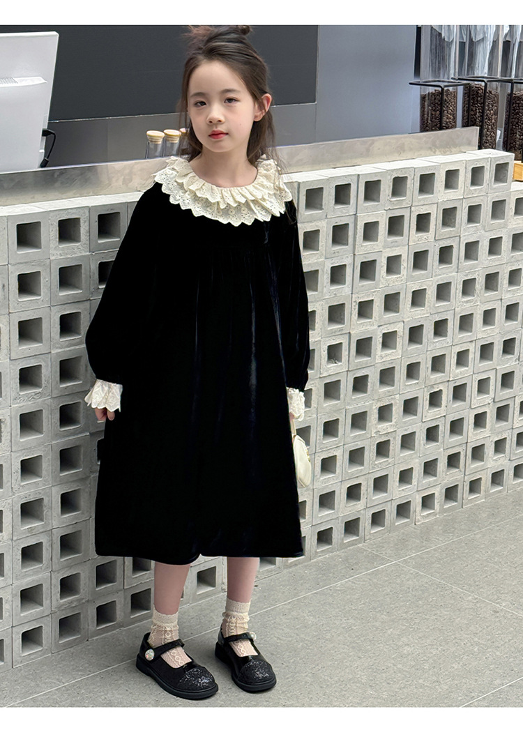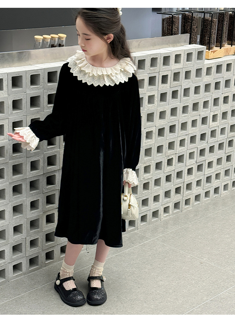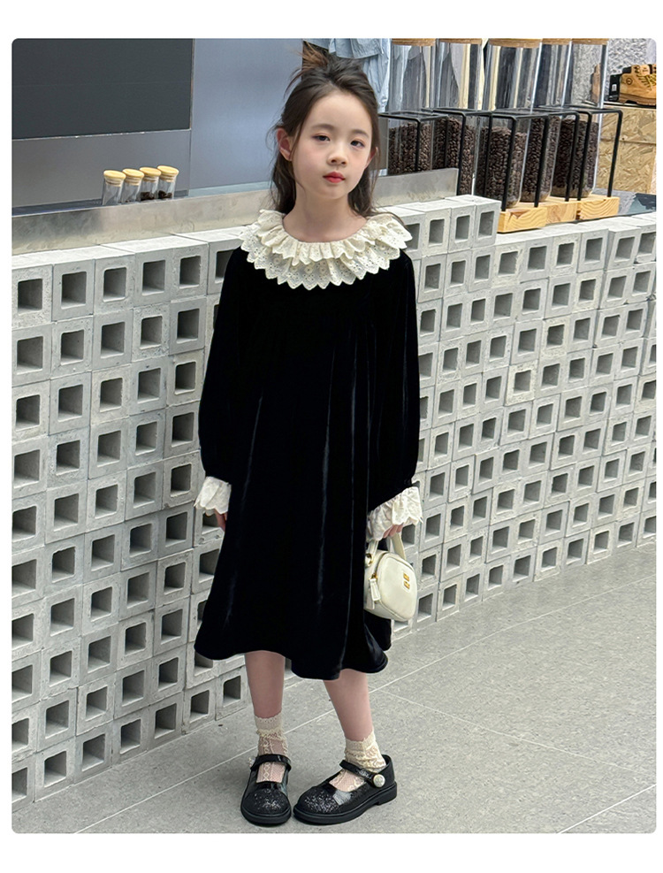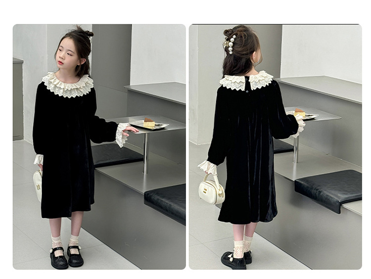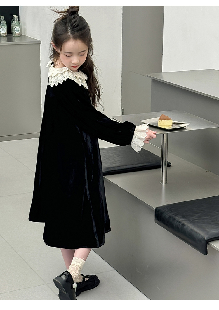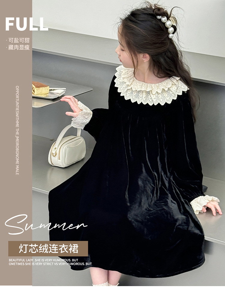 여자 2024 가을과 겨울 새로운 코듀로이 한국 버전의 원피스 외국 스타일 공주 스커트 캐주얼 레이스 스커트 대외 무역 도매