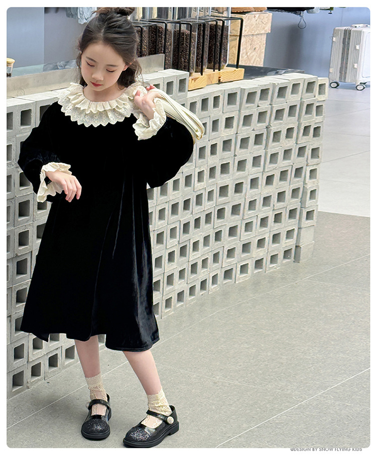여자 2024 가을과 겨울 새로운 코듀로이 한국 버전의 원피스 외국 스타일 공주 스커트 캐주얼 레이스 스커트 대외 무역 도매스토어 가기