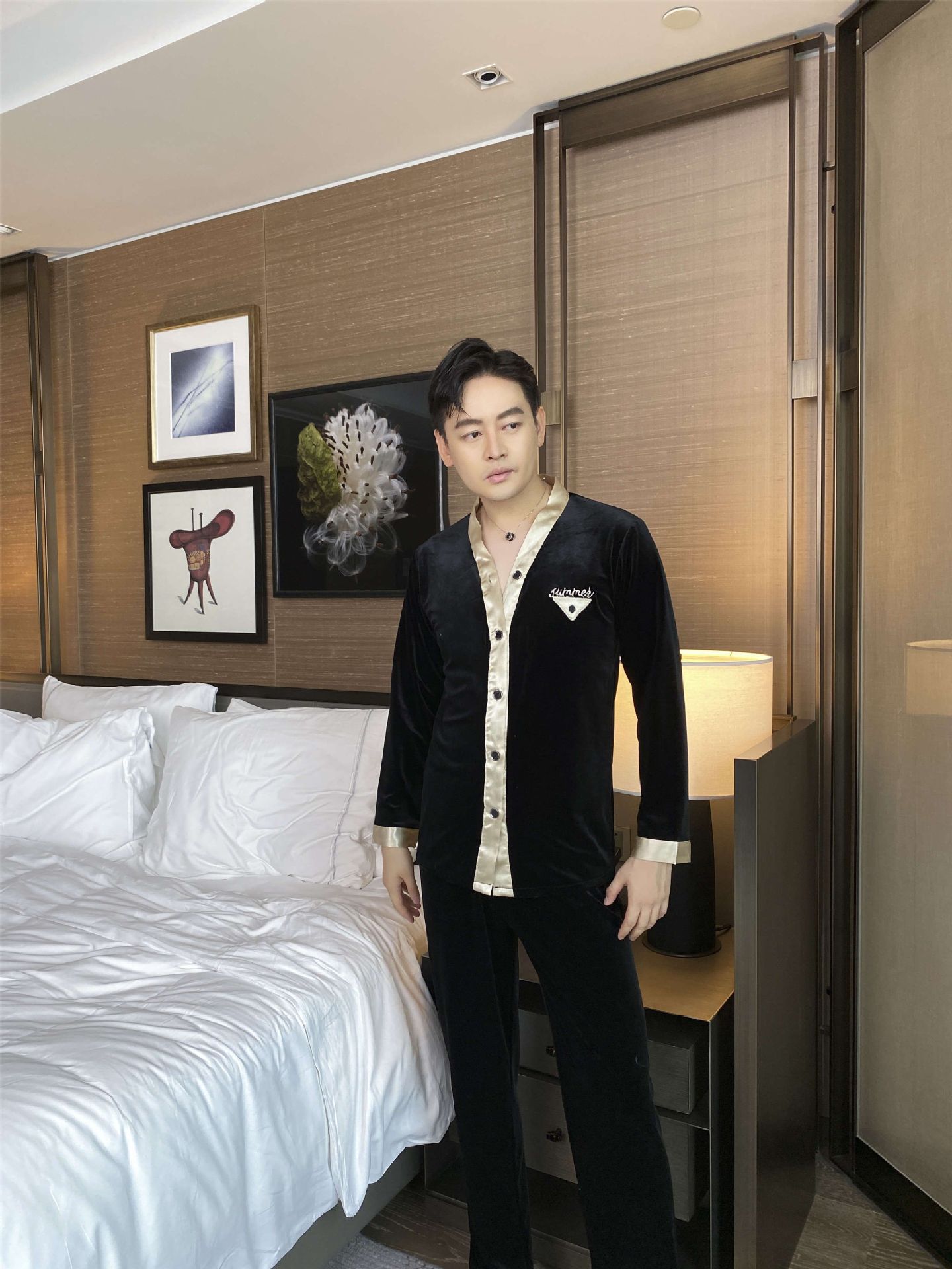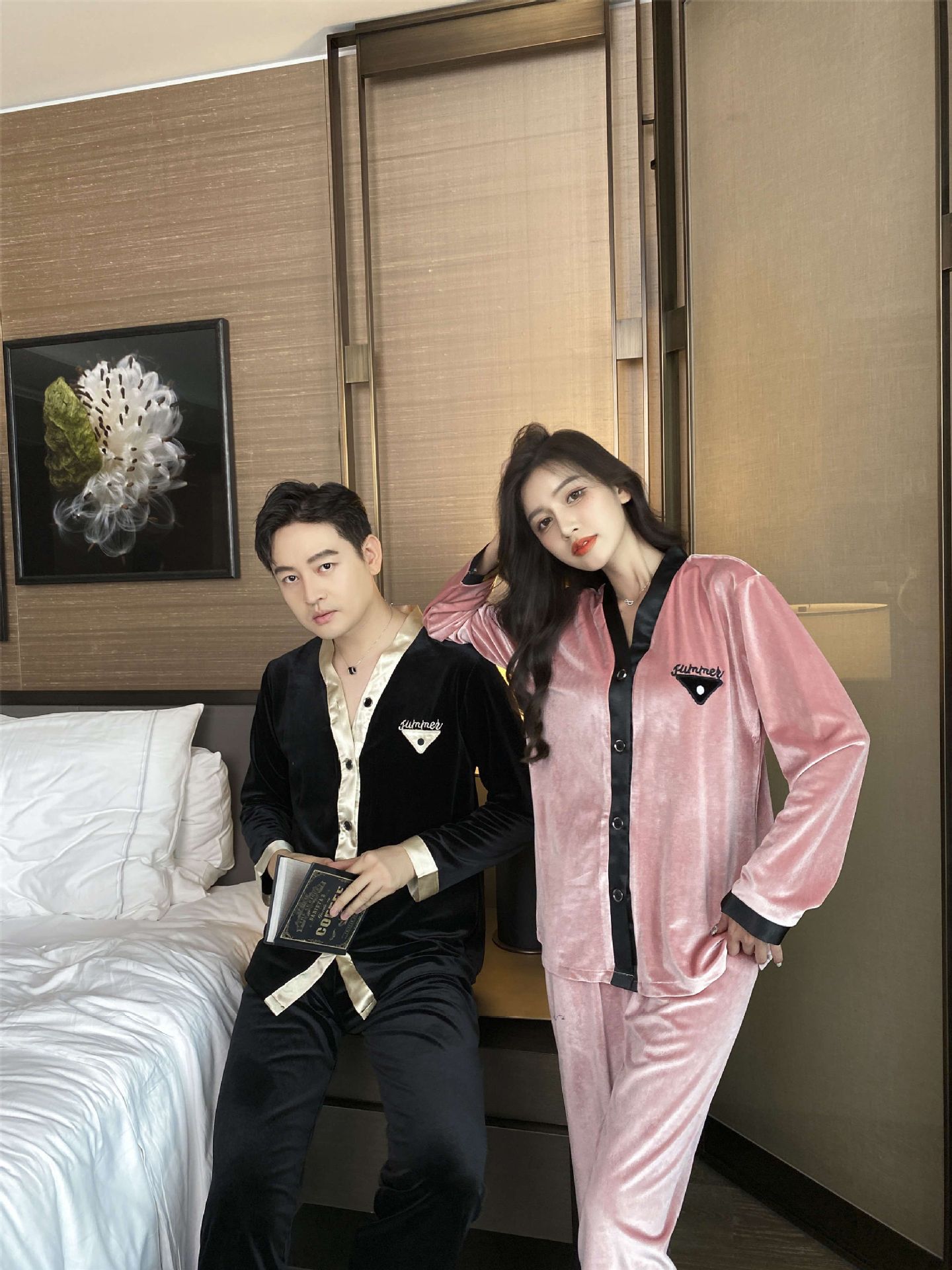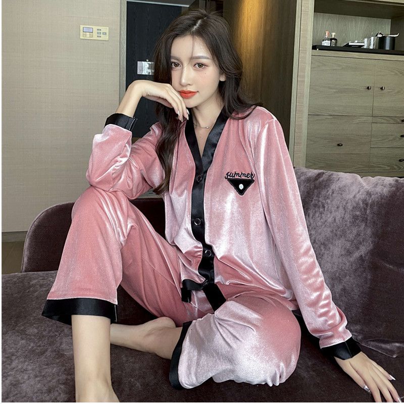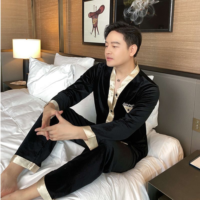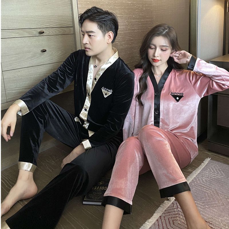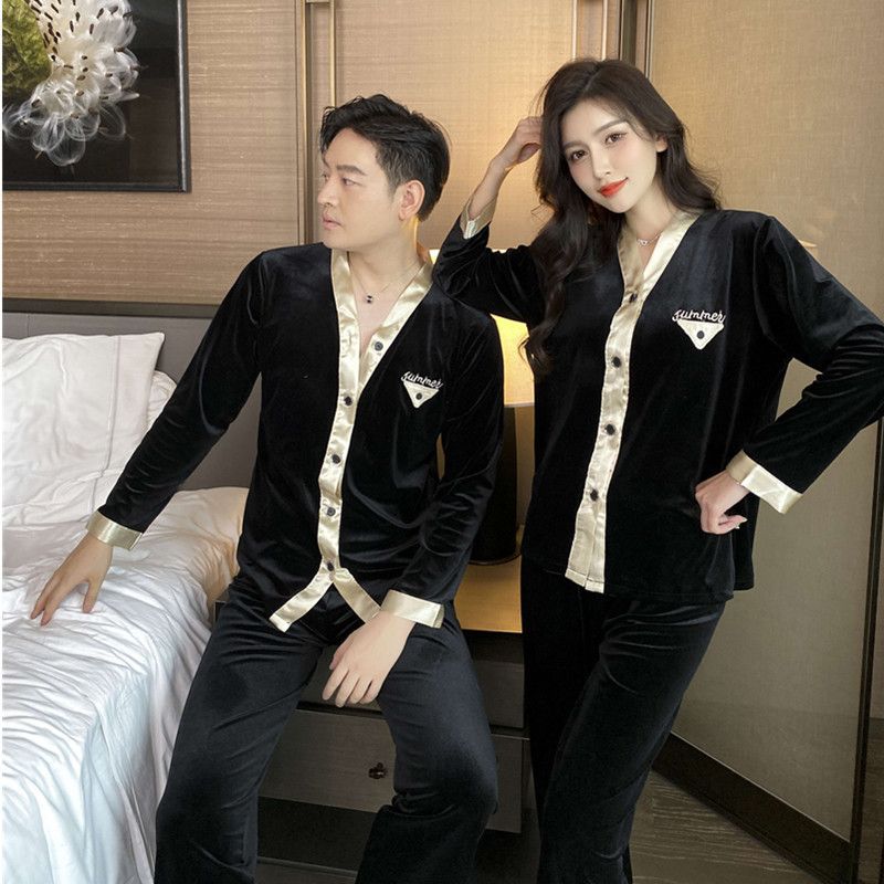 2024 커플 잠옷 황금 벨벳 커플 가을과 겨울 패션 홈 의류 세트 여성 M-XXL 남성 L-3XL