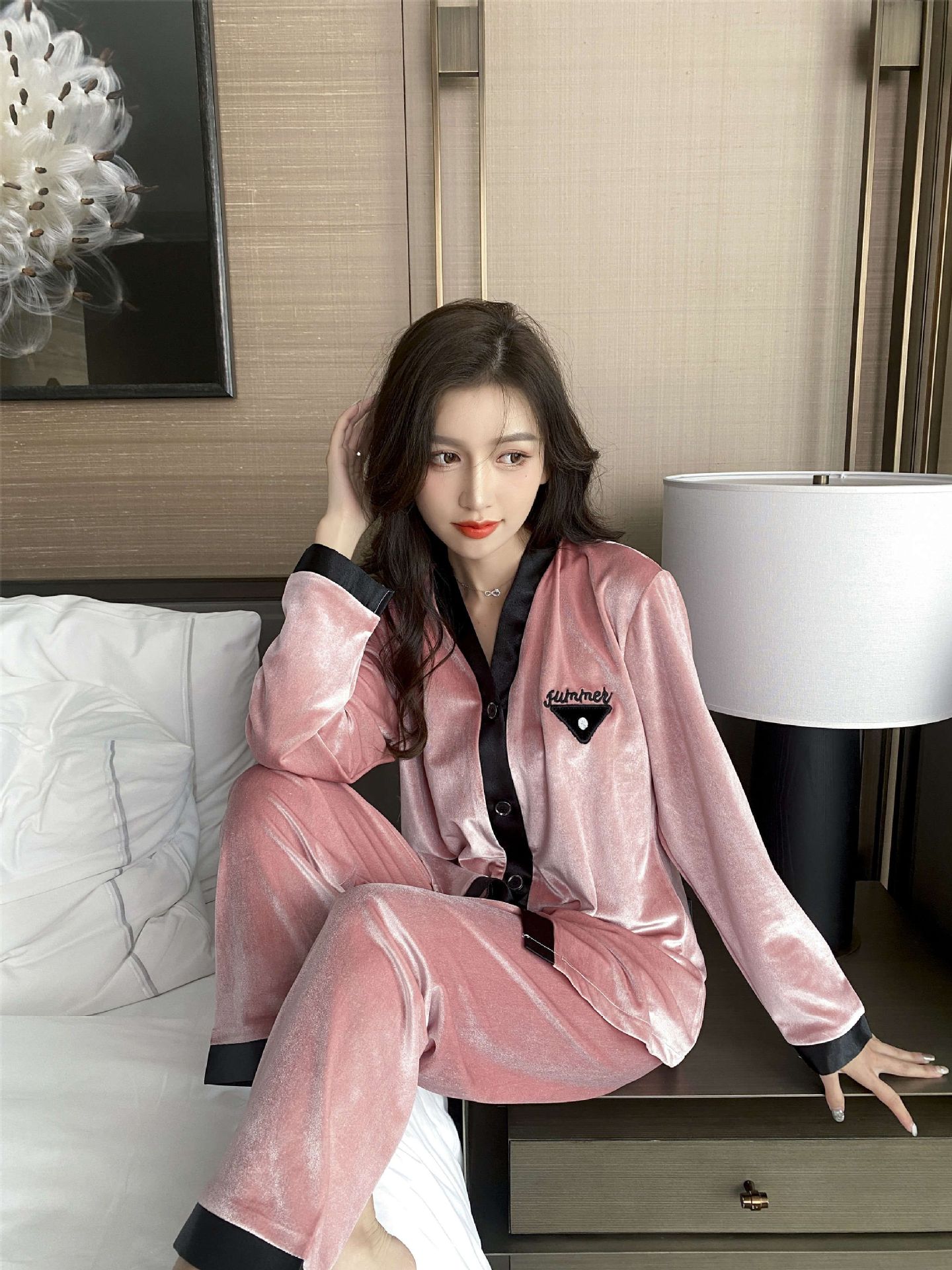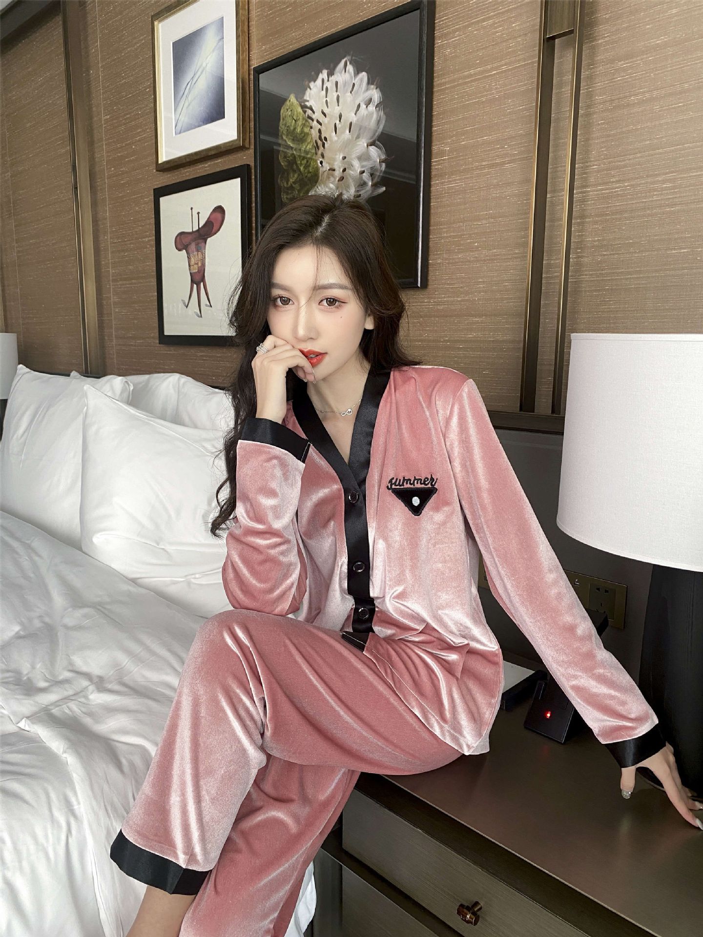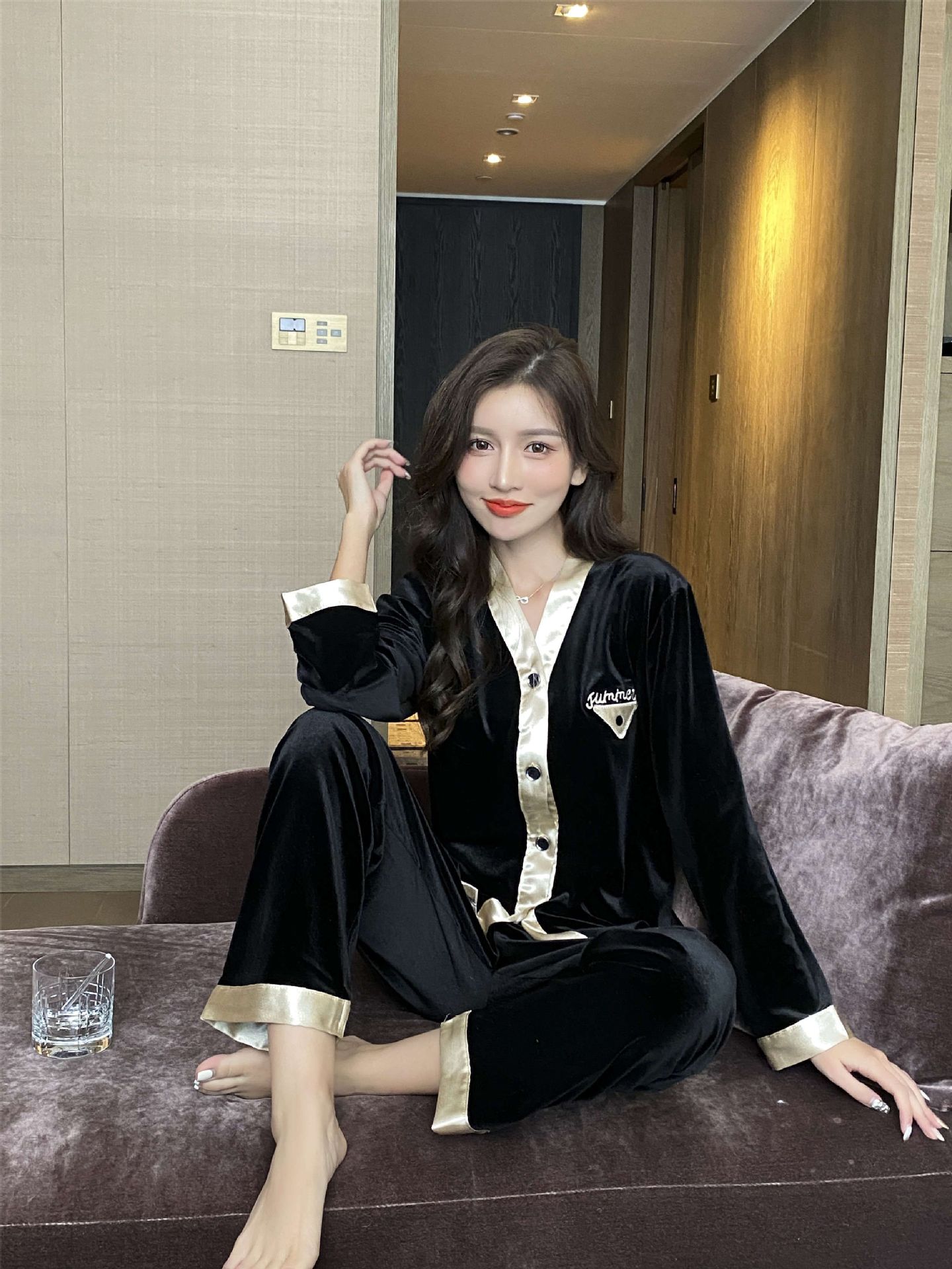 2024 커플 잠옷 황금 벨벳 커플 가을과 겨울 패션 홈 의류 세트 여성 M-XXL 남성 L-3XL스토어 가기