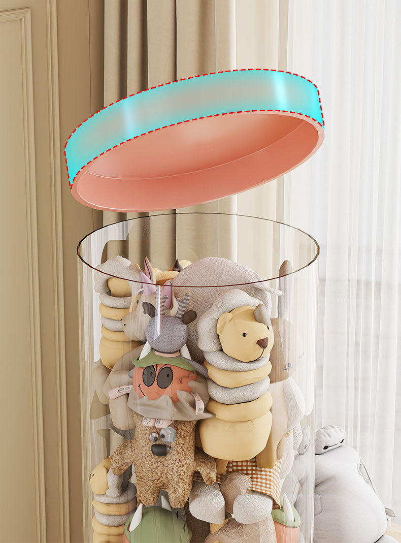 • 핑크색 뚜껑 바닥에는 26cm*150cm 인형 60개를 담을 수 있습니다.