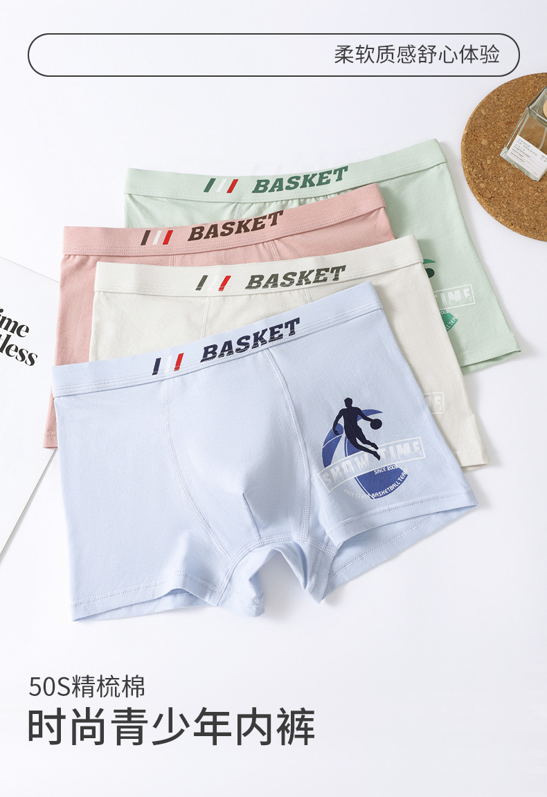 십대 발달 속옷 소년 클래스 A 면 중학교 학생 복서 중간 허리 복서 부드러운 통기성 반바지
