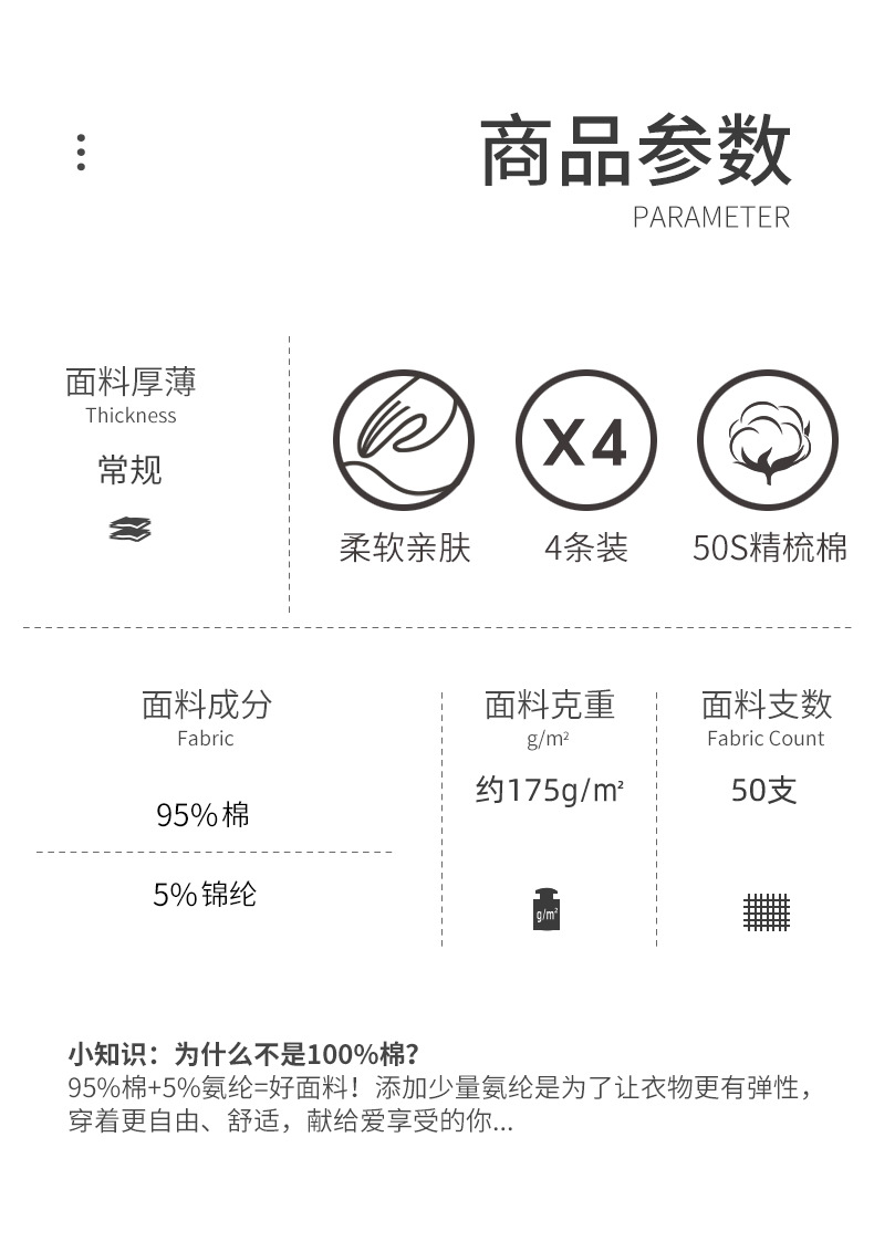 <面 料>:95%棉+5%氨纶,有弹力才好穿!