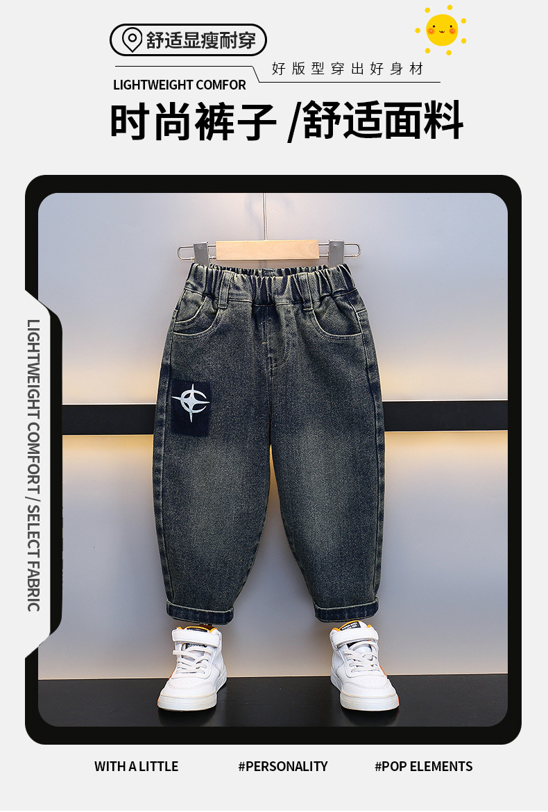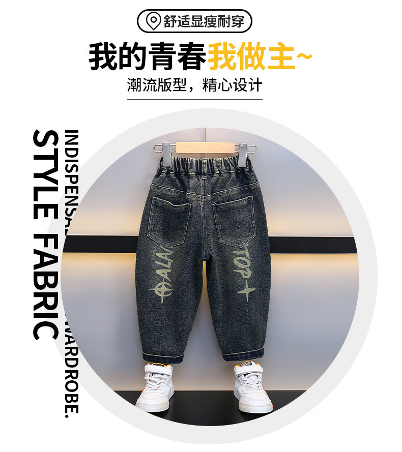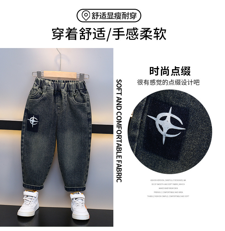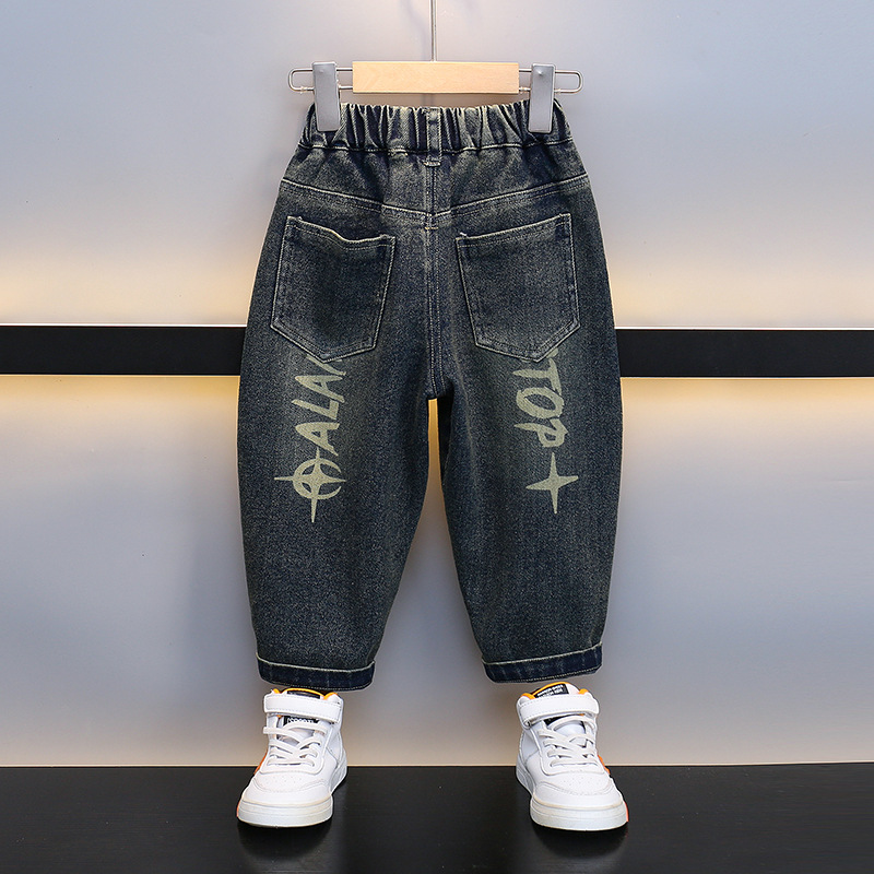 소년용 프린트 청바지 가을 새 대외 무역 중소형 어린이 토레 데님 바지 어린이 한국 캐주얼 트렌디 바지스토어 가기