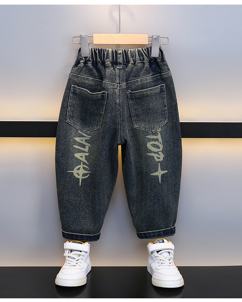소년용 프린트 청바지 가을 새 대외 무역 중소형 어린이 토레 데님 바지 어린이 한국 캐주얼 트렌디 바지