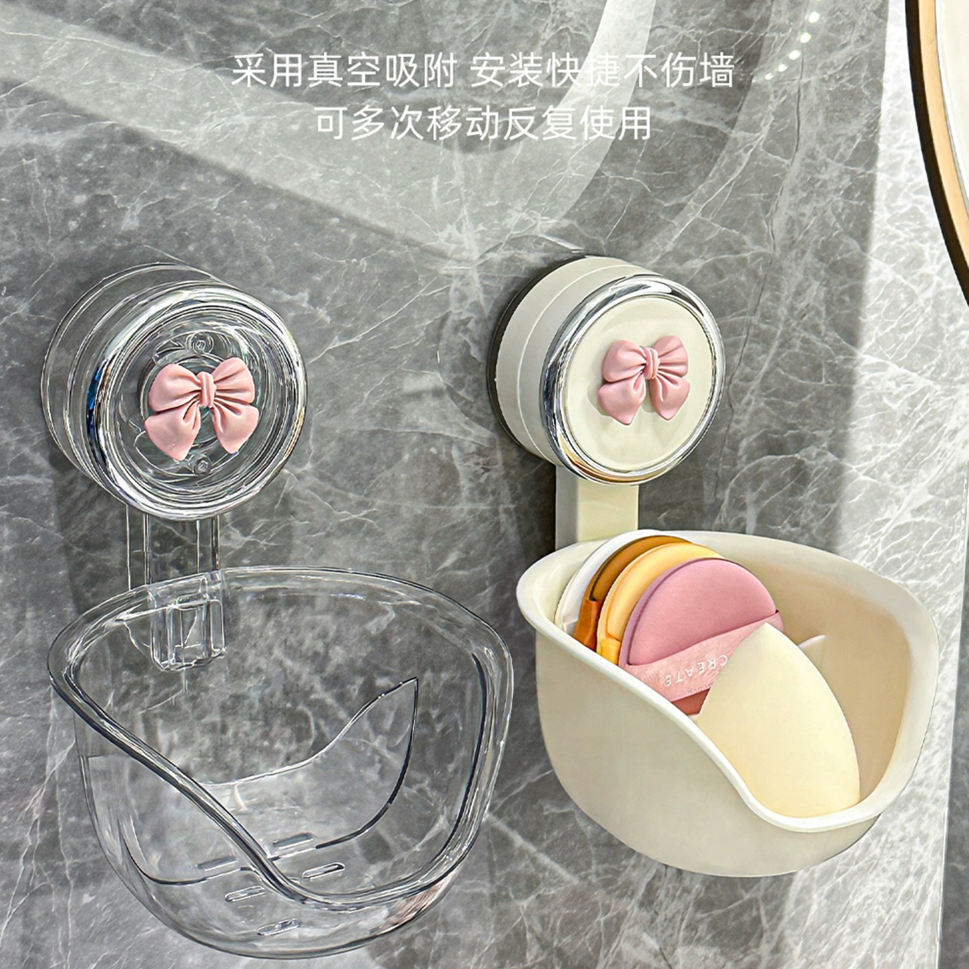 석션 컵 파우더 퍼프 스토리지 박스 펀치 프리 코스메틱 코튼 뷰티 메이크업 계란 에어 쿠션 스토리지 박스 벽 걸이 벽 드레인 스토리지 랙