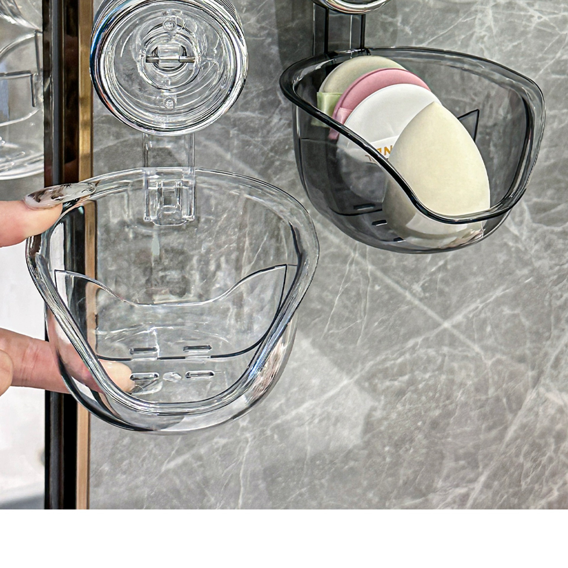 • 흡착컵 뷰티 에그 수납박스 [투명그레이/1팩]