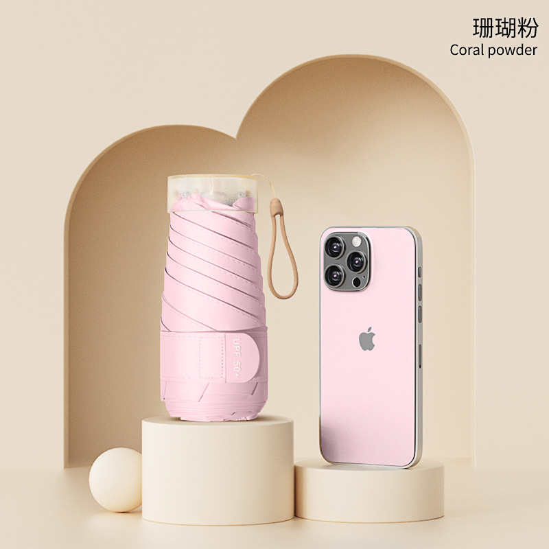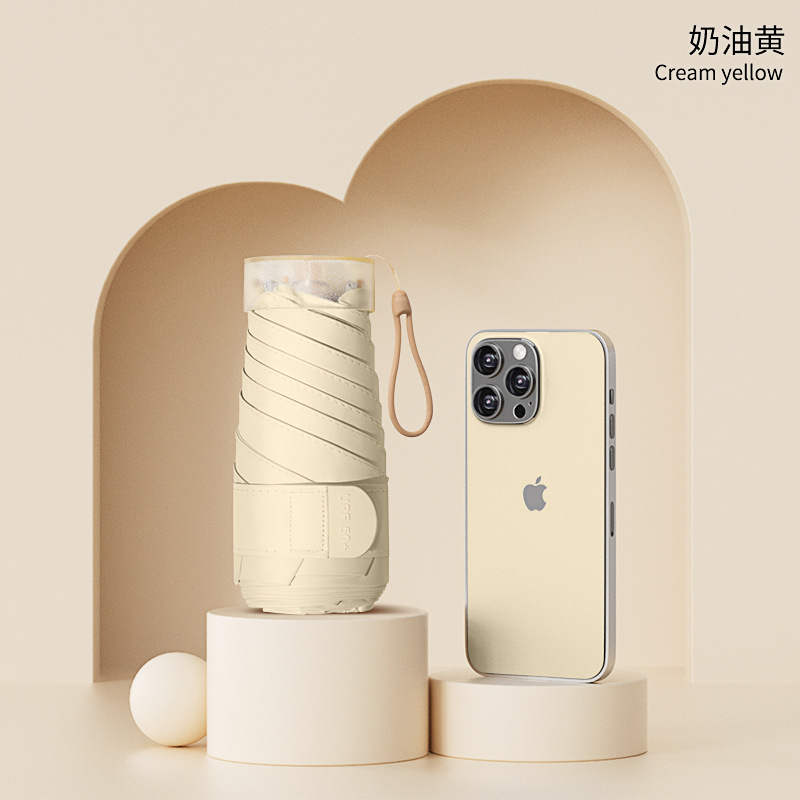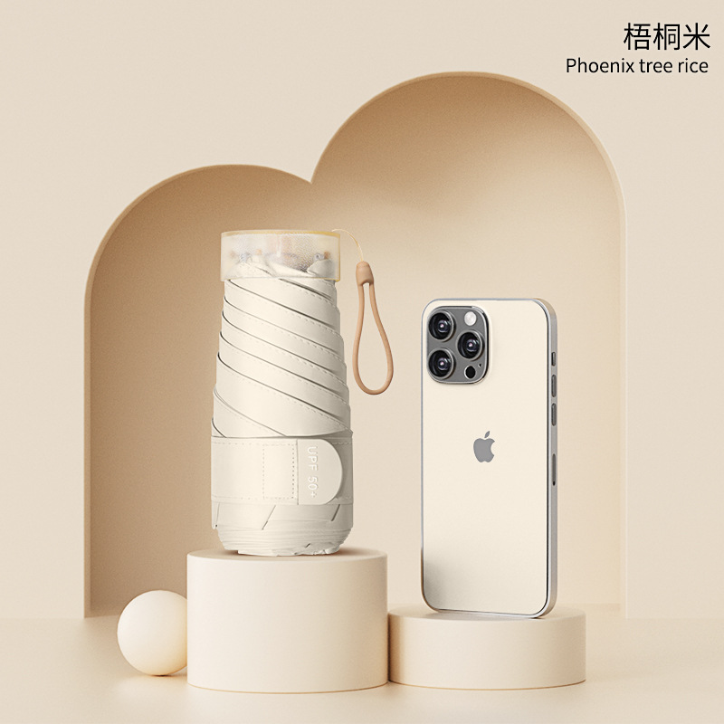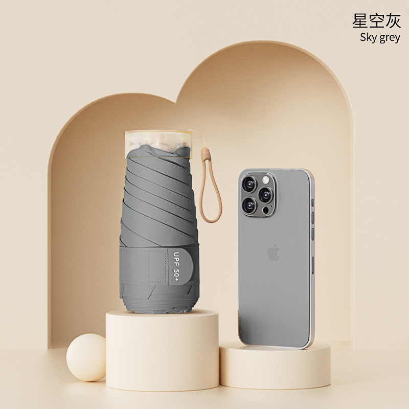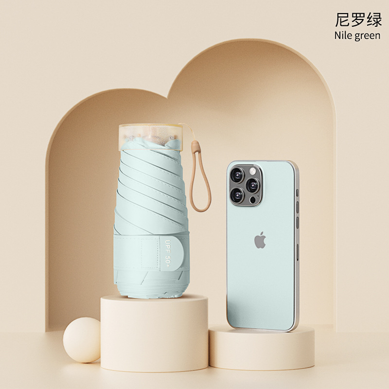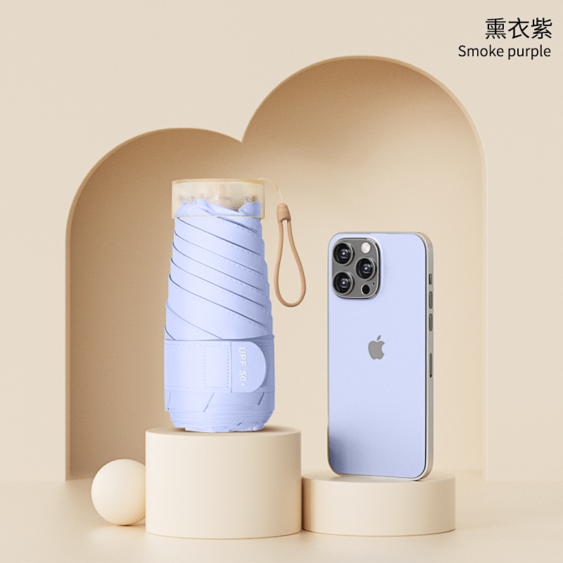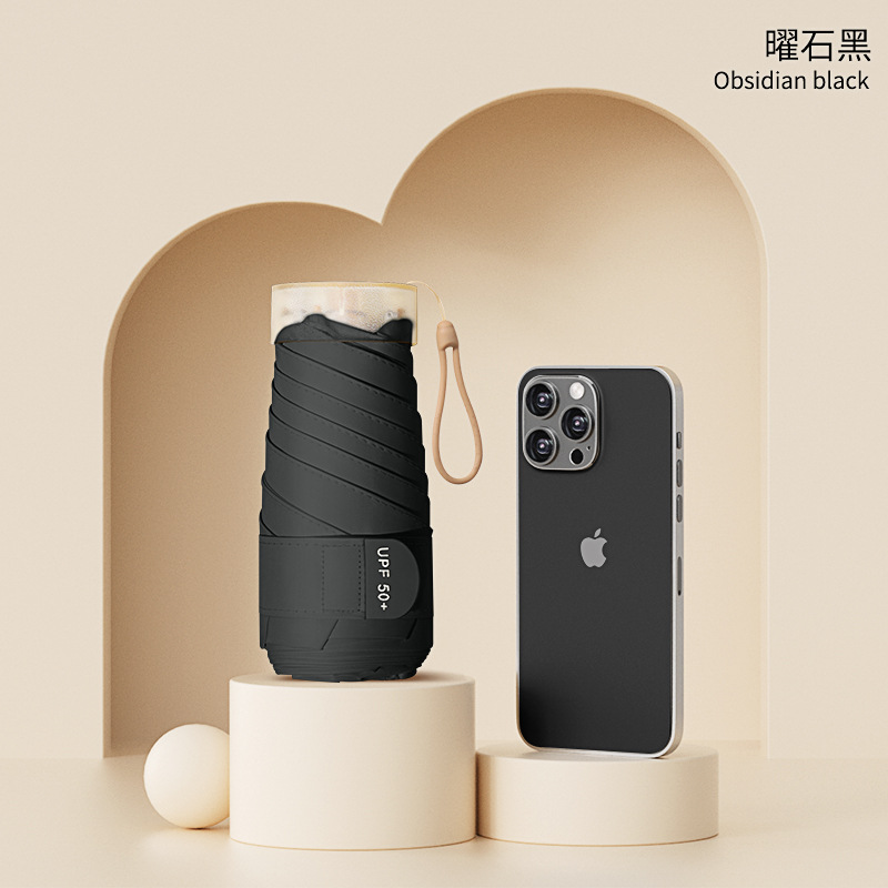 작은 휴대용 접히는 우산 6 배 높은 가치 빛 고급 양산 우산 UV 보호 및 비 보호 이중 목적 캡슐 우산 우산