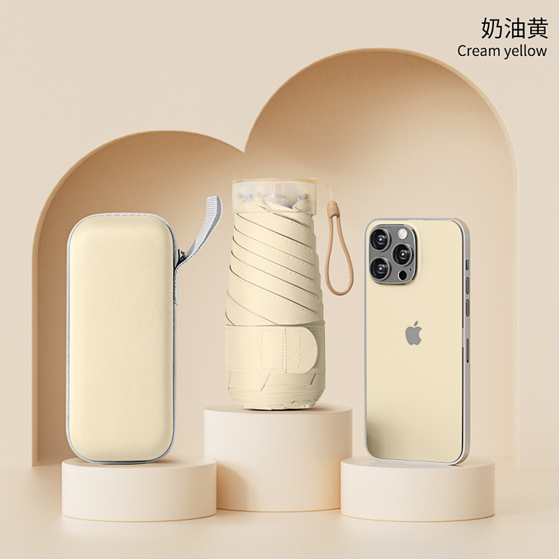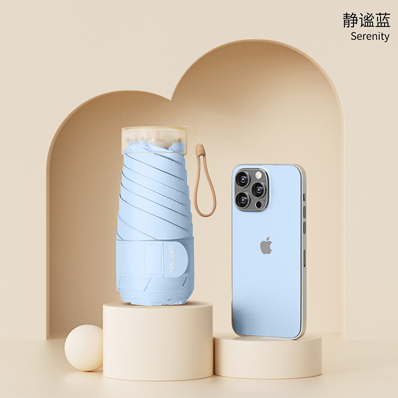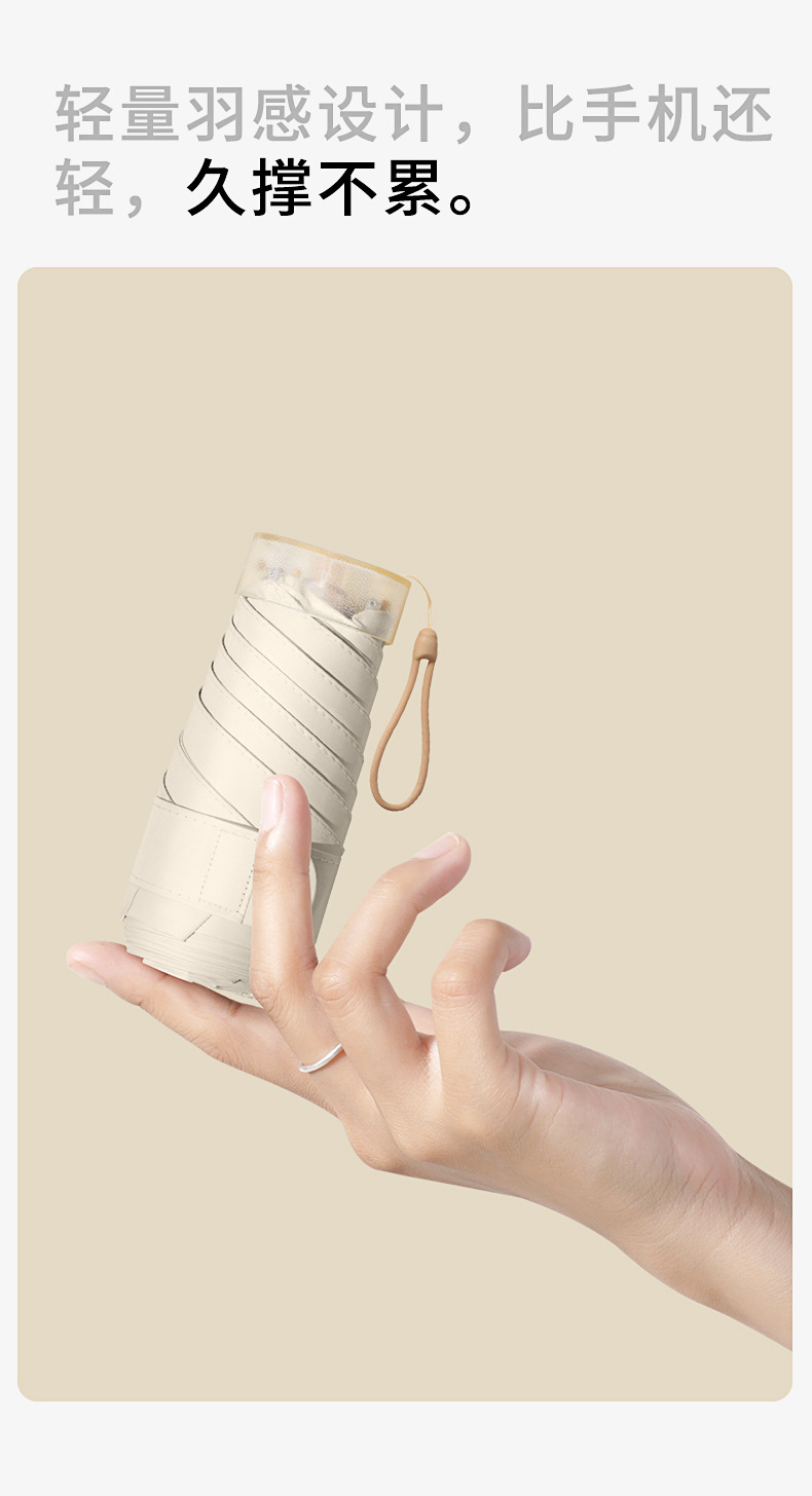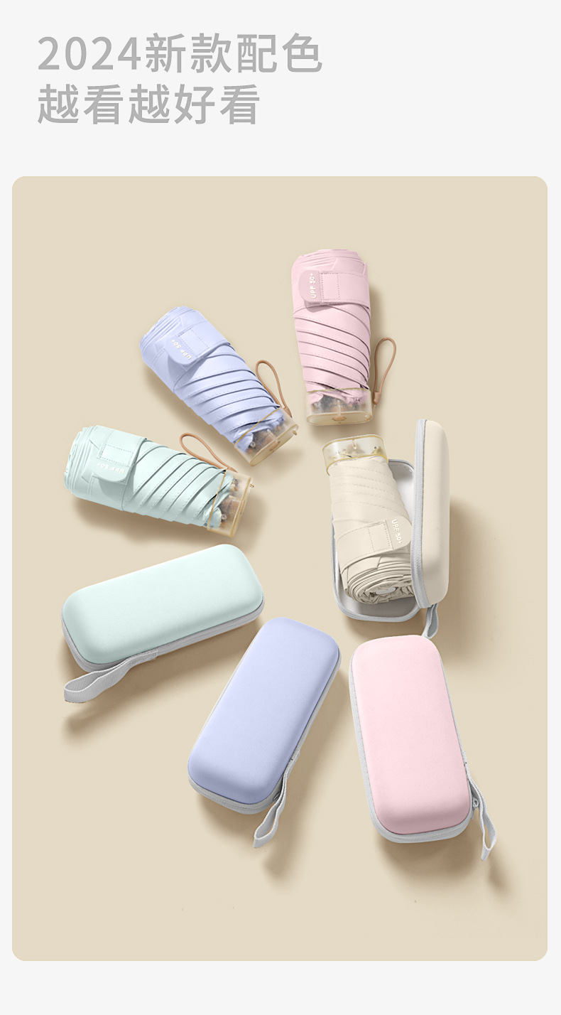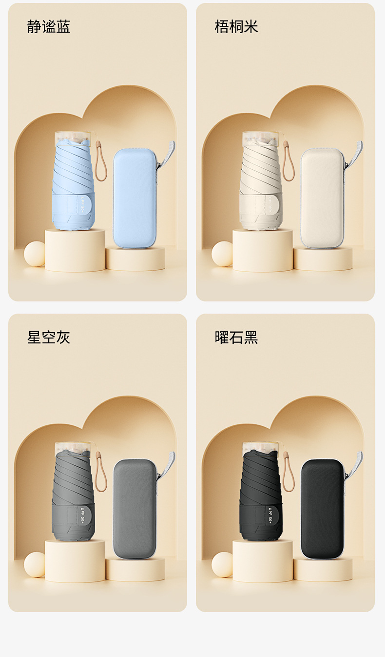 작은 휴대용 접히는 우산 6 배 높은 가치 빛 고급 양산 우산 UV 보호 및 비 보호 이중 목적 캡슐 우산 우산