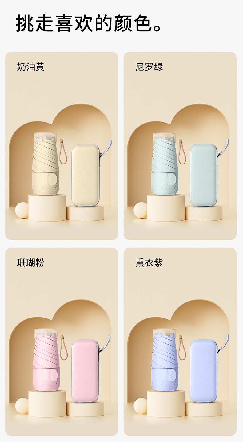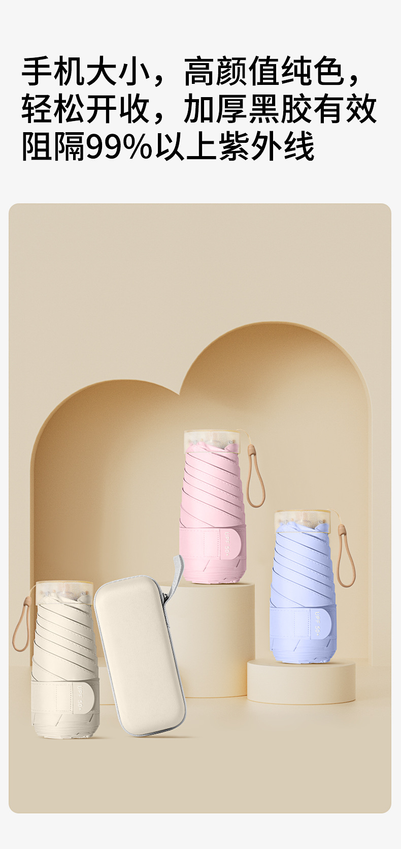 작은 휴대용 접히는 우산 6 배 높은 가치 빛 고급 양산 우산 UV 보호 및 비 보호 이중 목적 캡슐 우산 우산스토어 가기