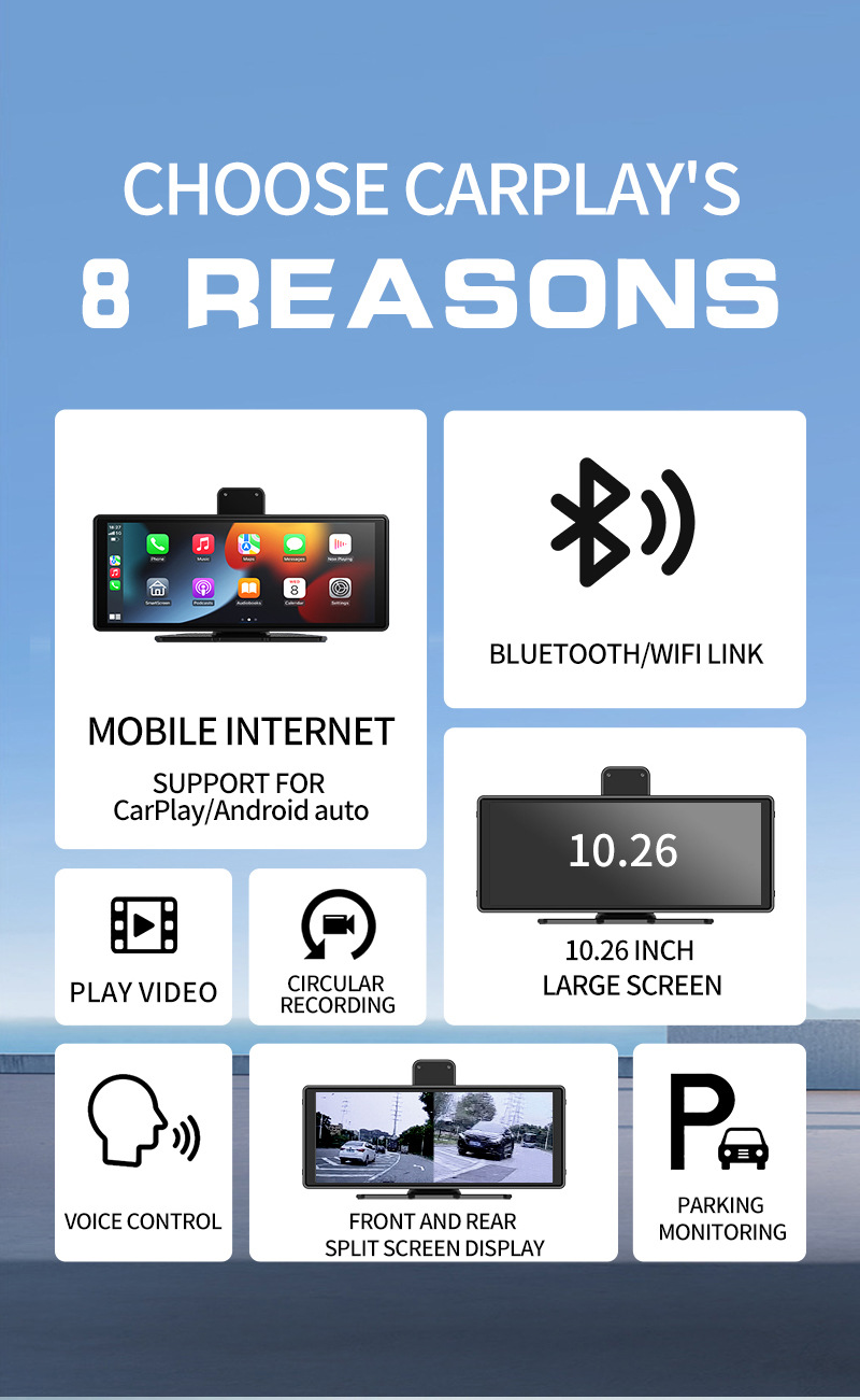• carplay 버전 10.26inch DVR(전면 및 후면 비디오 녹화)