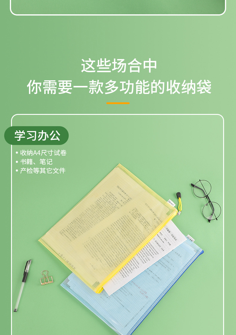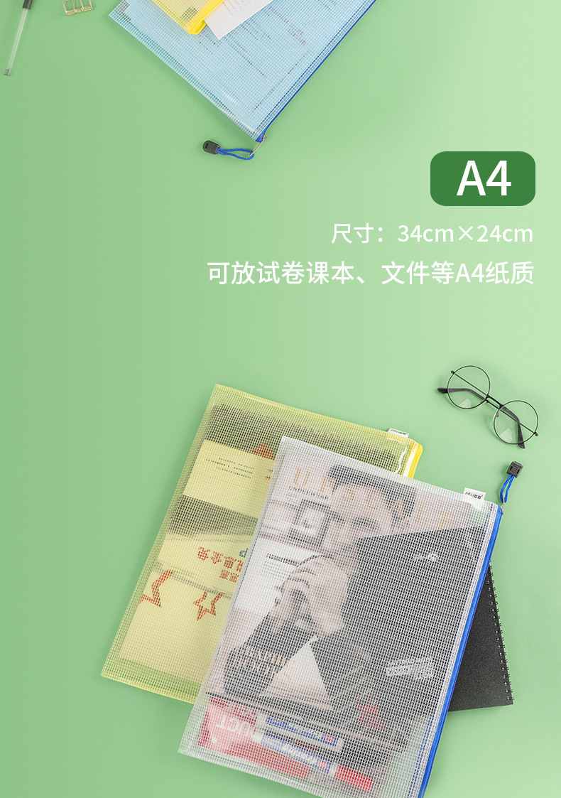 제리 3301A4 그리드 지퍼 파일 가방 사무실 투명 파일 가방 회의 가방 광고 가방 데이터 저장 가방