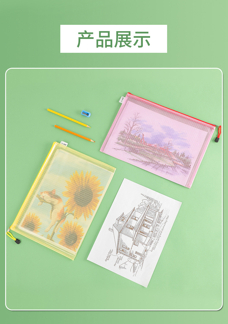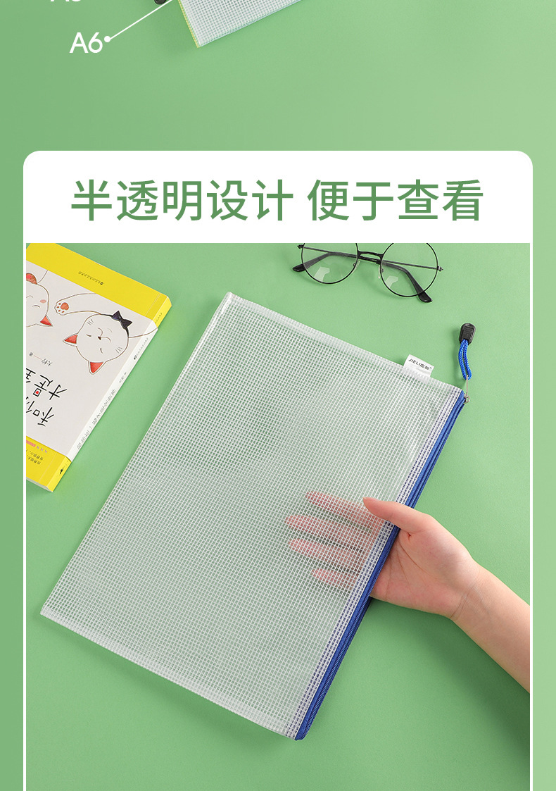 제리 3301A4 그리드 지퍼 파일 가방 사무실 투명 파일 가방 회의 가방 광고 가방 데이터 저장 가방스토어 가기