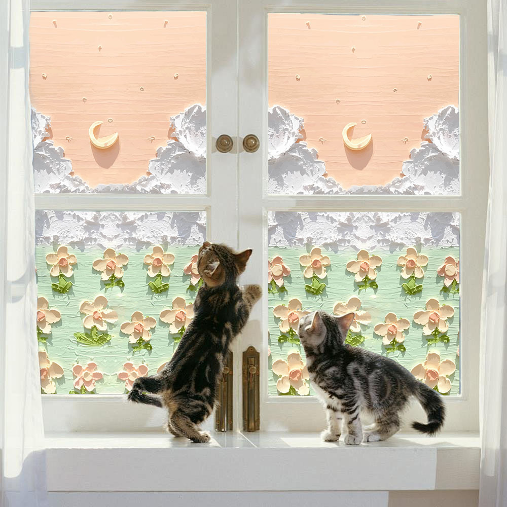 Aike BLT5129 만화 크림 스타일 달 꽃밭 유리 스티커 욕실 장식 유리 도어 접착제-없는 정전기 스티커