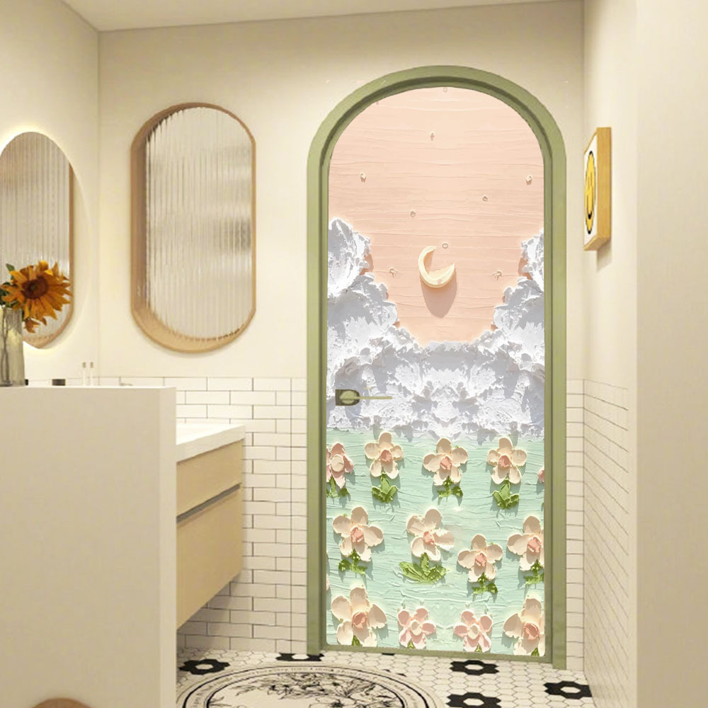 Aike BLT5129 만화 크림 스타일 달 꽃밭 유리 스티커 욕실 장식 유리 도어 접착제-없는 정전기 스티커스토어 가기