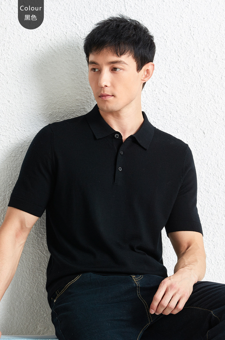 100 메리노 울 스웨터 남자 반팔 얇은 레이저 니트 베이스 셔츠 단색 봄과 가을 반소매 스웨터스토어 가기
