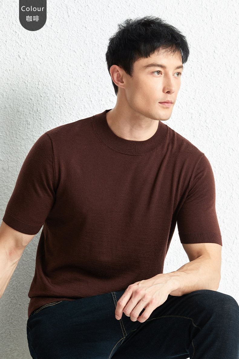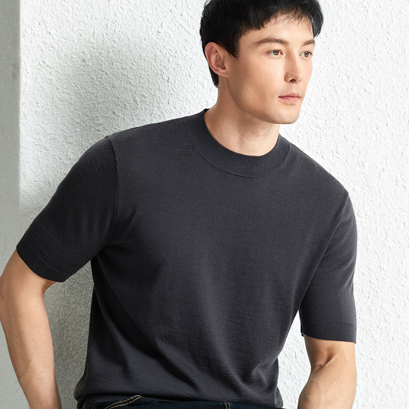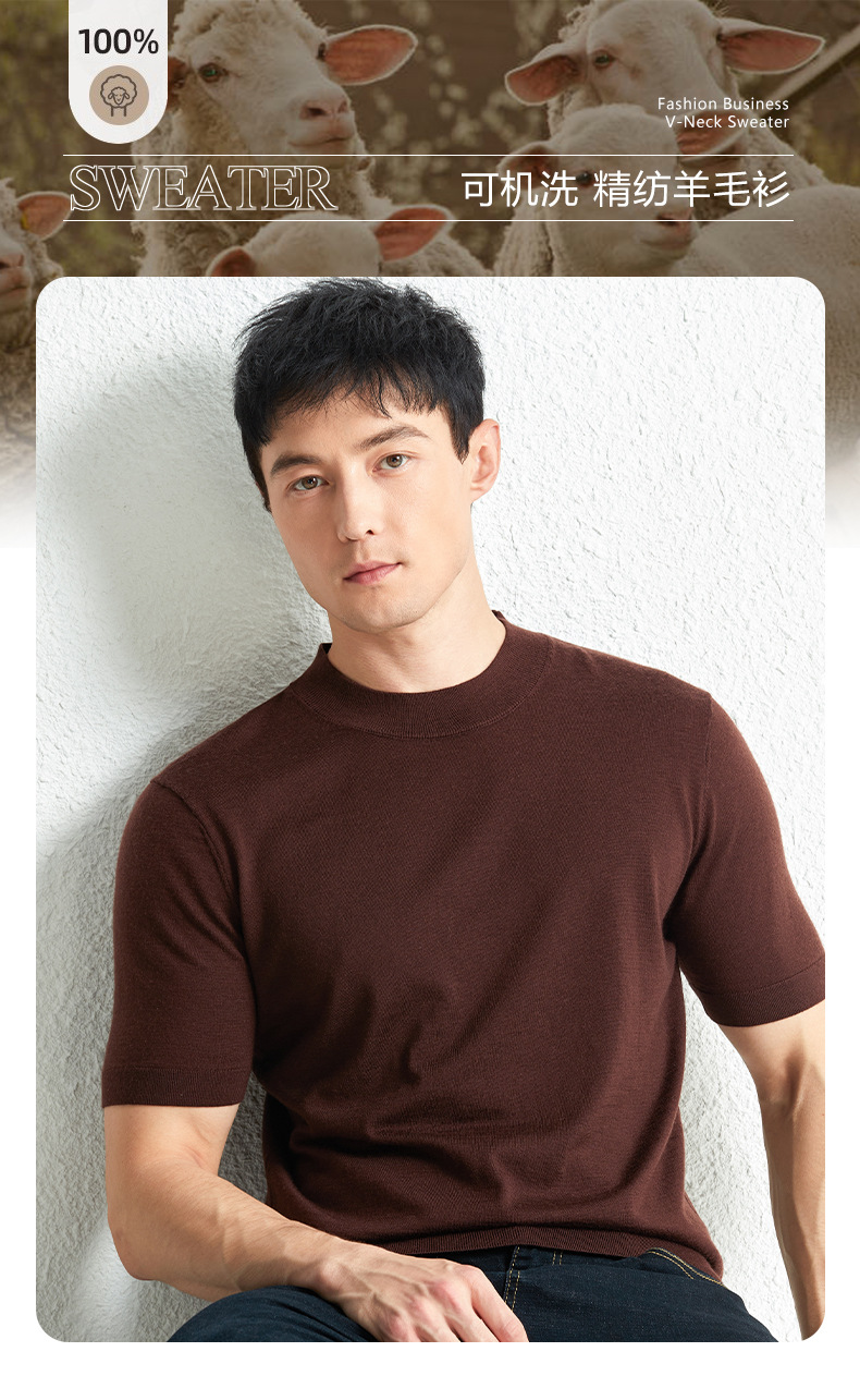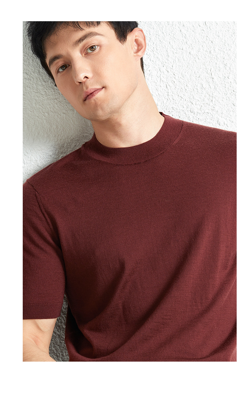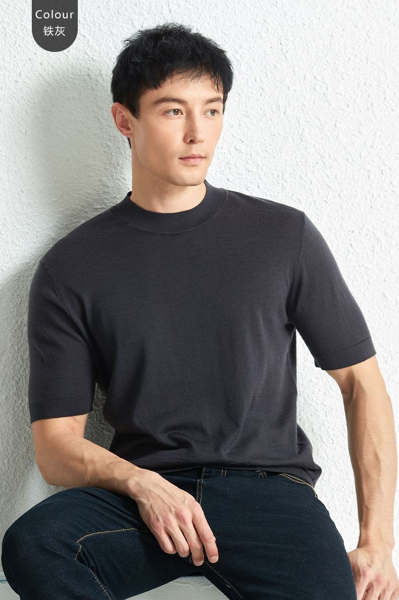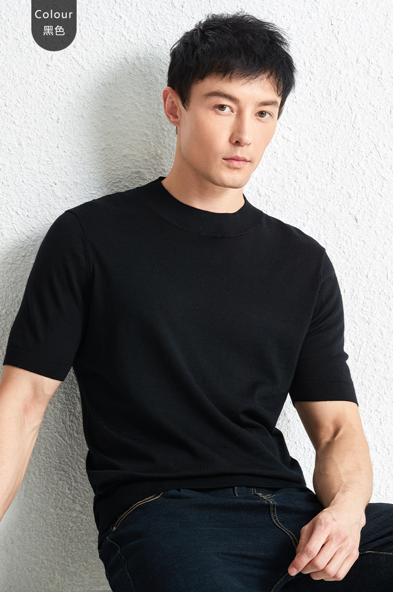 가을 100 메리노 울 스웨터 남자 반팔 얇은 반 터틀넥 니트베이스 셔츠 단색 반소매 스웨터스토어 가기