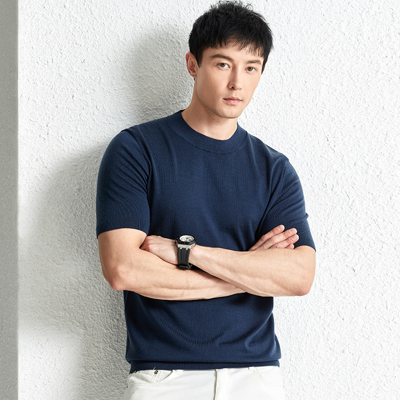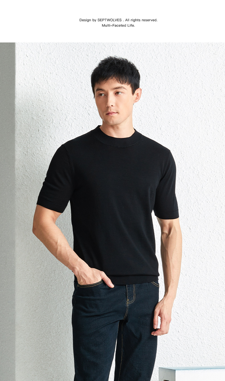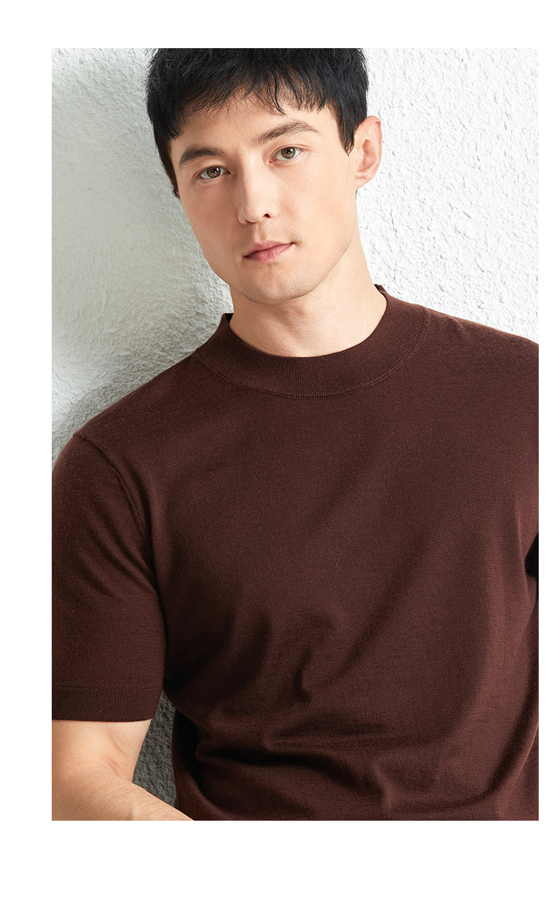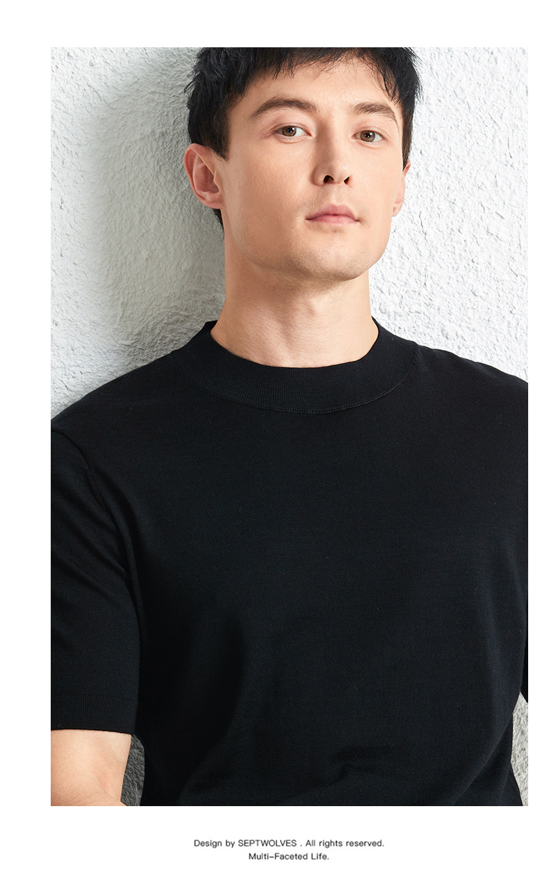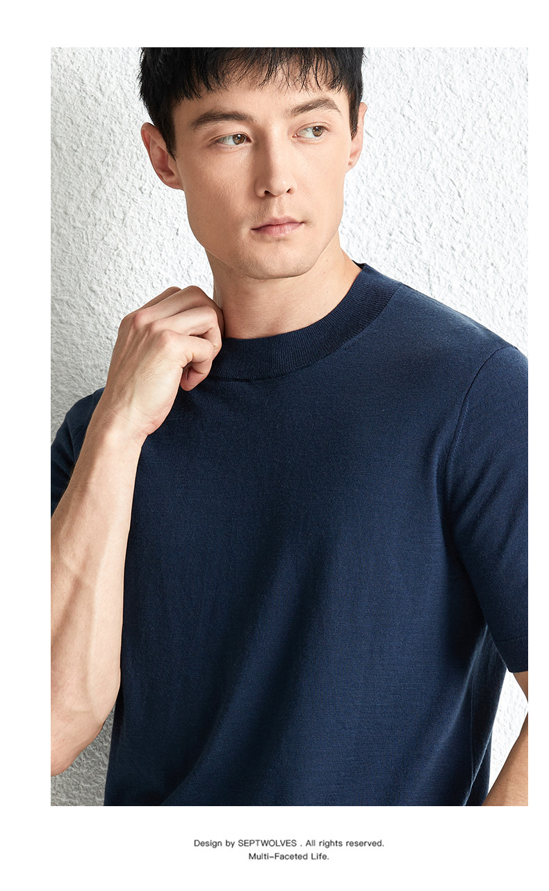 가을 100 메리노 울 스웨터 남자 반팔 얇은 반 터틀넥 니트베이스 셔츠 단색 반소매 스웨터스토어 가기