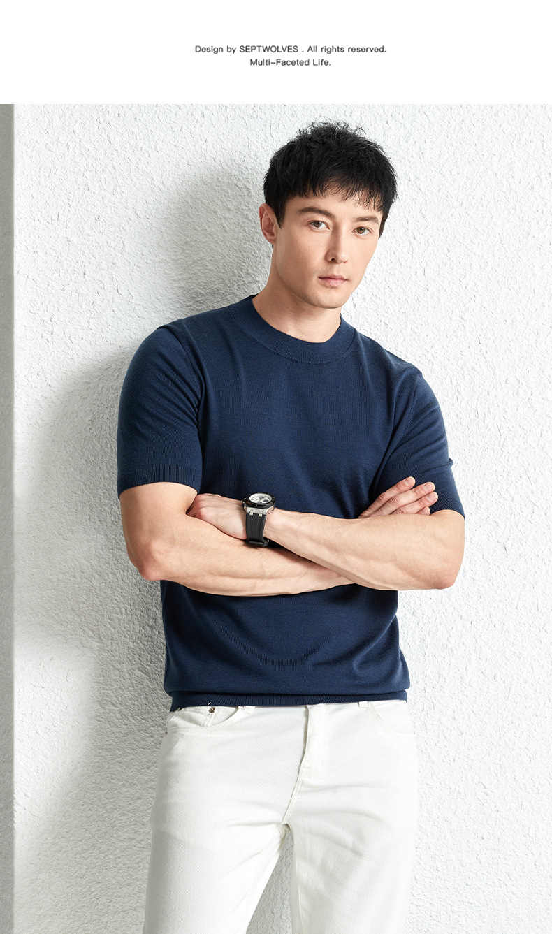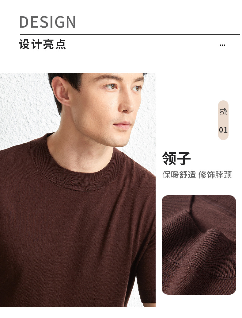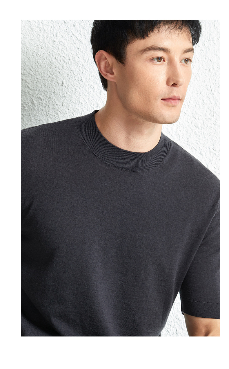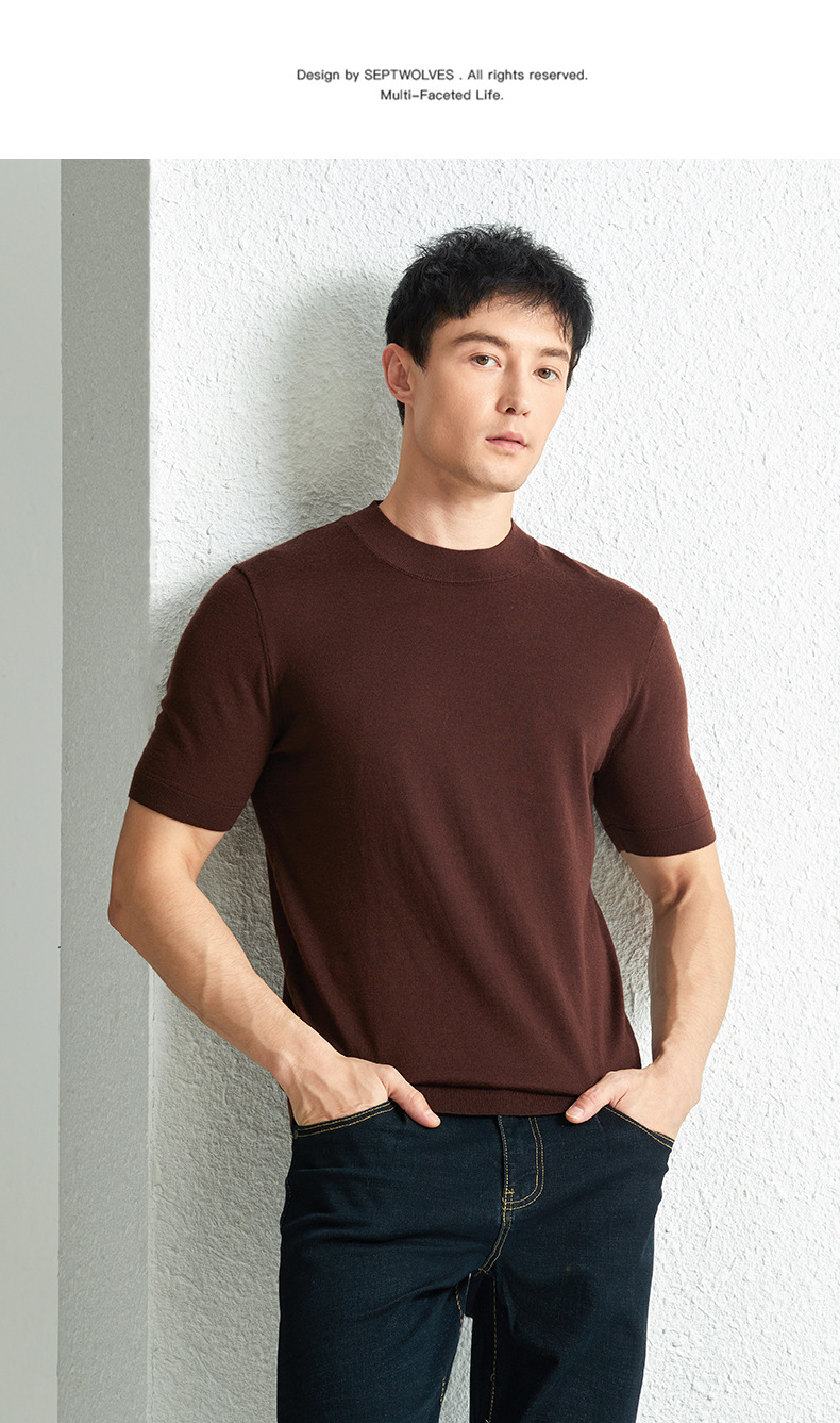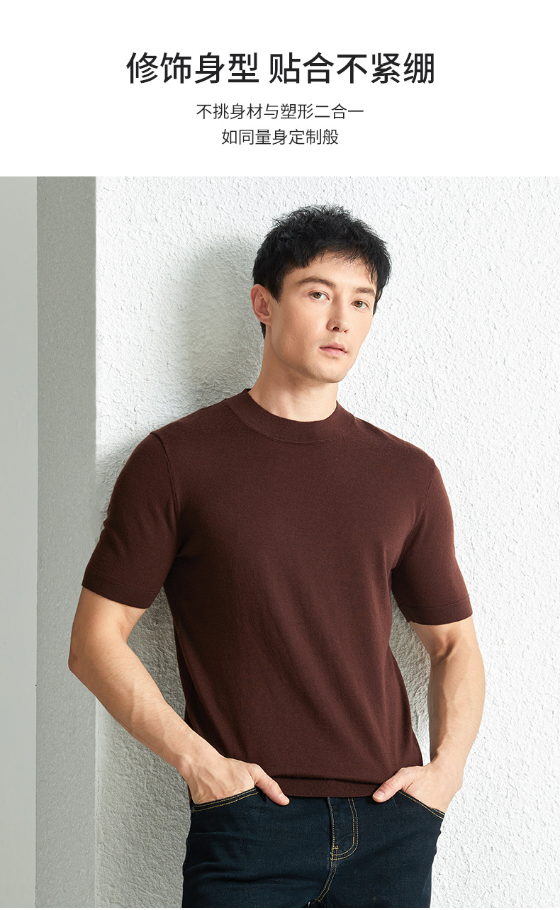 가을 100 메리노 울 스웨터 남자 반팔 얇은 반 터틀넥 니트베이스 셔츠 단색 반소매 스웨터스토어 가기