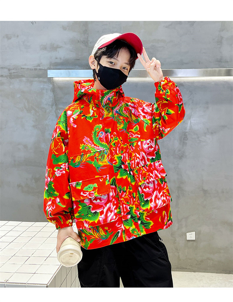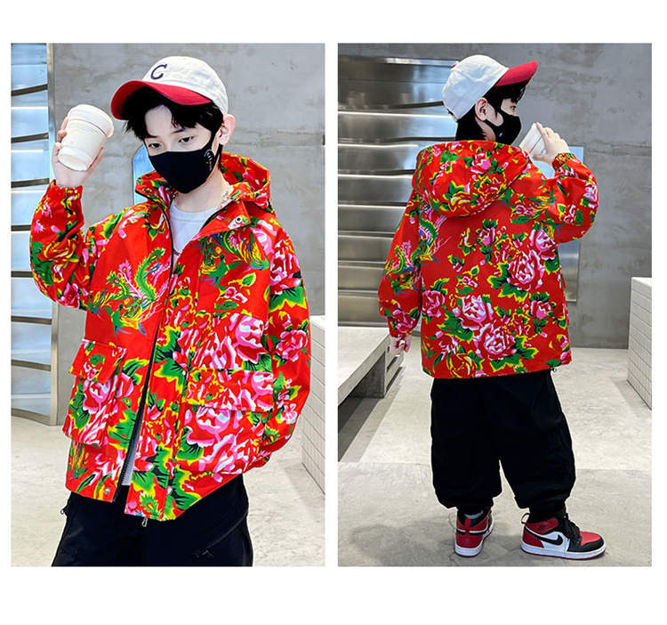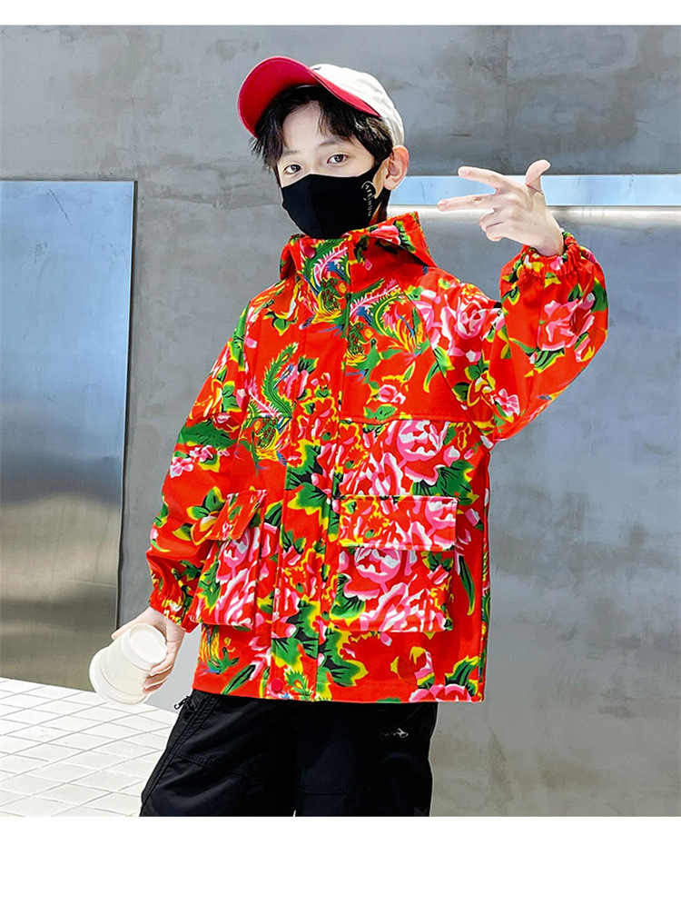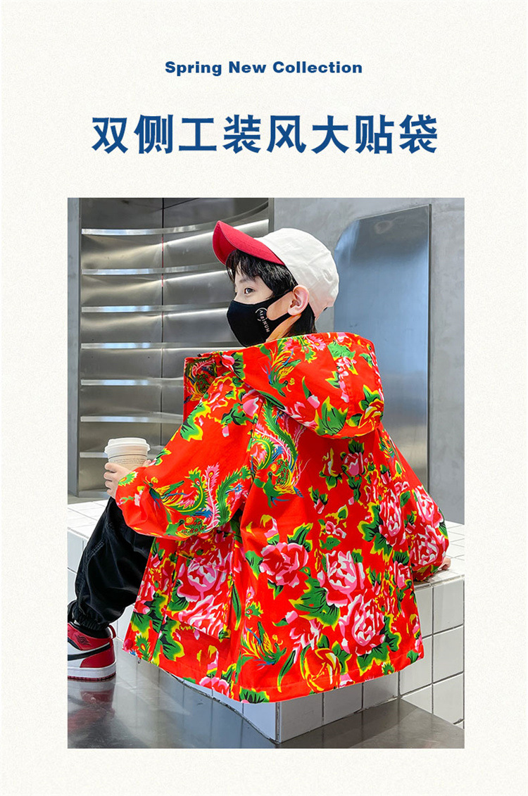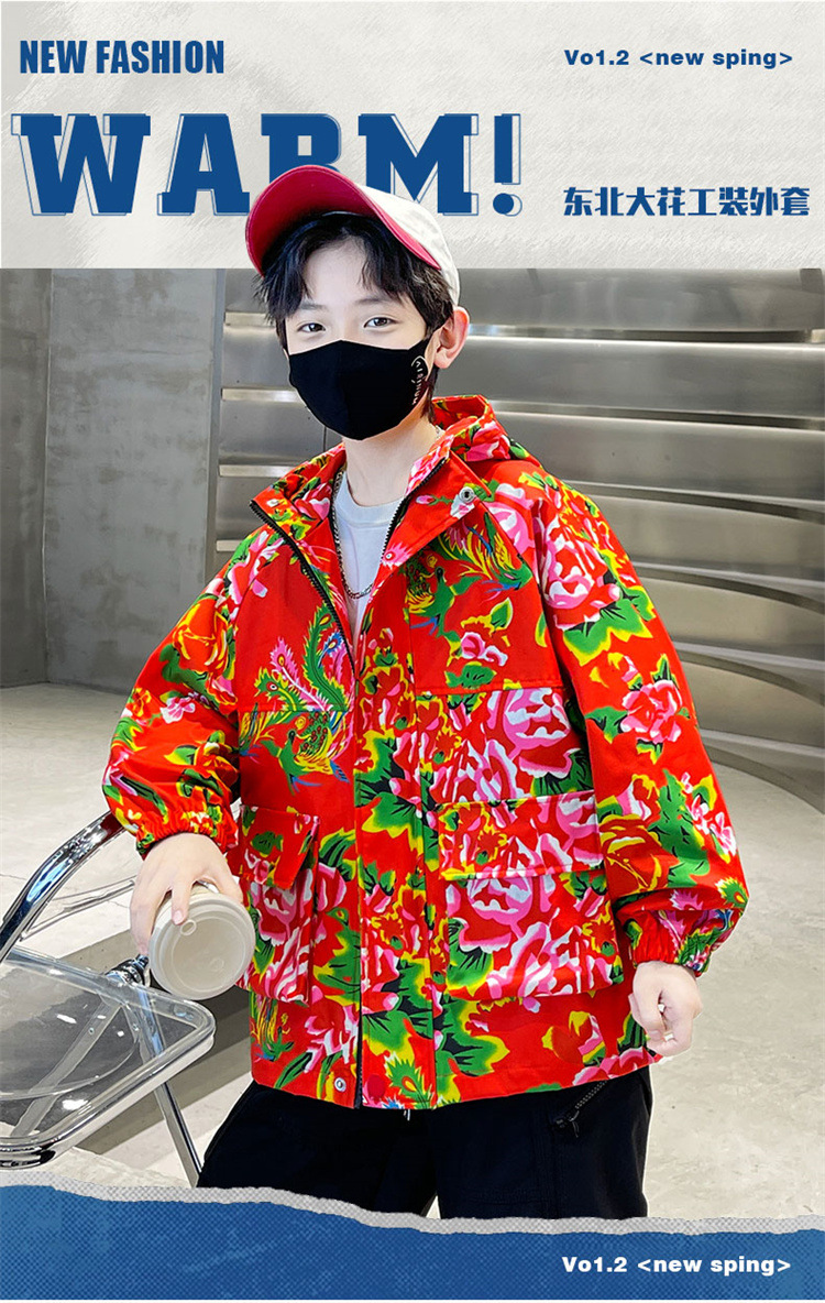 소년 후드 재킷 봄과 가을 스타일 Northeastern 꽃무늬 작업 재킷 큰 어린이 2025 새로운 인터넷 연예인 잘 생긴 윈드 브레이커스토어 가기