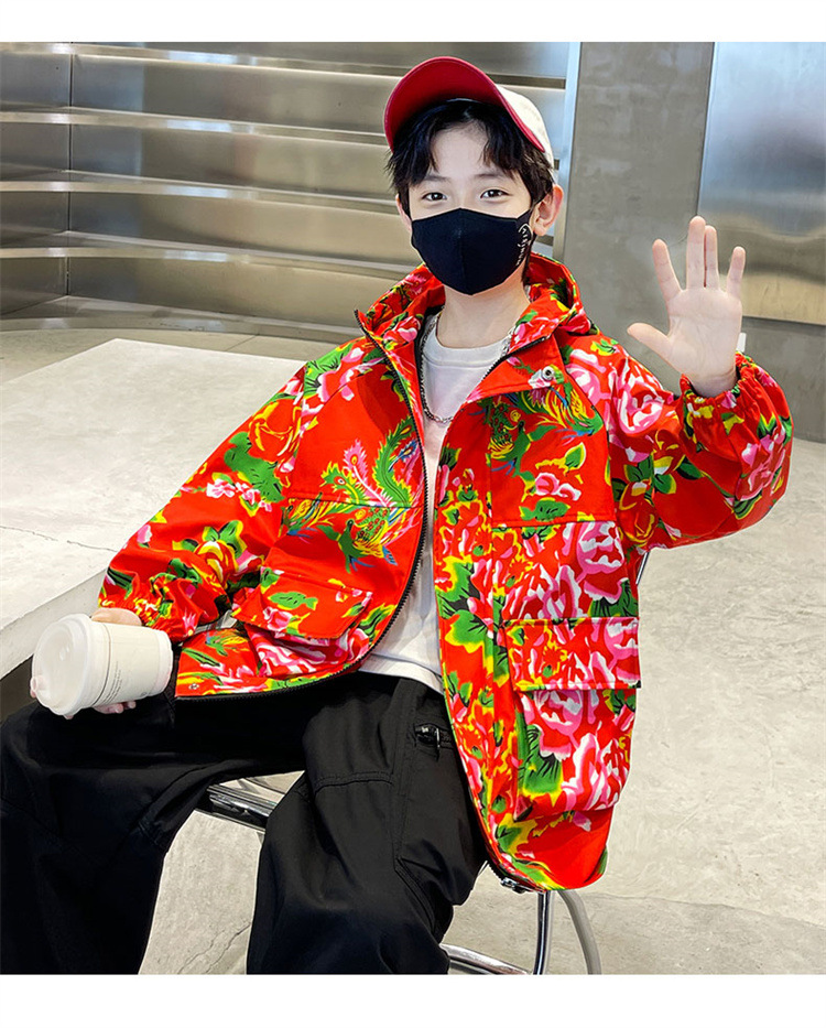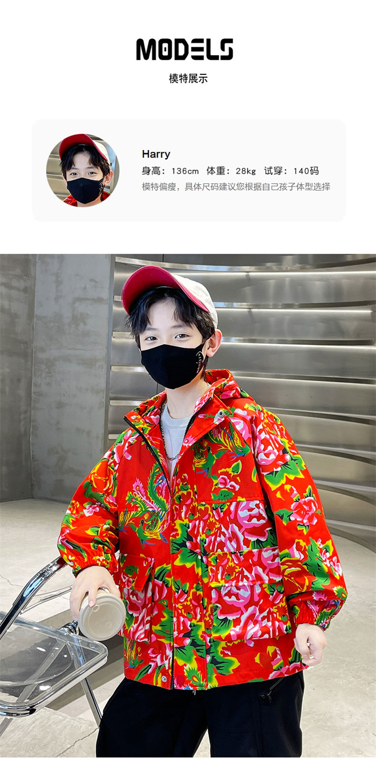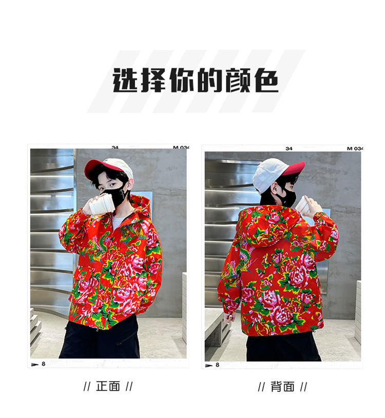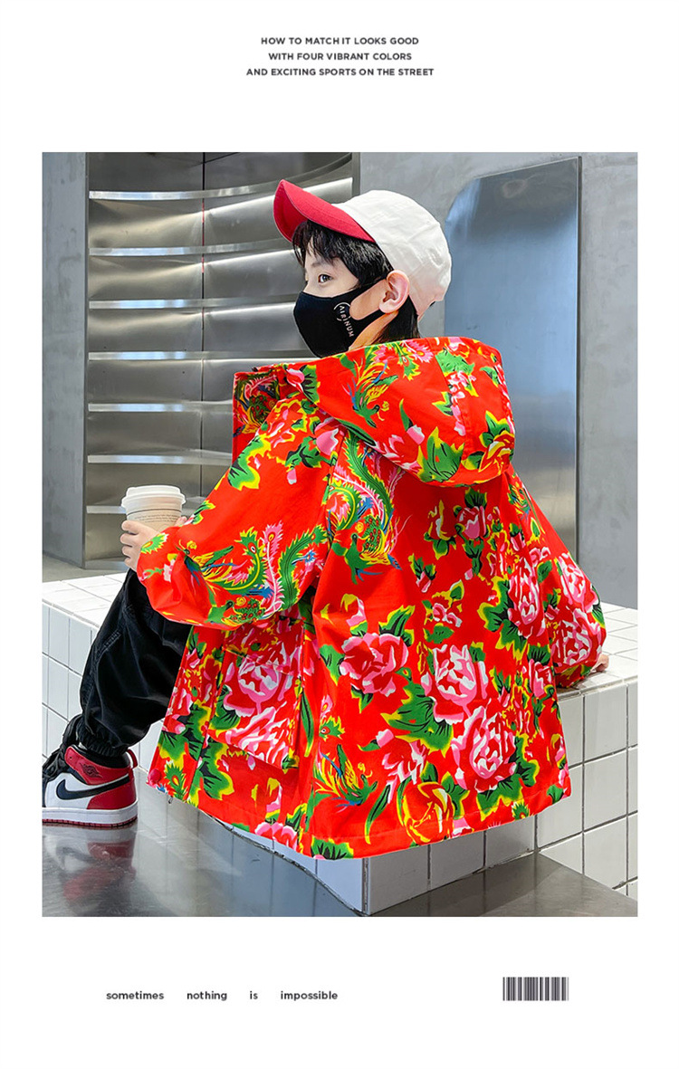 소년 후드 재킷 봄과 가을 스타일 Northeastern 꽃무늬 작업 재킷 큰 어린이 2025 새로운 인터넷 연예인 잘 생긴 윈드 브레이커스토어 가기