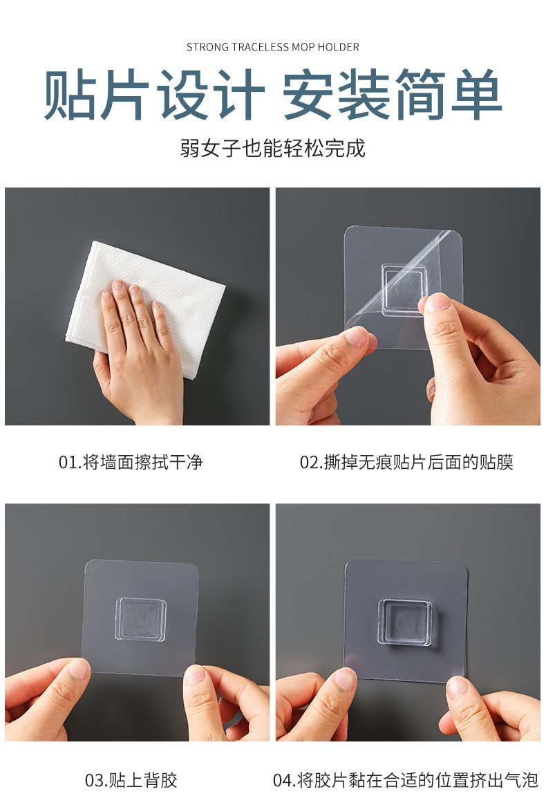 새로운 간단한 걸레 랙 펀치 없음 추적 접착제 걸레 클립 화장실 강한 접착제 추적 없음 욕실 걸레 보관