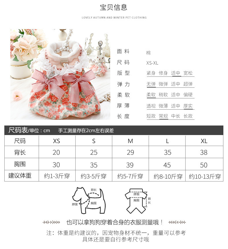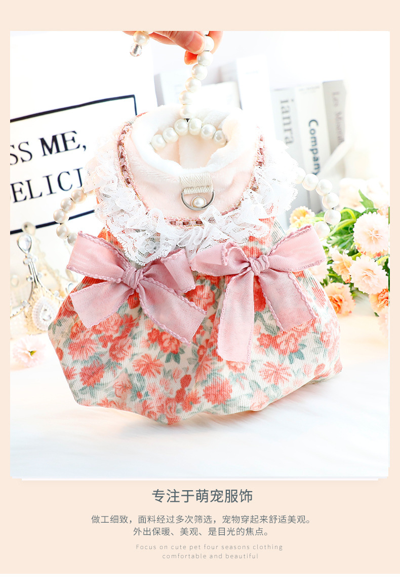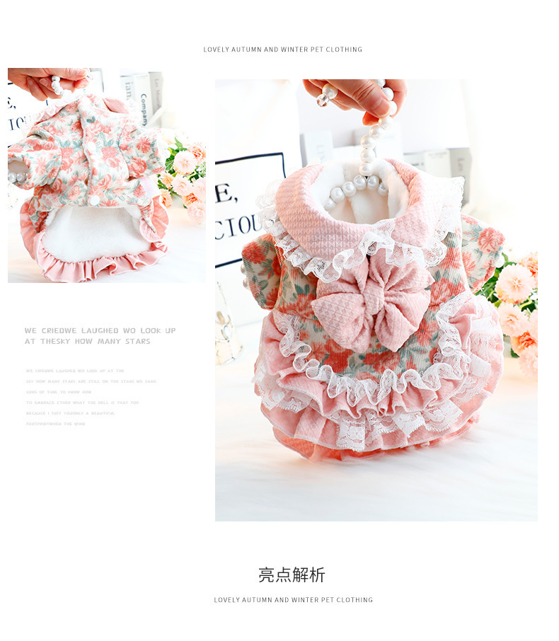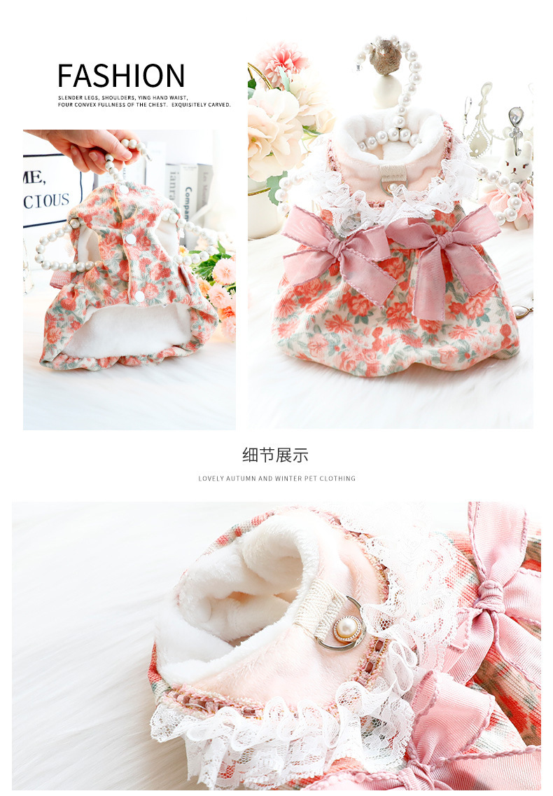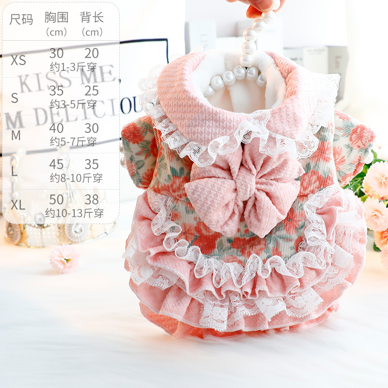 가을과 겨울 개 옷 두꺼운 고양이 공주 원피스 견인 로리타 귀여운 작은 개 테디 애완 동물 5885