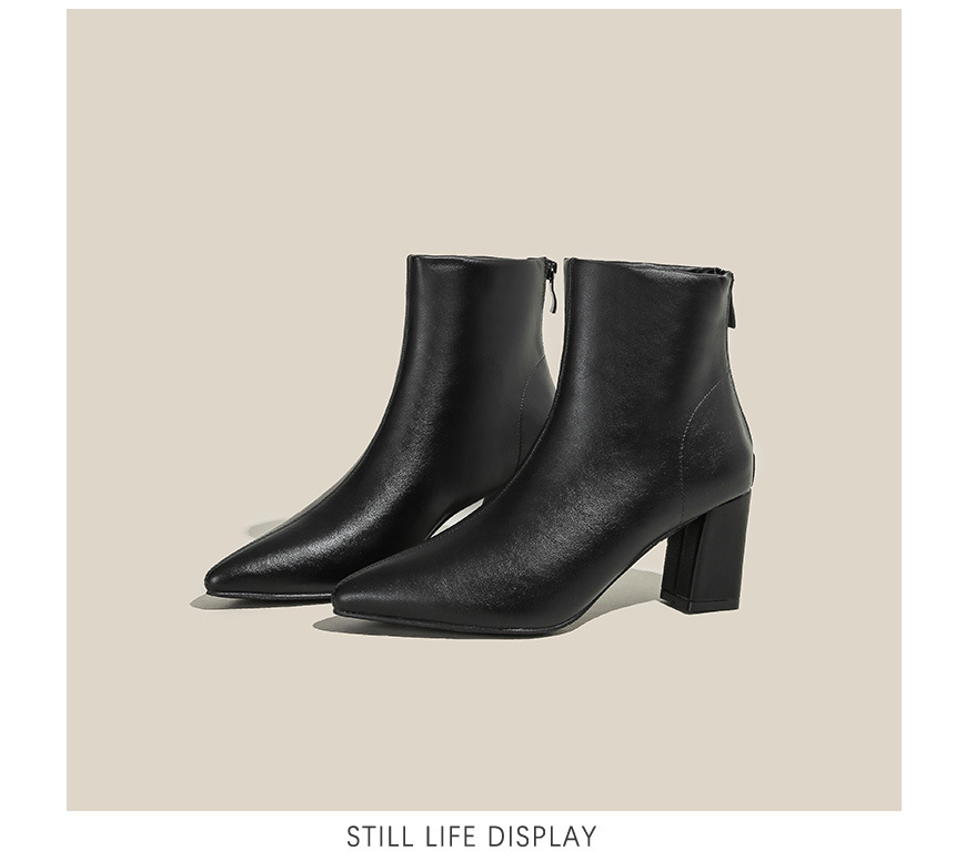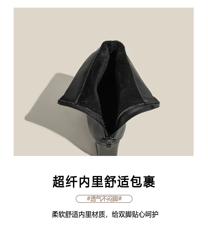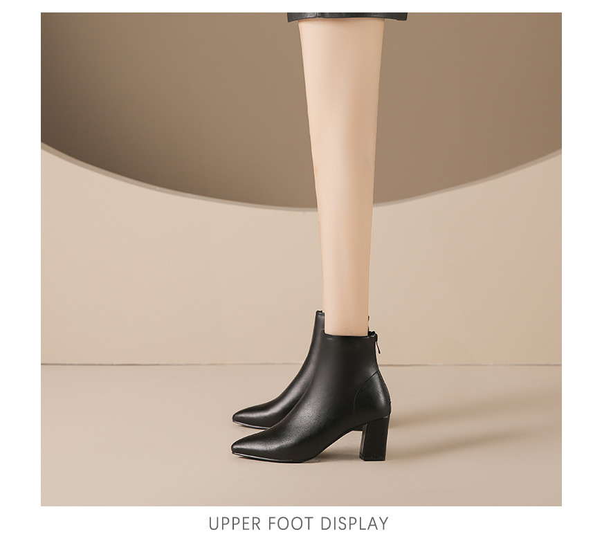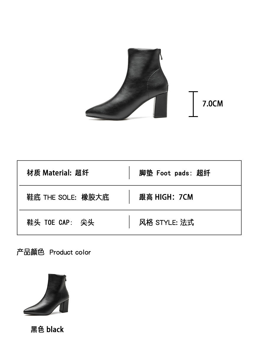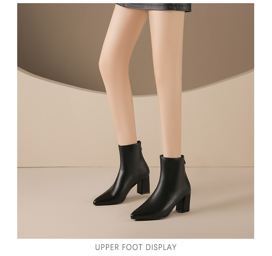 여자 2024 새로운 포인팅 두꺼운 힐 플러스 사이즈 통근 부츠 싱글 부츠 알몸 부츠 올매치 플러스 뚱뚱한 폭 블랙