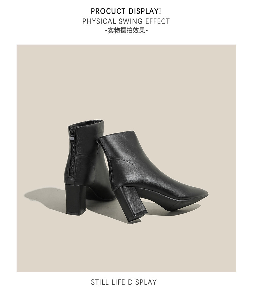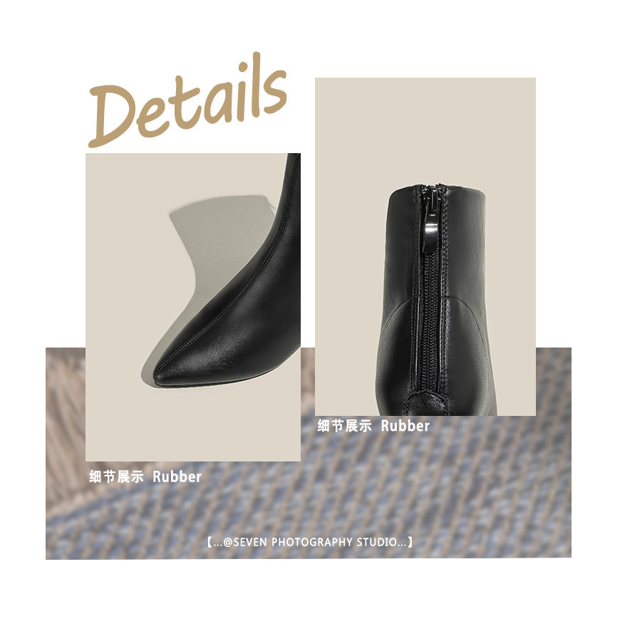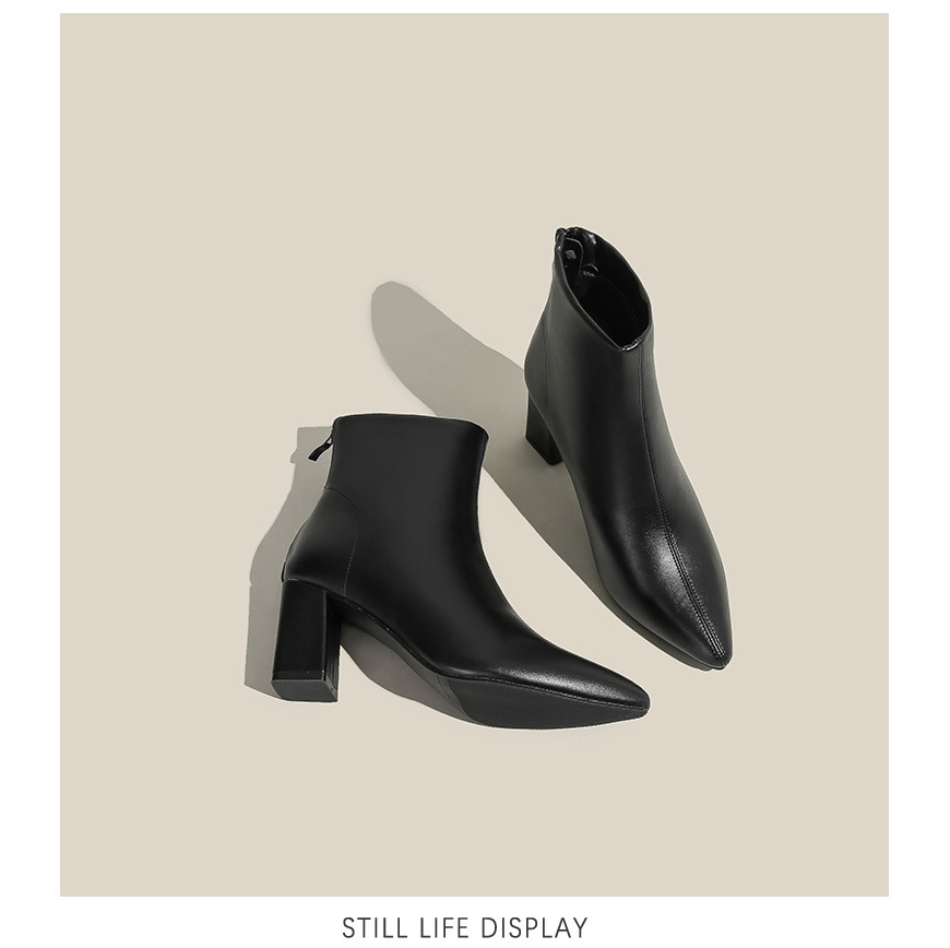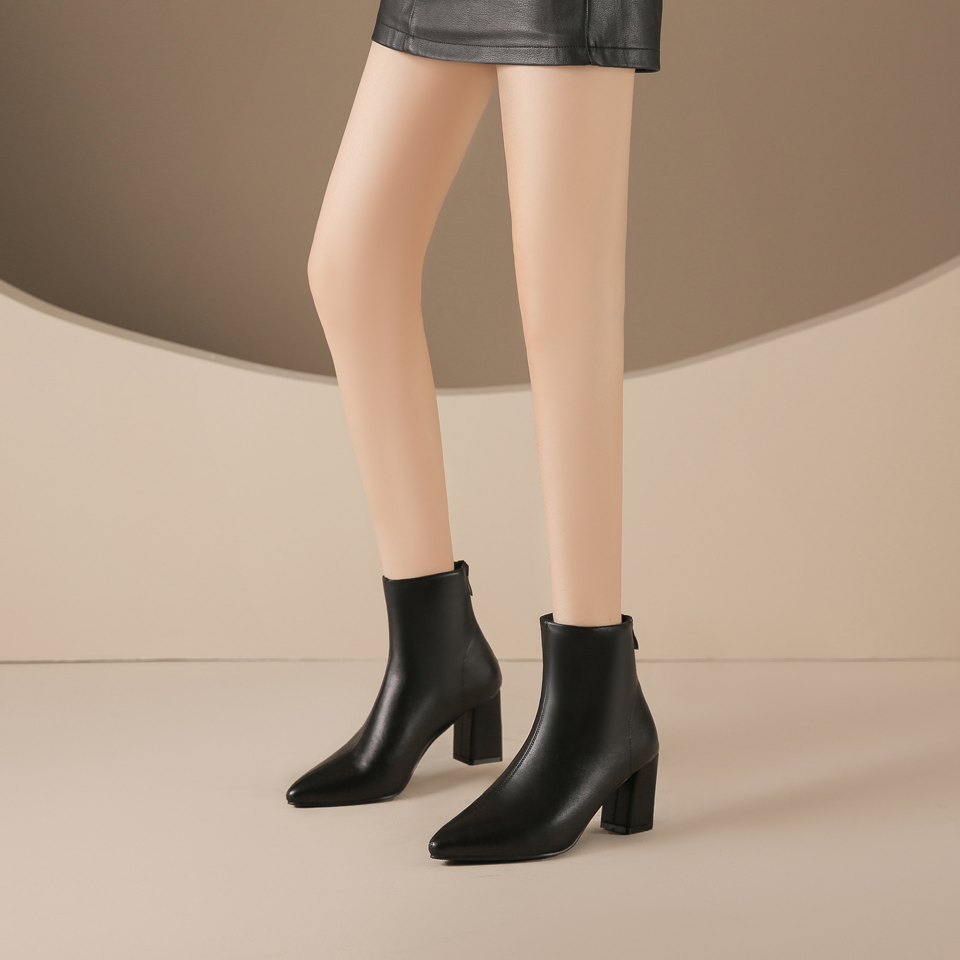 여자 2024 새로운 포인팅 두꺼운 힐 플러스 사이즈 통근 부츠 싱글 부츠 알몸 부츠 올매치 플러스 뚱뚱한 폭 블랙스토어 가기
