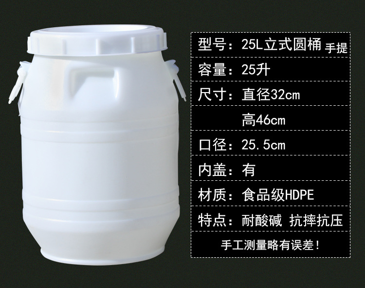 절인 소금에 절인 양배추 플라스틱 양동이 식품 등급 25 kg 흰색 큰 흰색 양동이 뚜껑이 두꺼운 가정이있는 둥근 물 저장스토어 가기