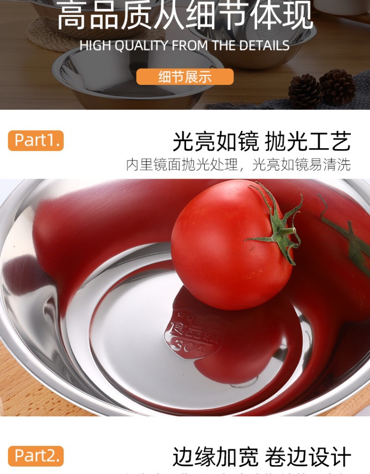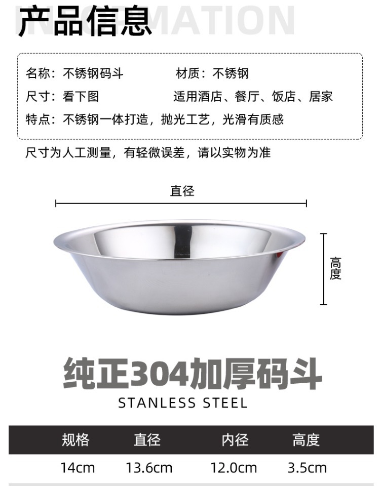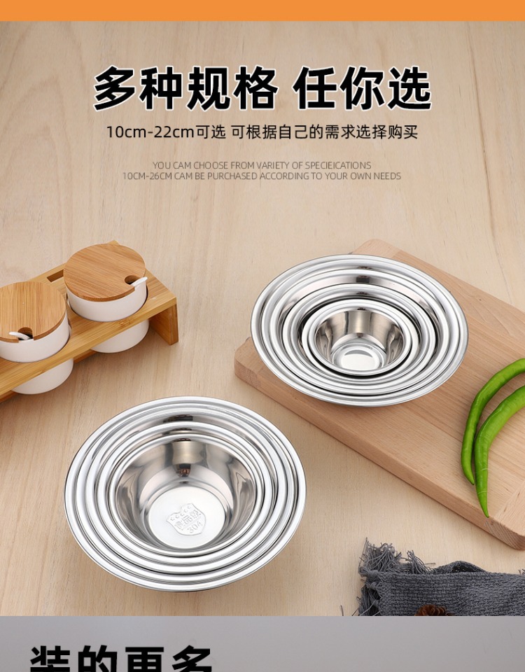 특별한 두꺼운 304 스테인리스 말 덕트 야채 분지와 혼합 분지 조미료 그릇 접시 호텔 주방 재료 분지