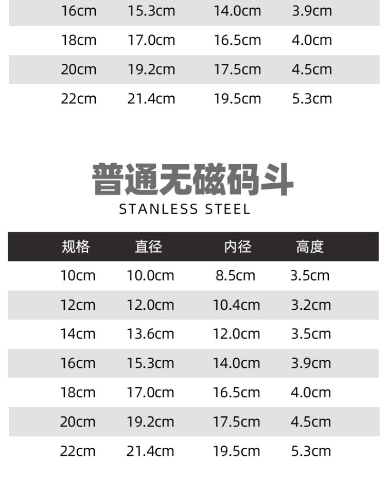 • 18cm 특두께, 비자성, 녹슬지 않음&