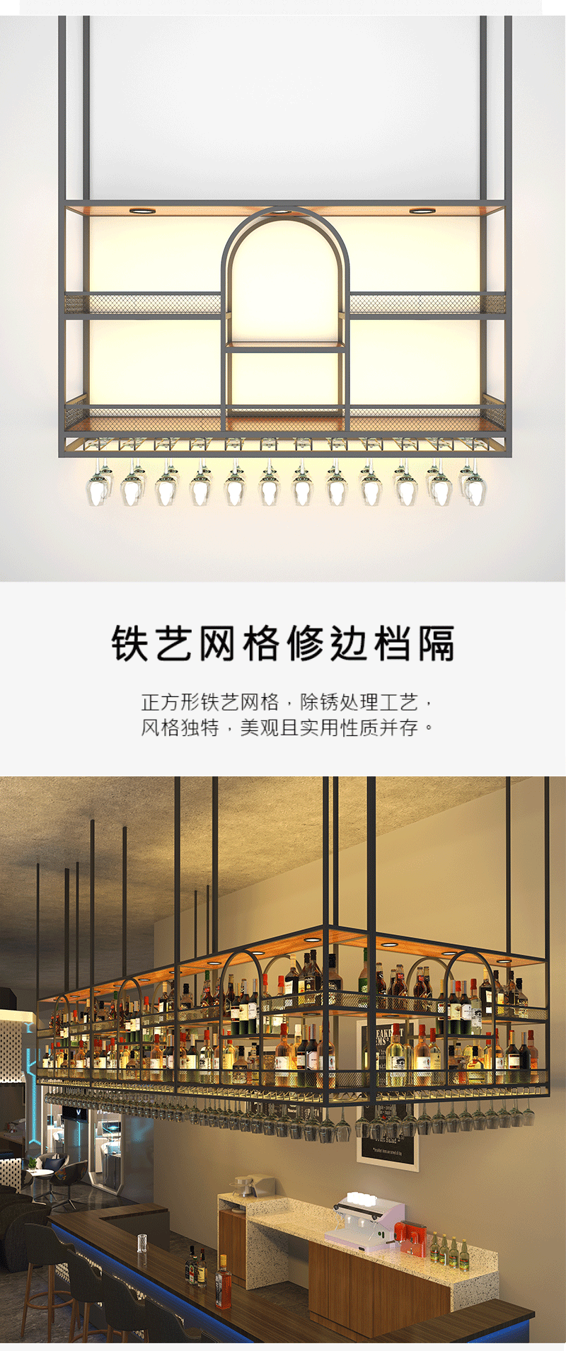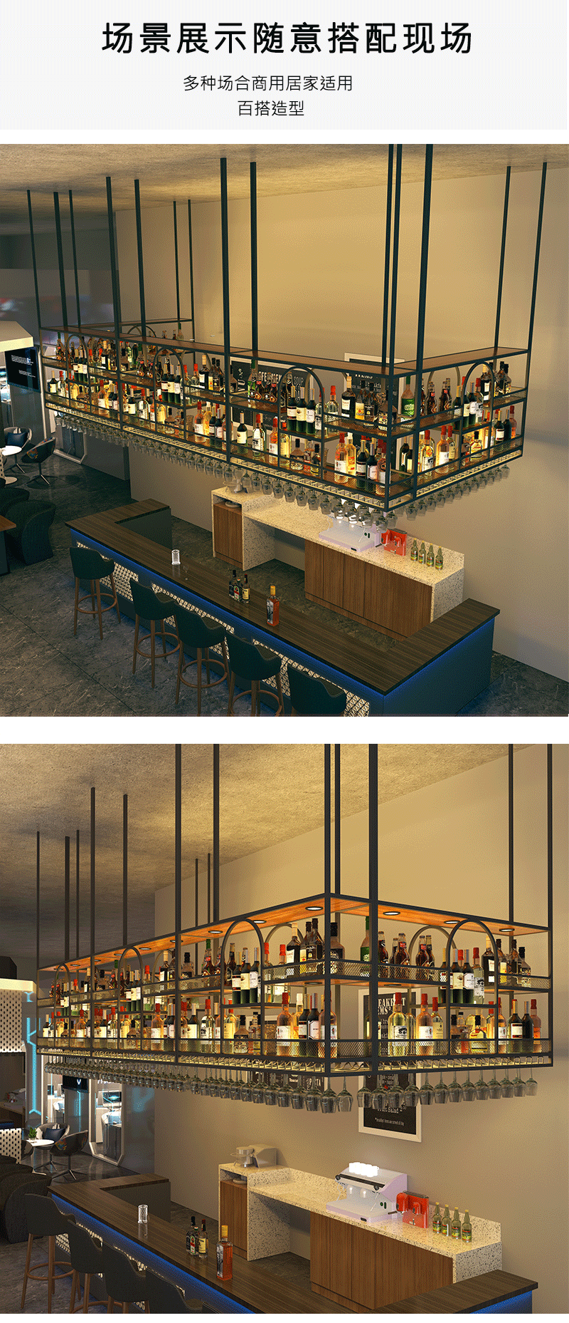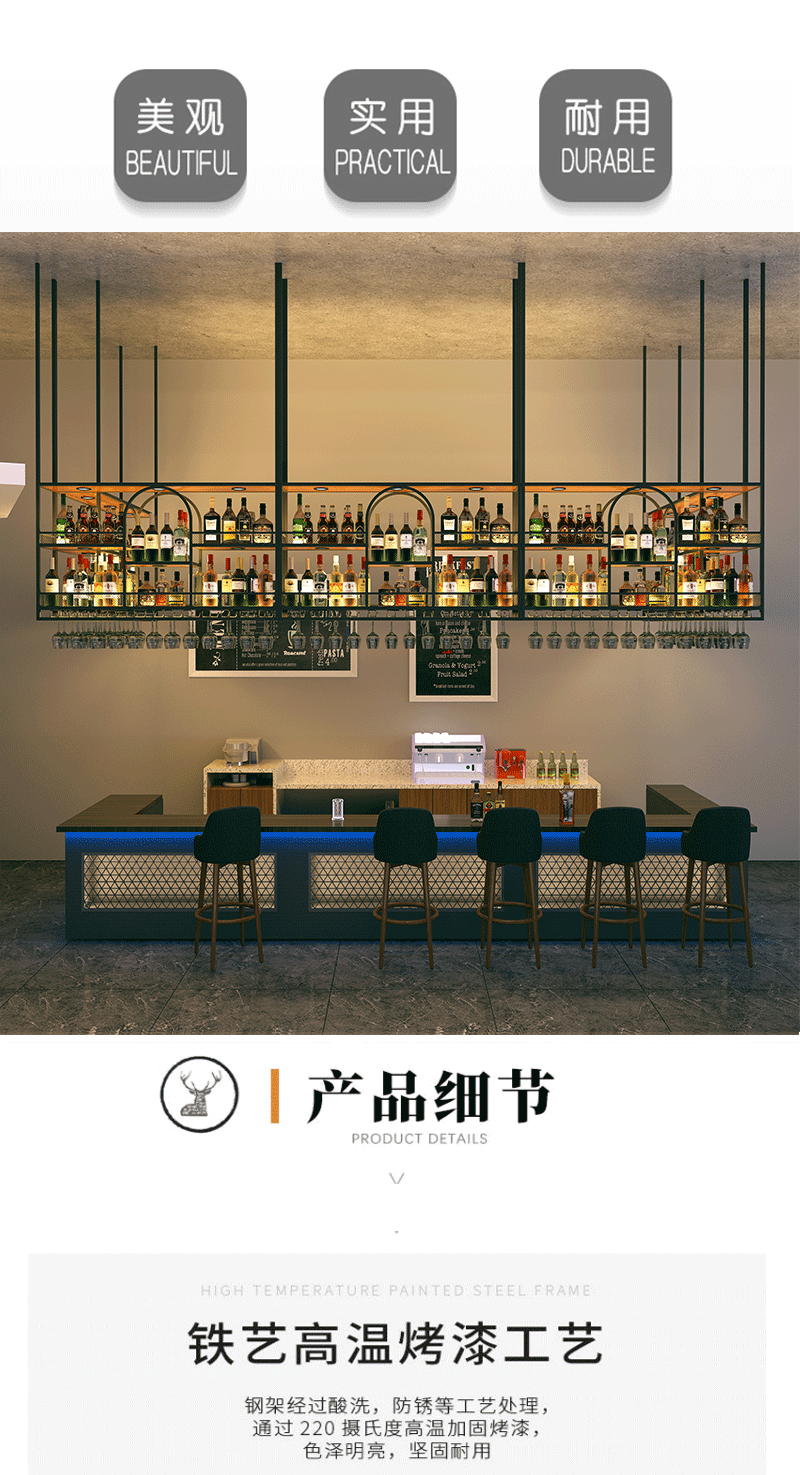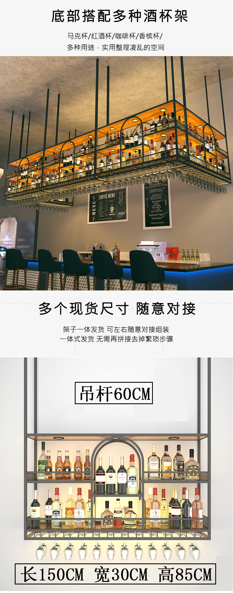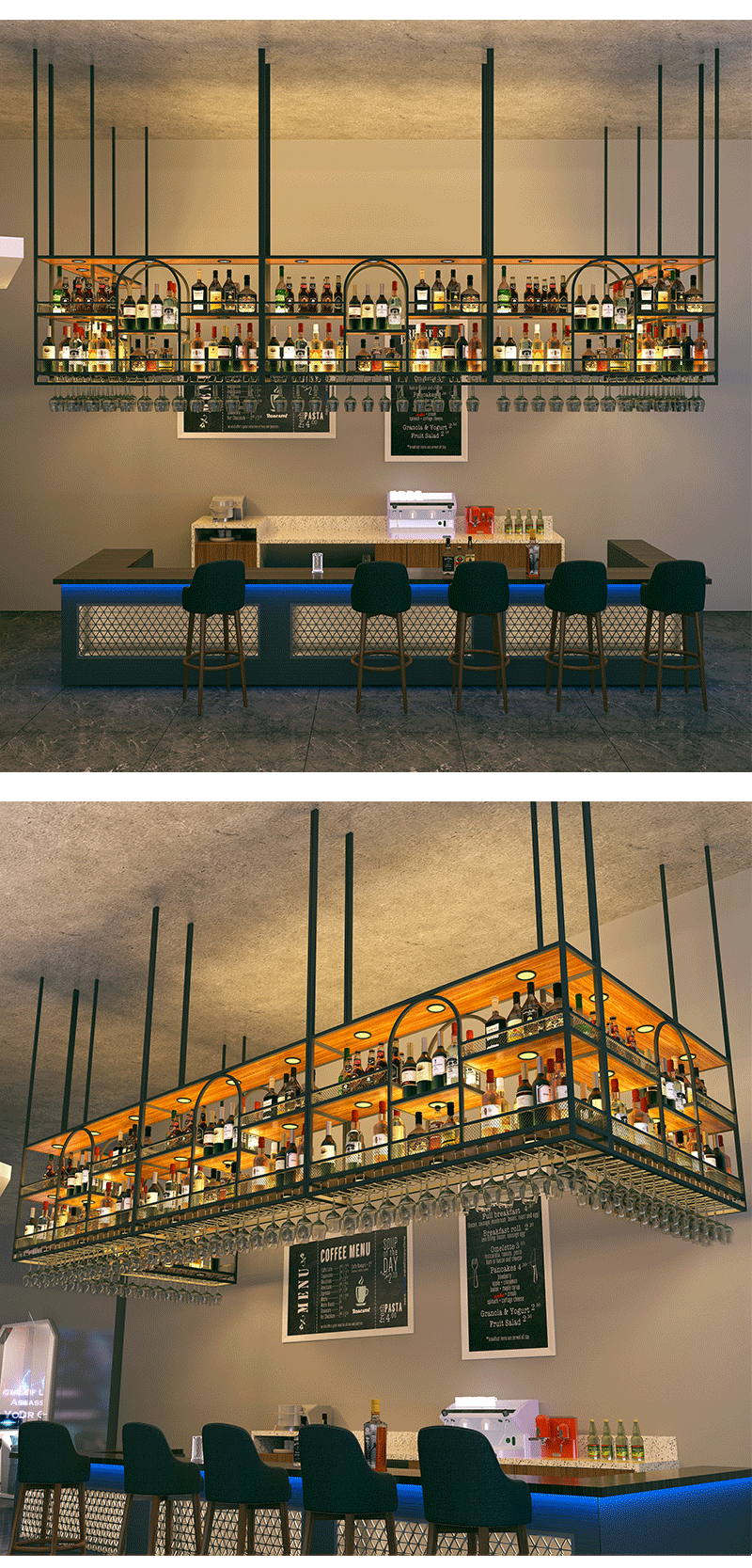 바 카운터 와인 랙 걸이 산업 스타일 철 와인 캐비닛 랙 바 레스토랑 상업 와인 유리 랙 거꾸로 매달려