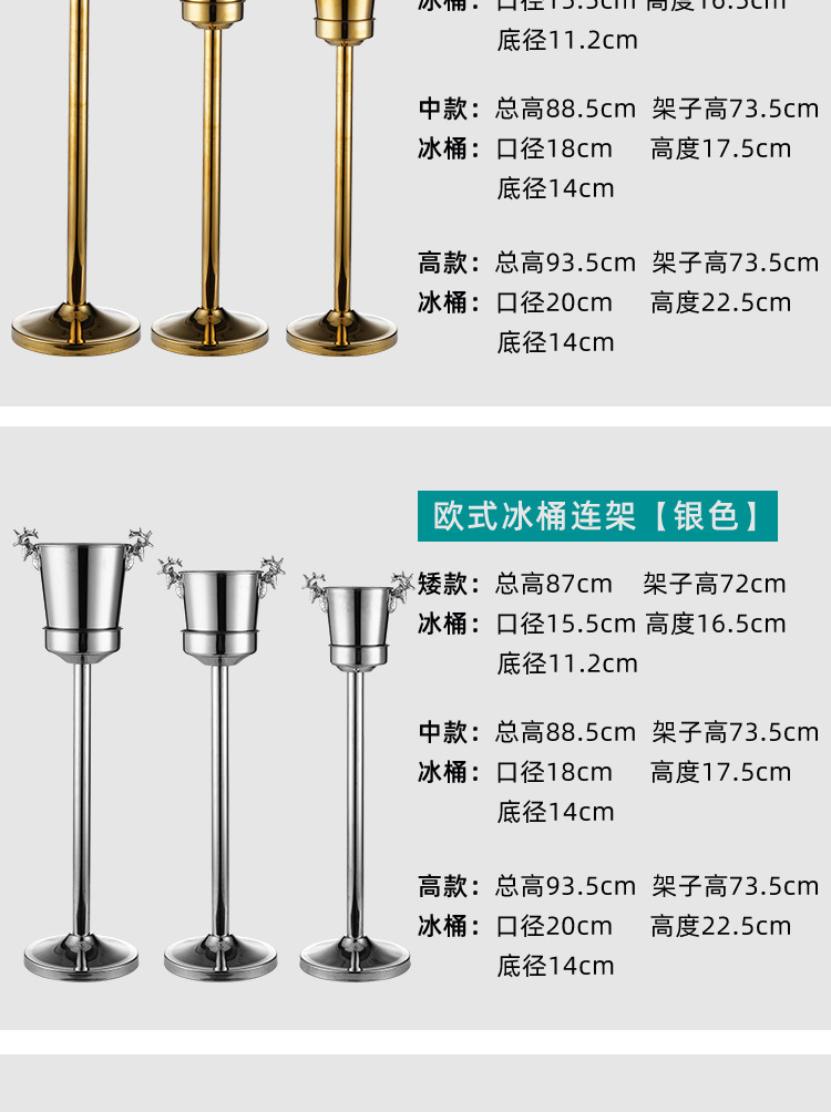 유럽 스타일 두꺼운 스테인레스 스틸 아이스 버킷 랙 바 KTV 샴페인 버킷 랙 수직 아이스 버킷 랙 가정용 와인 랙