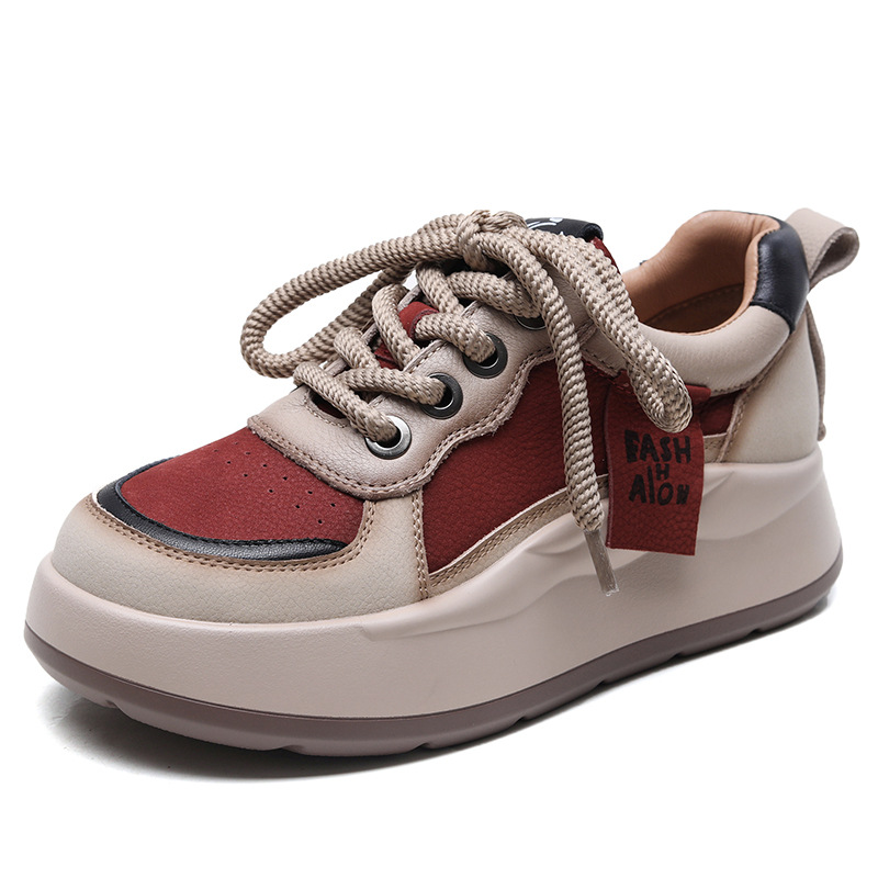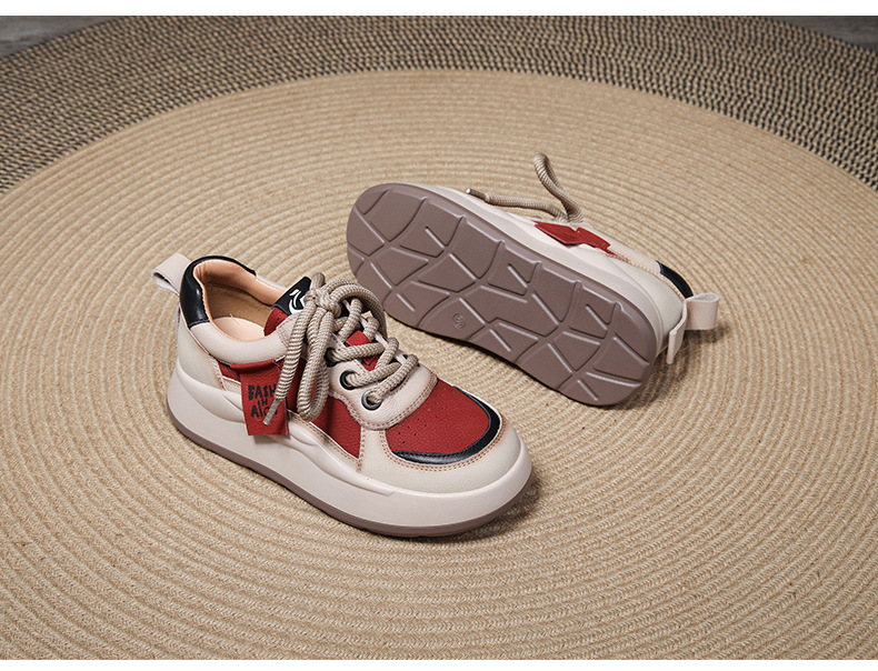 가을 2024 년 새로운 1 층 Niubago 복고풍 캐주얼 두꺼운 밑창 색상 일치 레이스 업 라운드 토 싱글 레이어 신발 여성용