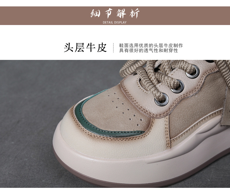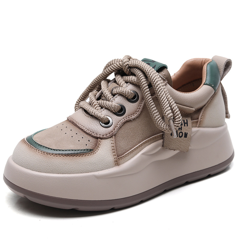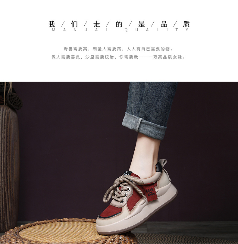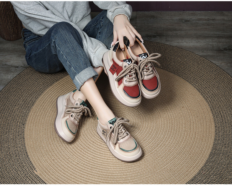 가을 2024 년 새로운 1 층 Niubago 복고풍 캐주얼 두꺼운 밑창 색상 일치 레이스 업 라운드 토 싱글 레이어 신발 여성용스토어 가기