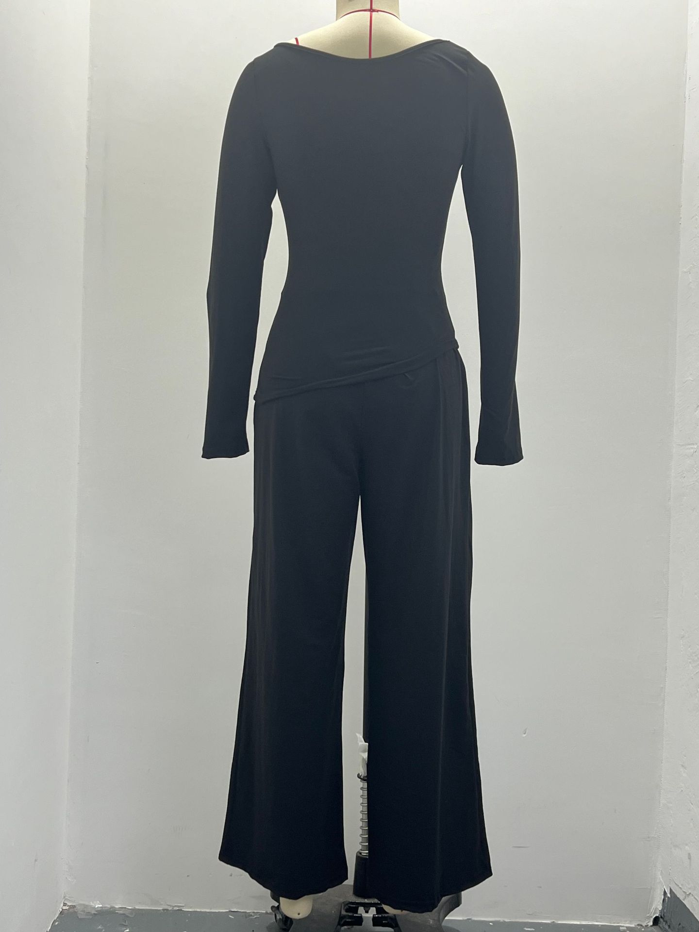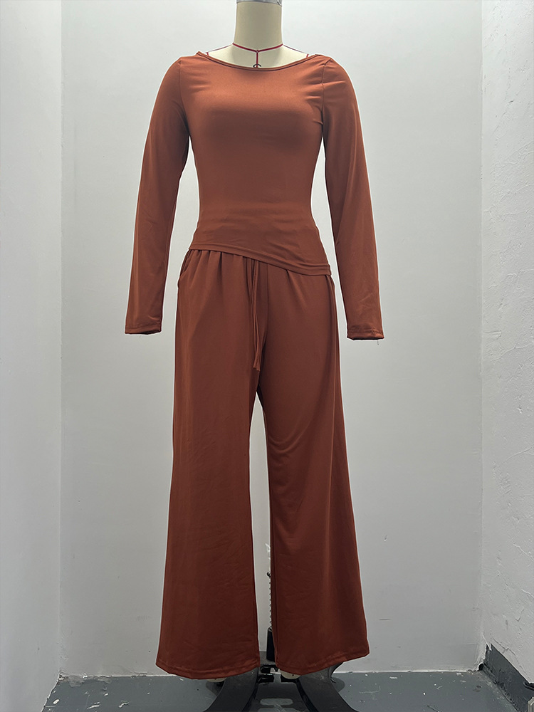 2026 아마존 가을 인기 캐주얼 세트 비대칭 긴팔 티셔츠 와이드 팬츠 캐주얼웨어 운동복
