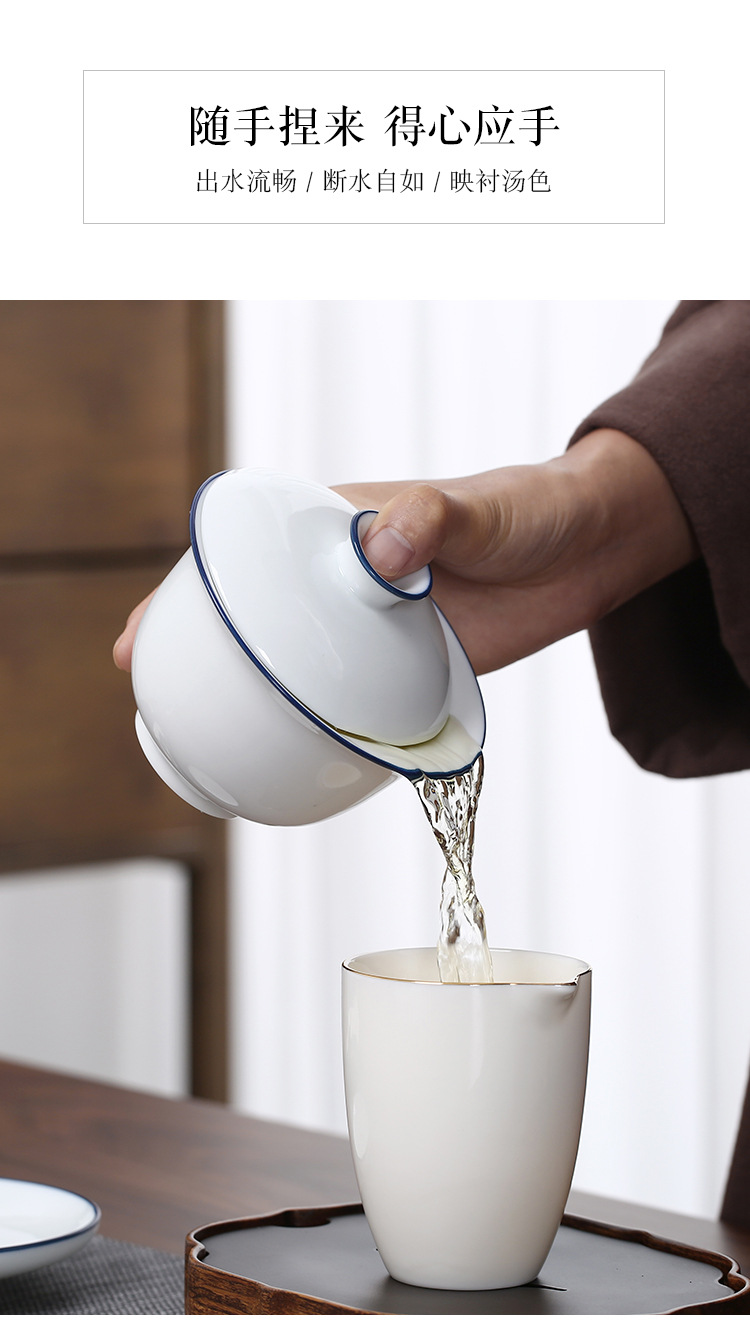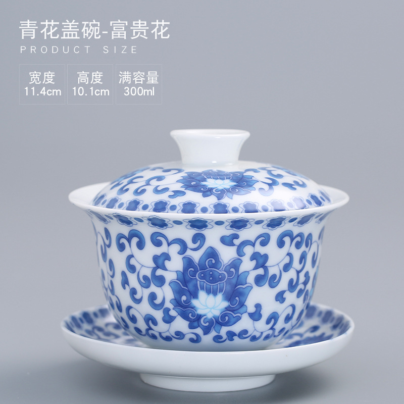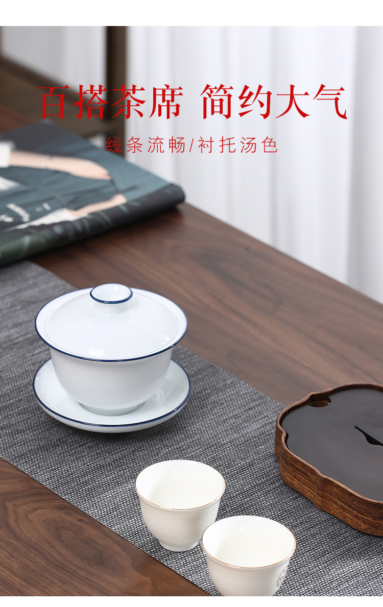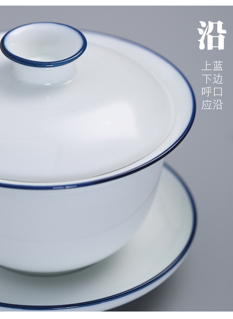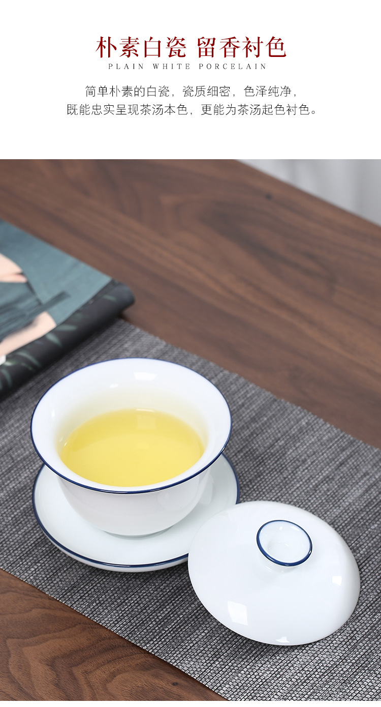 흰색 도자기 커버 그릇 손으로 그린 3 인재 컵 큰 파란색과 흰색 세라믹 순수한 흰색 차 그릇 쿵푸 차 세트 차 메이커 찻잔