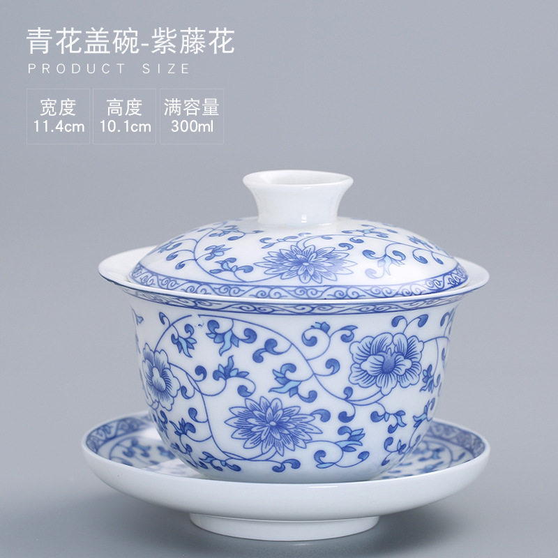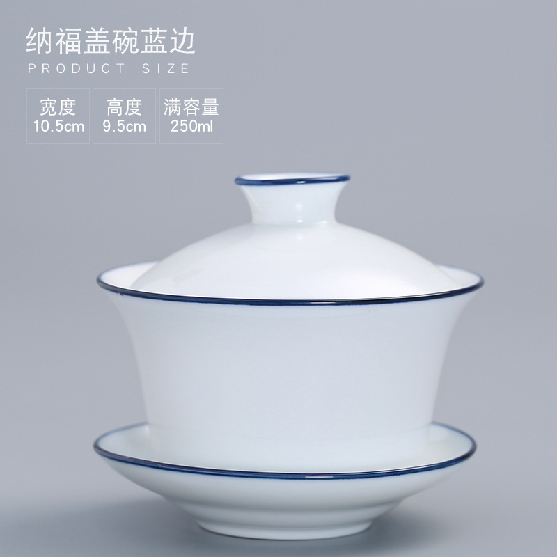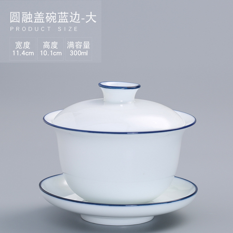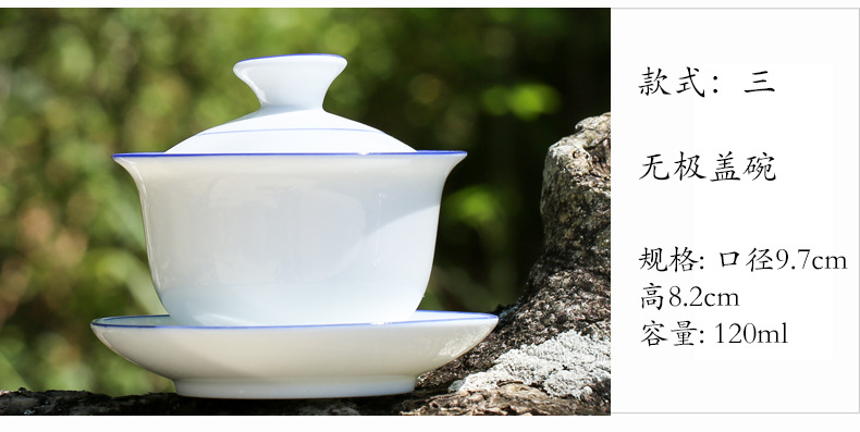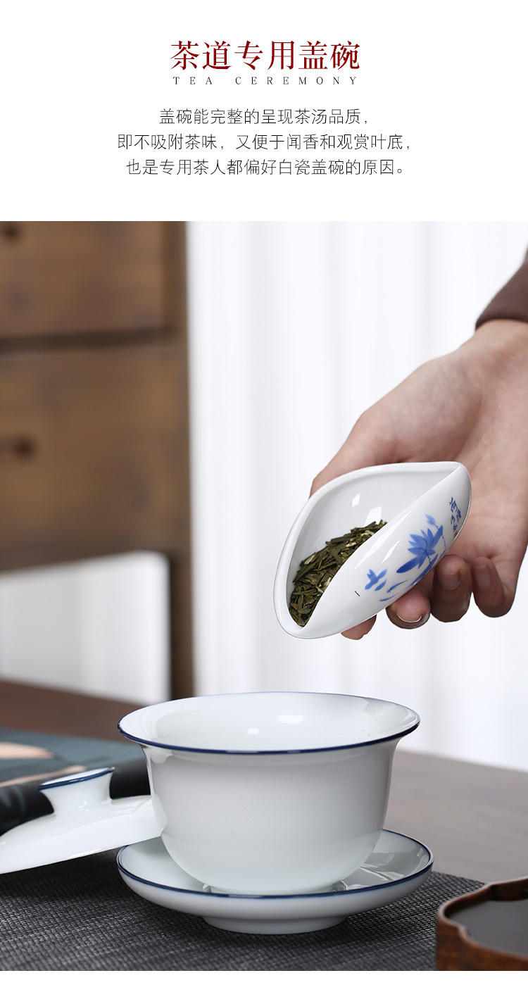 흰색 도자기 커버 그릇 손으로 그린 3 인재 컵 큰 파란색과 흰색 세라믹 순수한 흰색 차 그릇 쿵푸 차 세트 차 메이커 찻잔스토어 가기