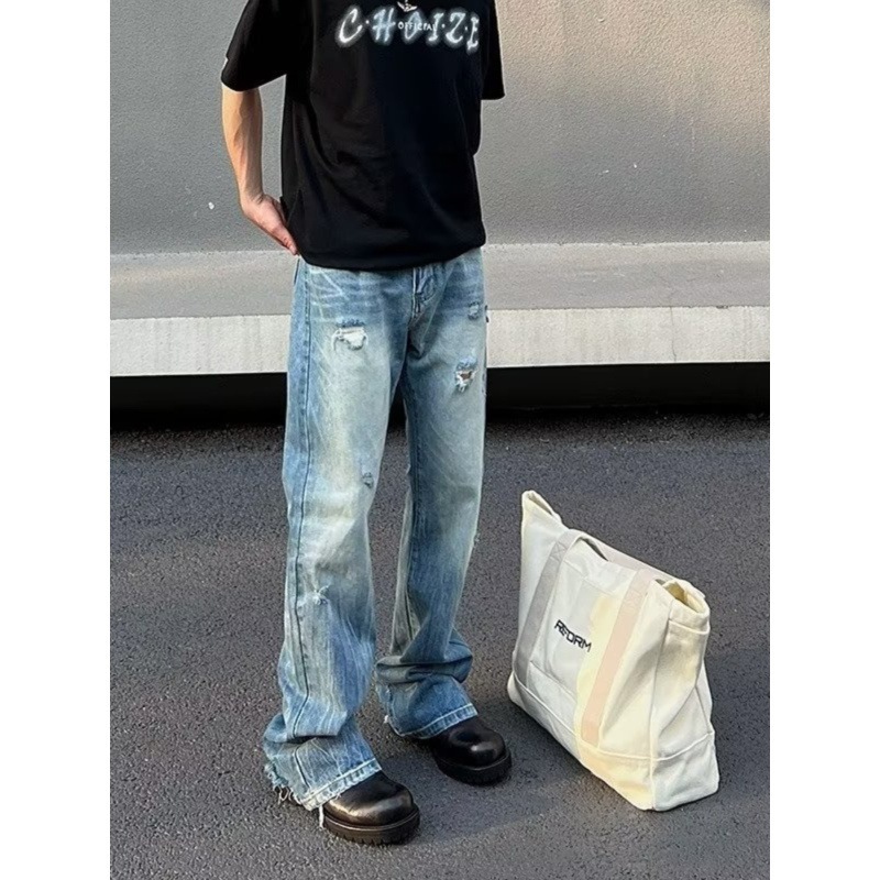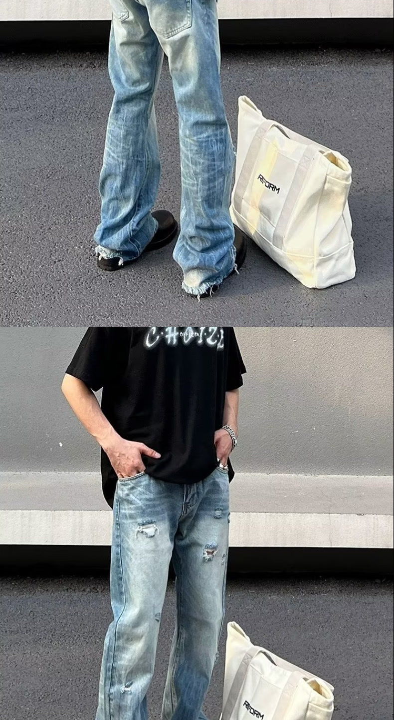 미국 패션 T 세척 찢어진 청바지 남성 봄과 가을 하이 스트리트 마이크로 스트레이트 배럴 트렌디 캐주얼 긴 바지스토어 가기