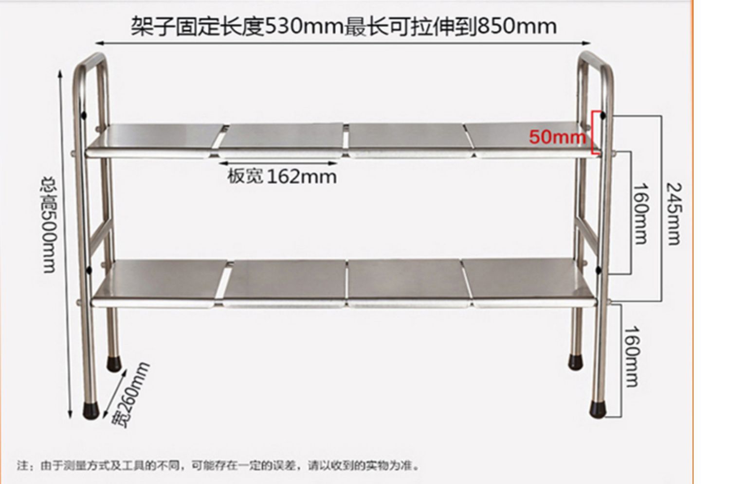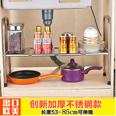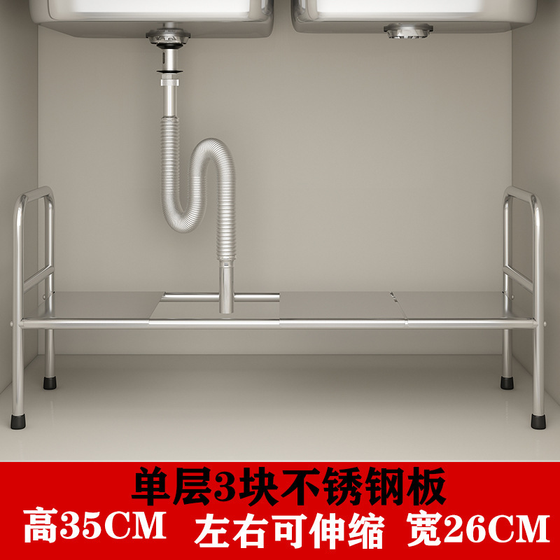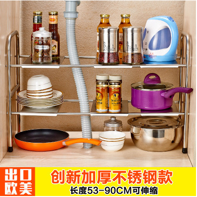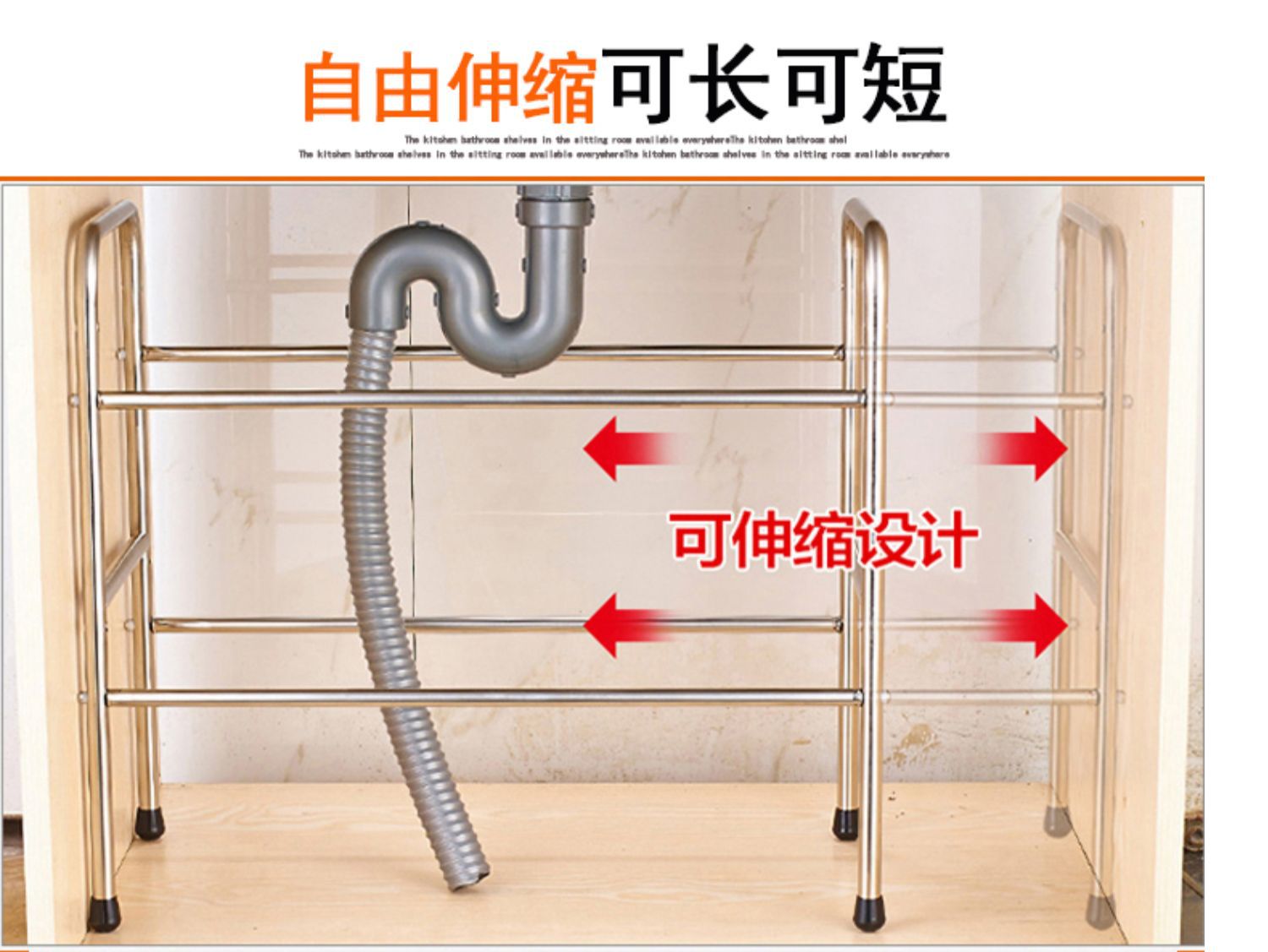 스테인레스 스틸 더블 레이어 캐비닛 싱크 주방 선반 계층화 된 보관 냄비 주방 웨어 하수도 망원경 보관 랙