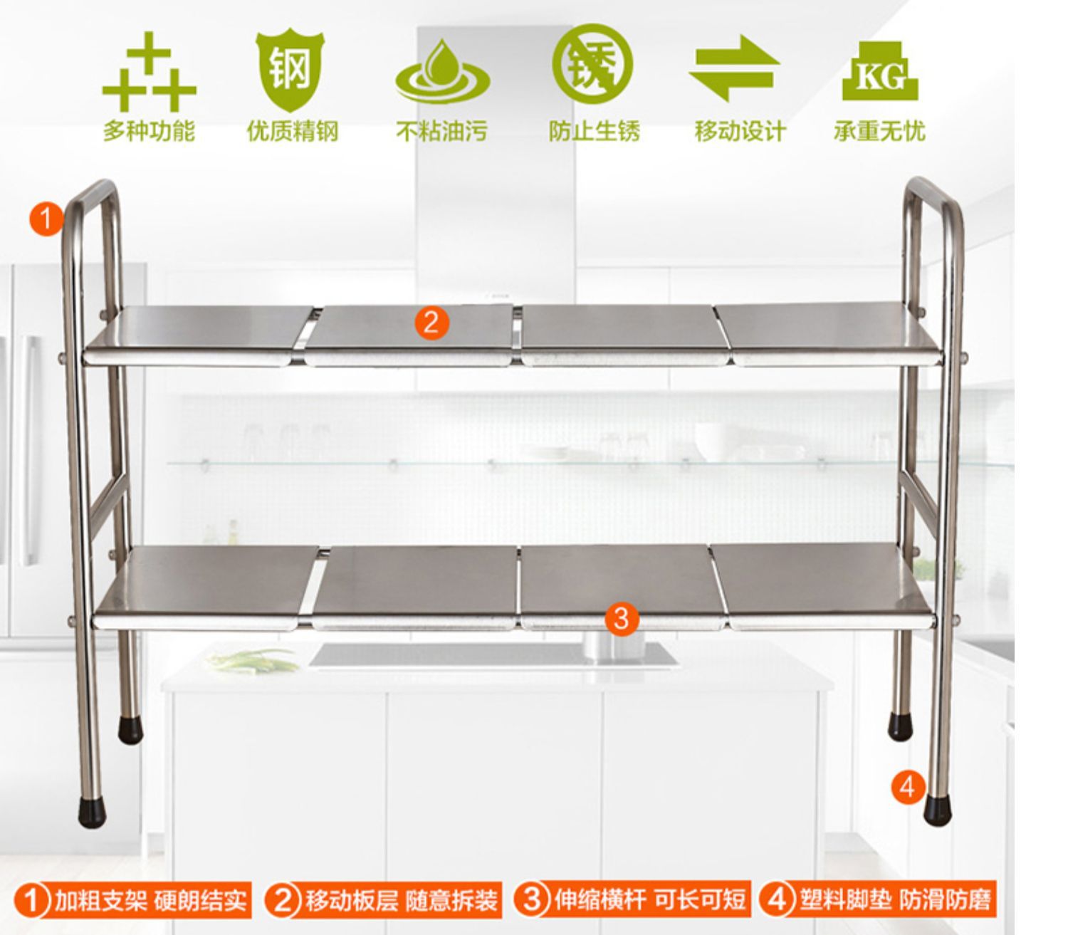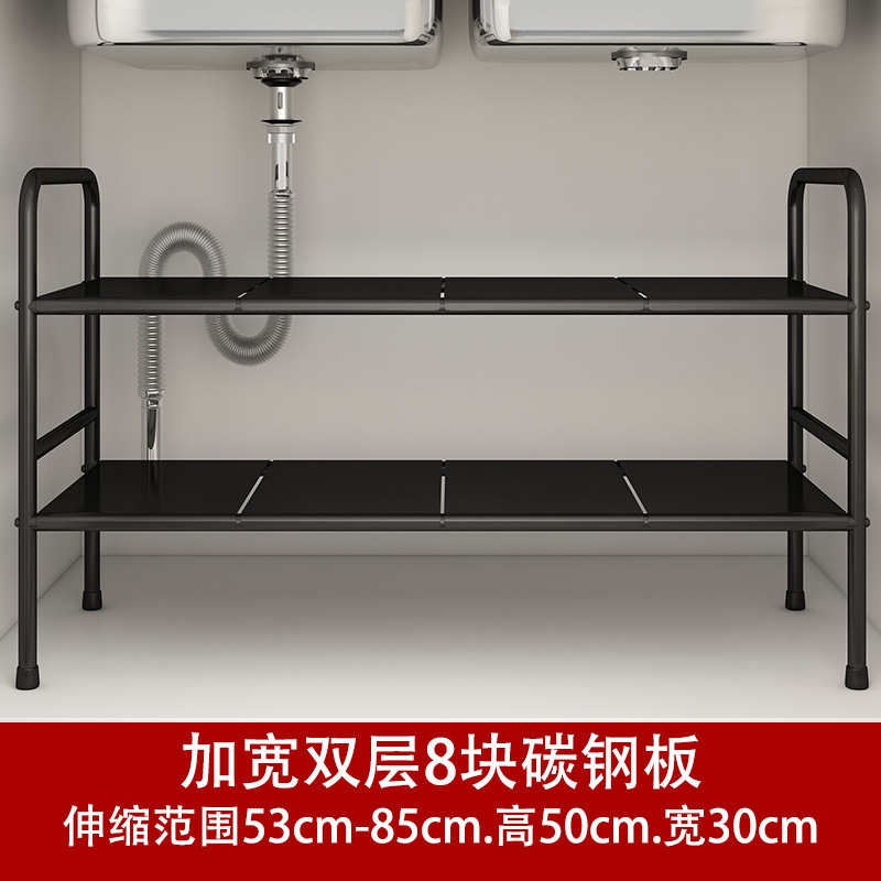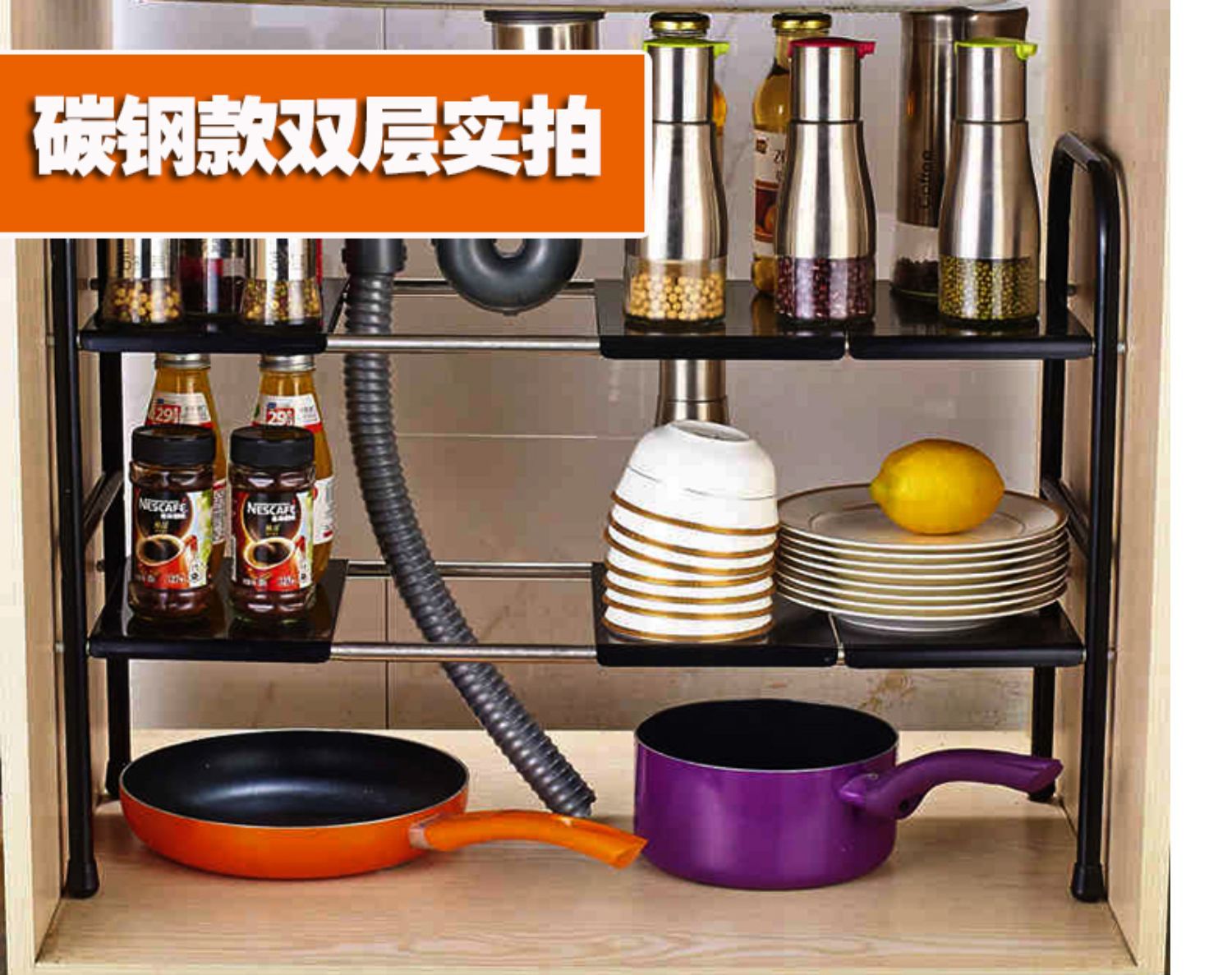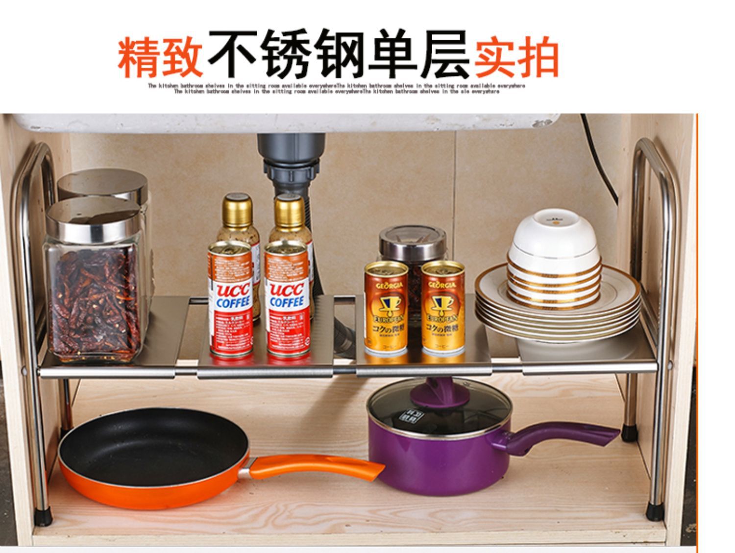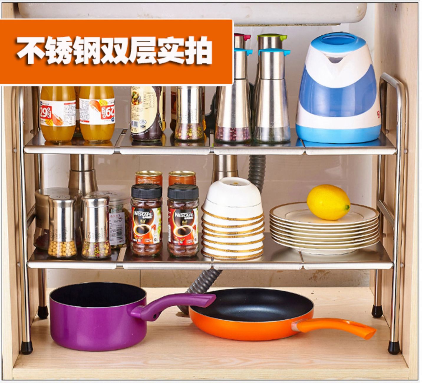 스테인레스 스틸 더블 레이어 캐비닛 싱크 주방 선반 계층화 된 보관 냄비 주방 웨어 하수도 망원경 보관 랙스토어 가기