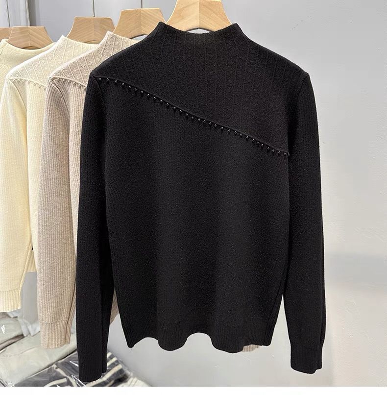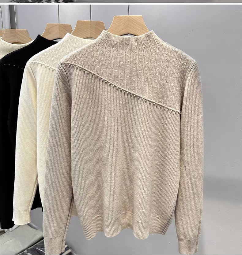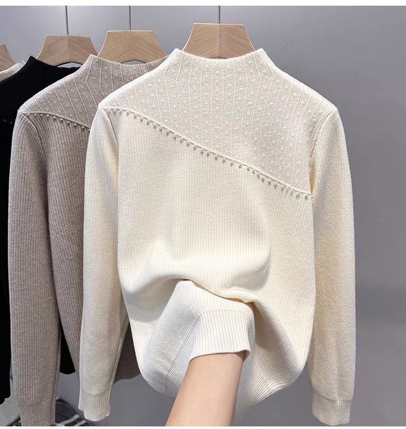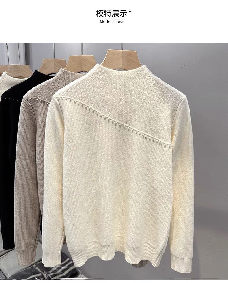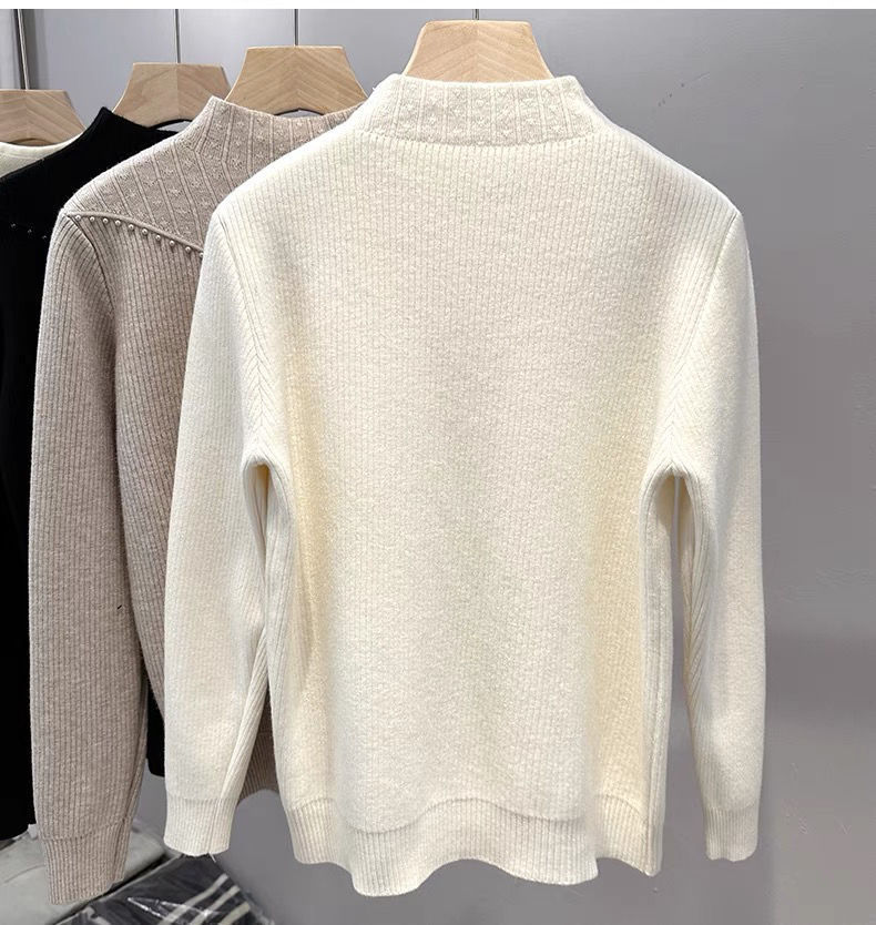 가을과 겨울 기모 두꺼운 스웨터 여성의 따뜻한 원피스 벨벳 내부 2024 새로운 반 높이 목 양모베이스 셔츠 탑