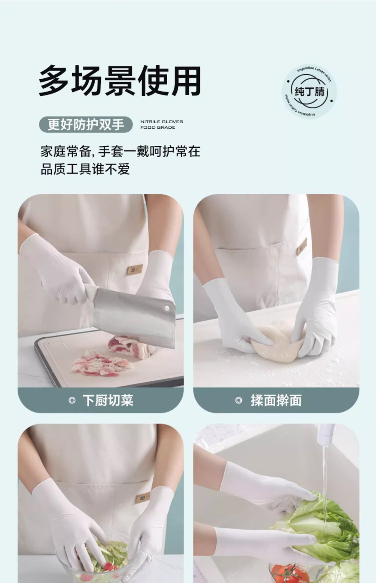 일회용 니트릴 장갑 식품 등급 내구성 여성 가정용 고무 라텍스 주방 청소 접시 세척 방수 특수